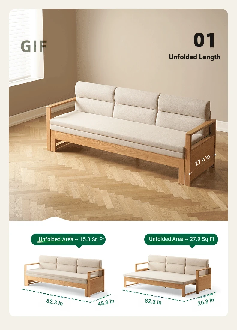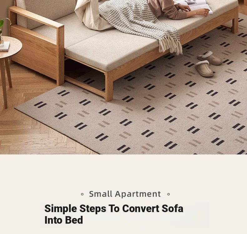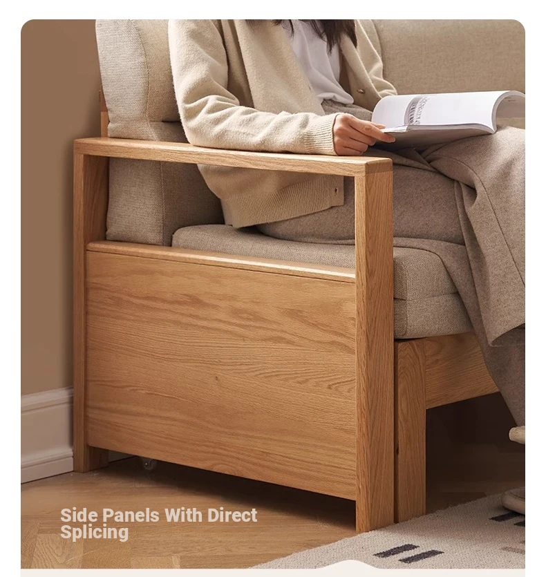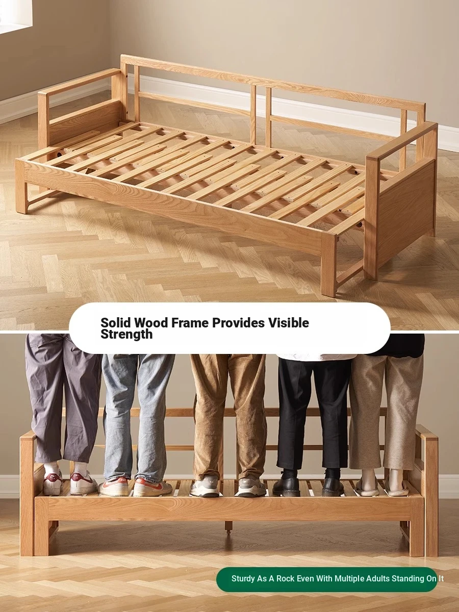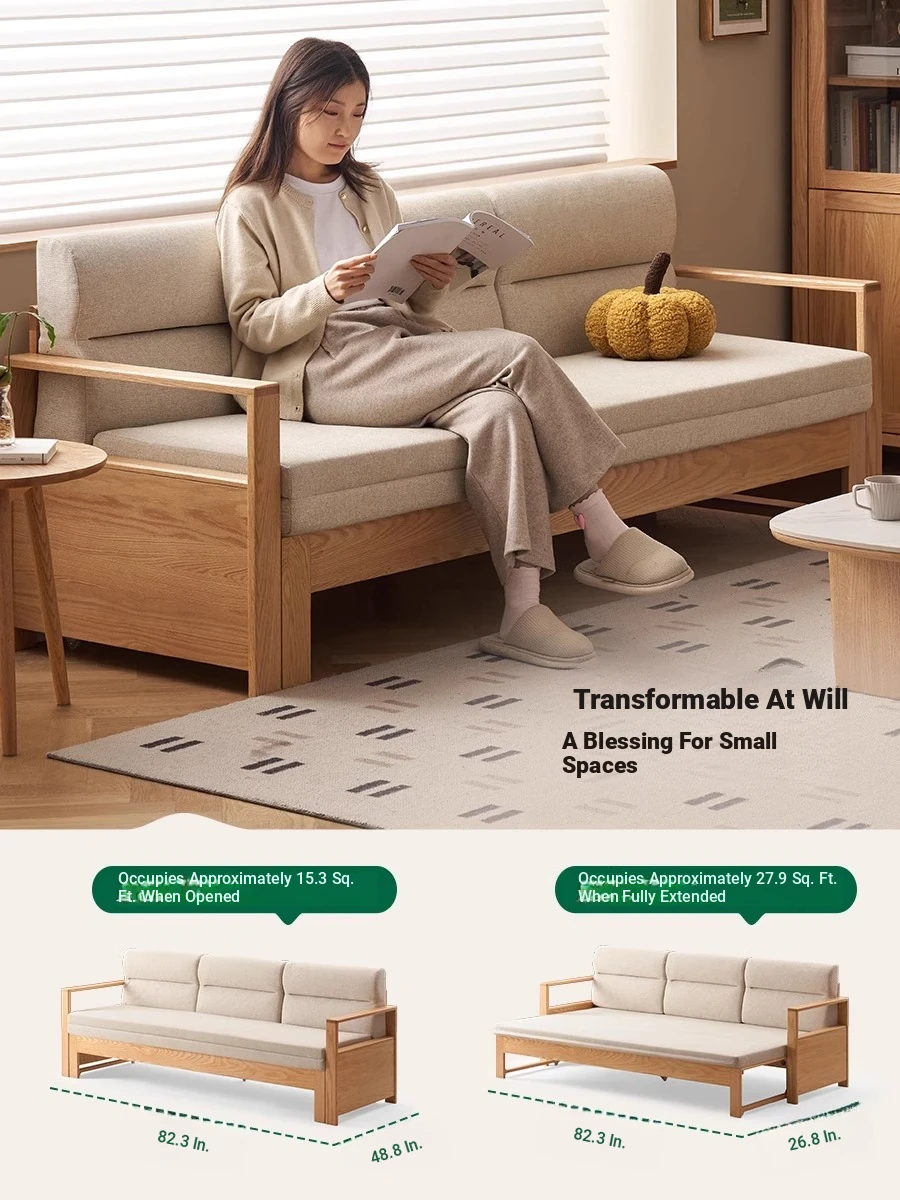 "Versatile Solid Wood Sofa Bed: Scandinavian Minimalist Design for Small Spaces - Extendable & Foldable Oak Multifunctional Furniture for your Living Room"