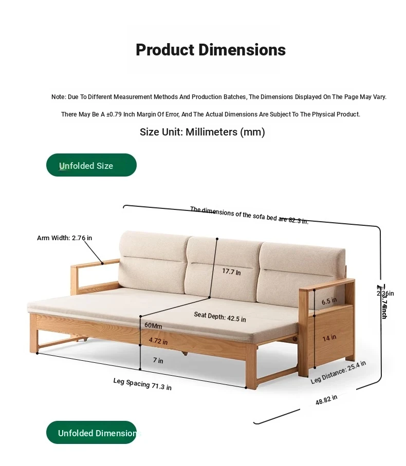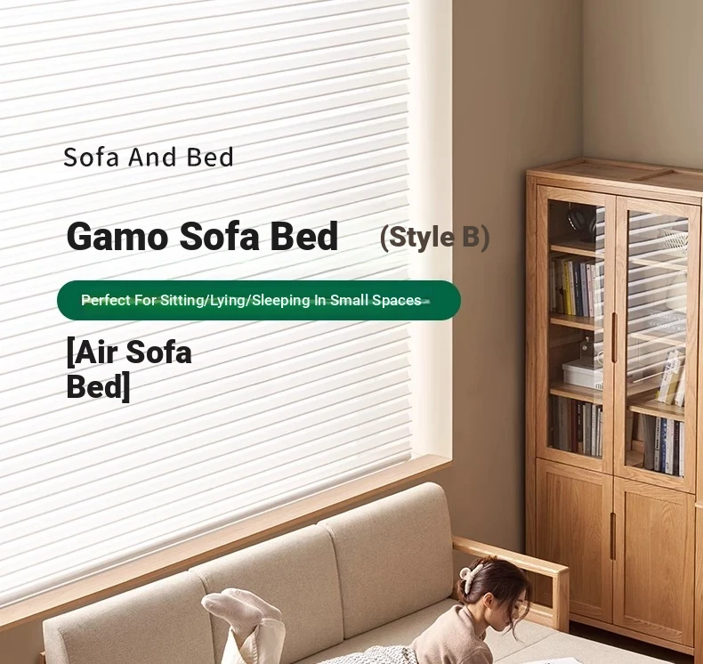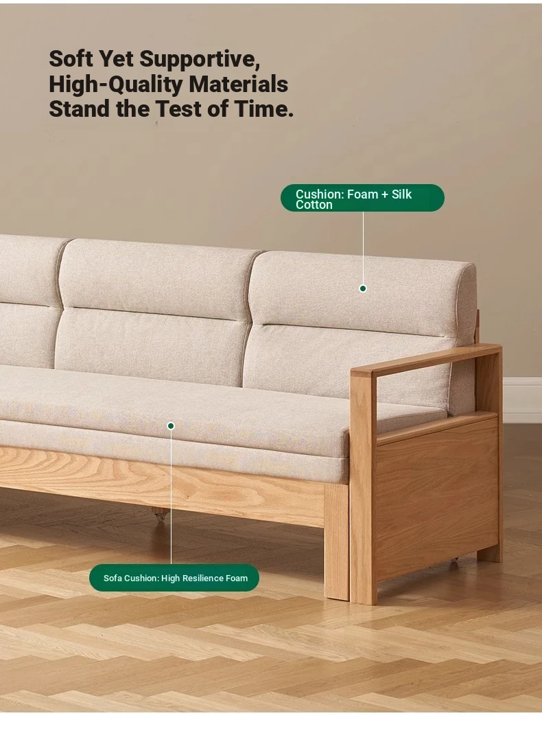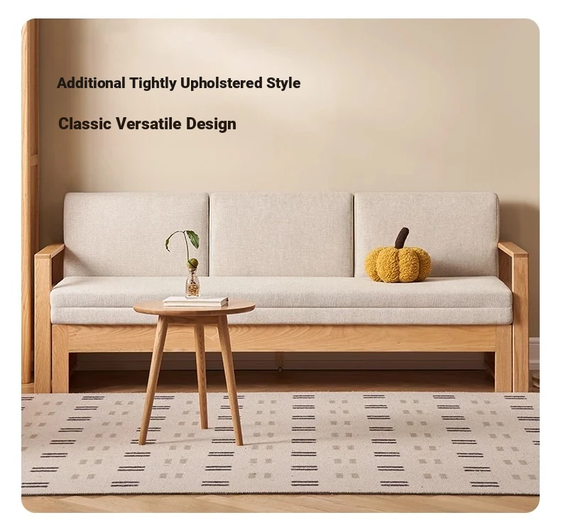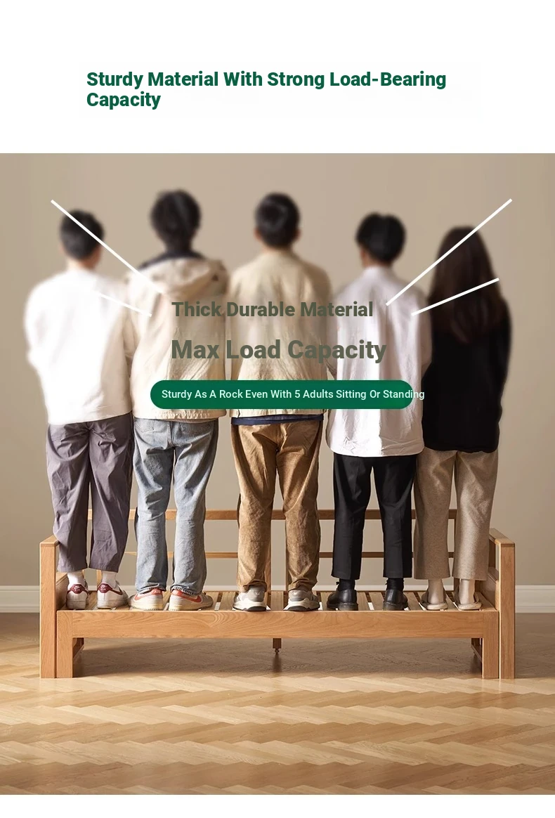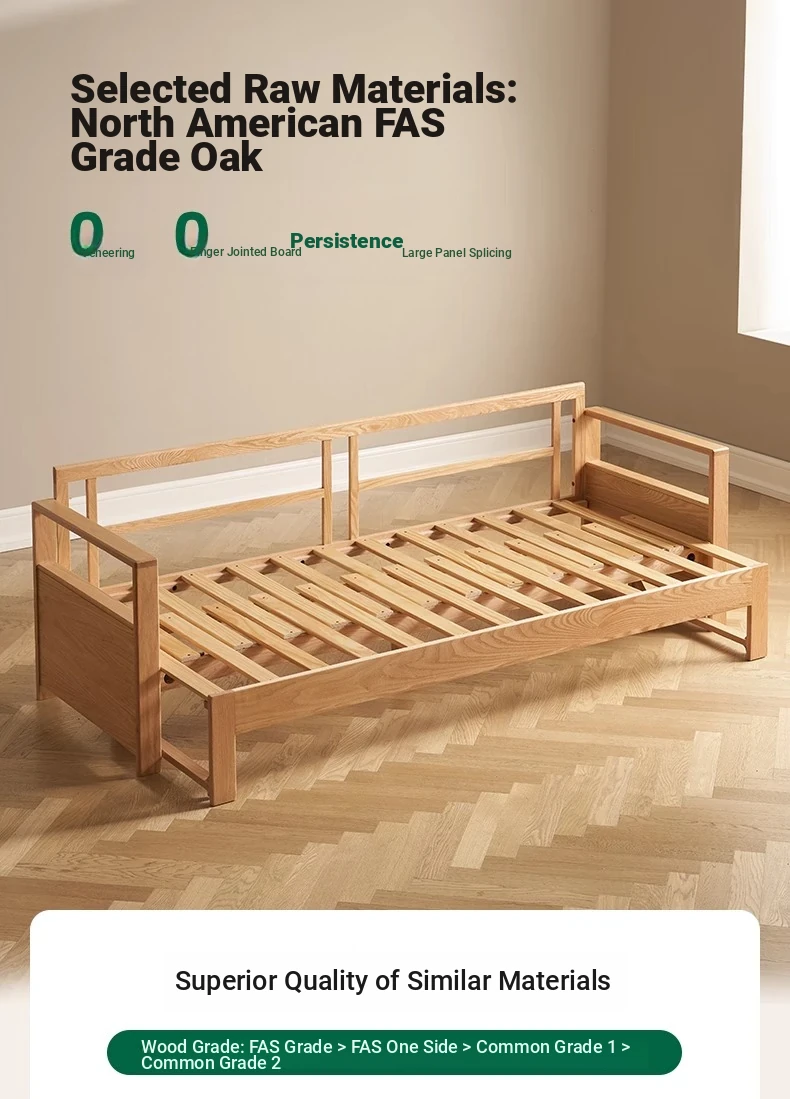 "Versatile Solid Wood Sofa Bed: Scandinavian Minimalist Design for Small Spaces - Extendable & Foldable Oak Multifunctional Furniture for your Living Room"