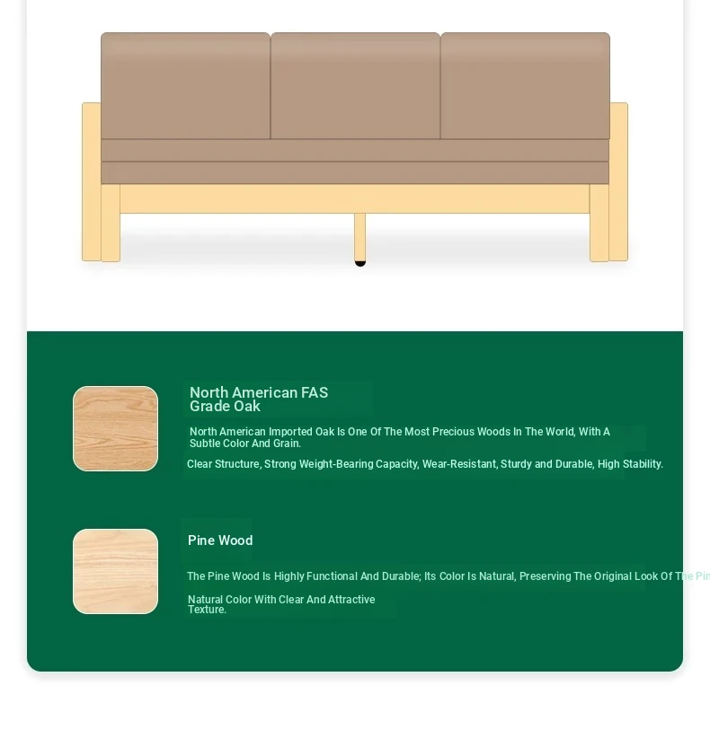 [Oak-Log Color] Jiamo Sofa Bed (Section B)-(Including Beige Pad Straight Backrest) 2090*687/1241*695