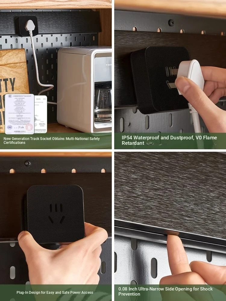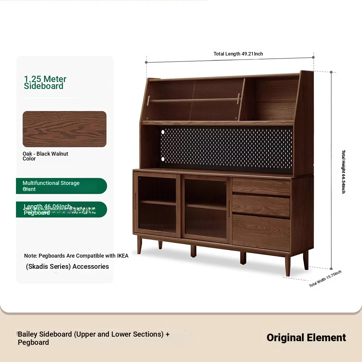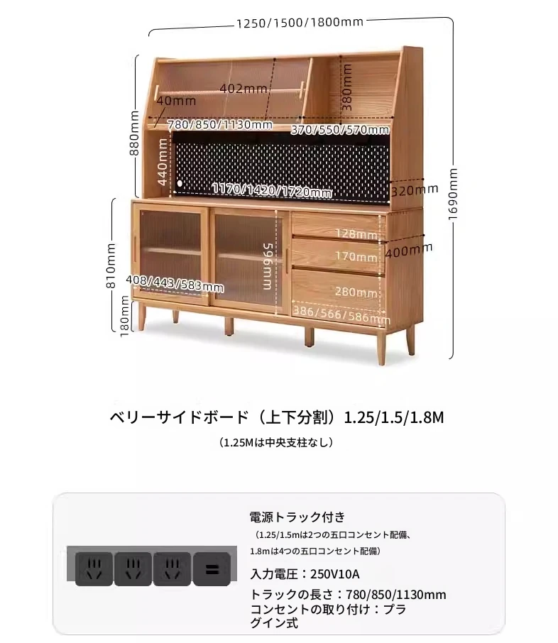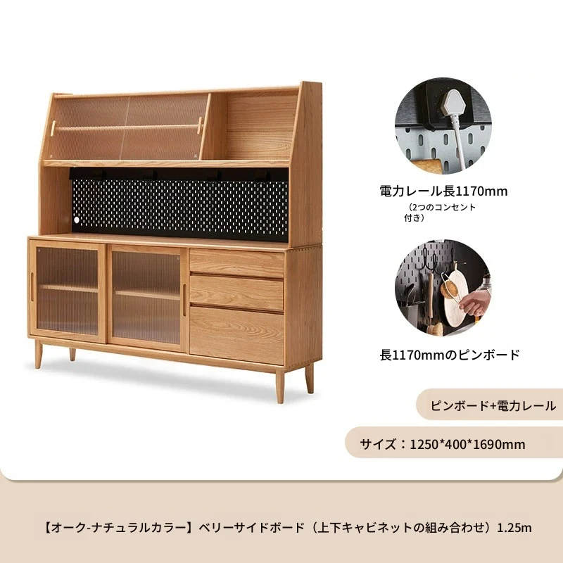 原木色-1.25mダイニングサイドボード上キャビネット付き-多機能(全ての穴あきプレート+電源レール)(1250*400*1690mm)