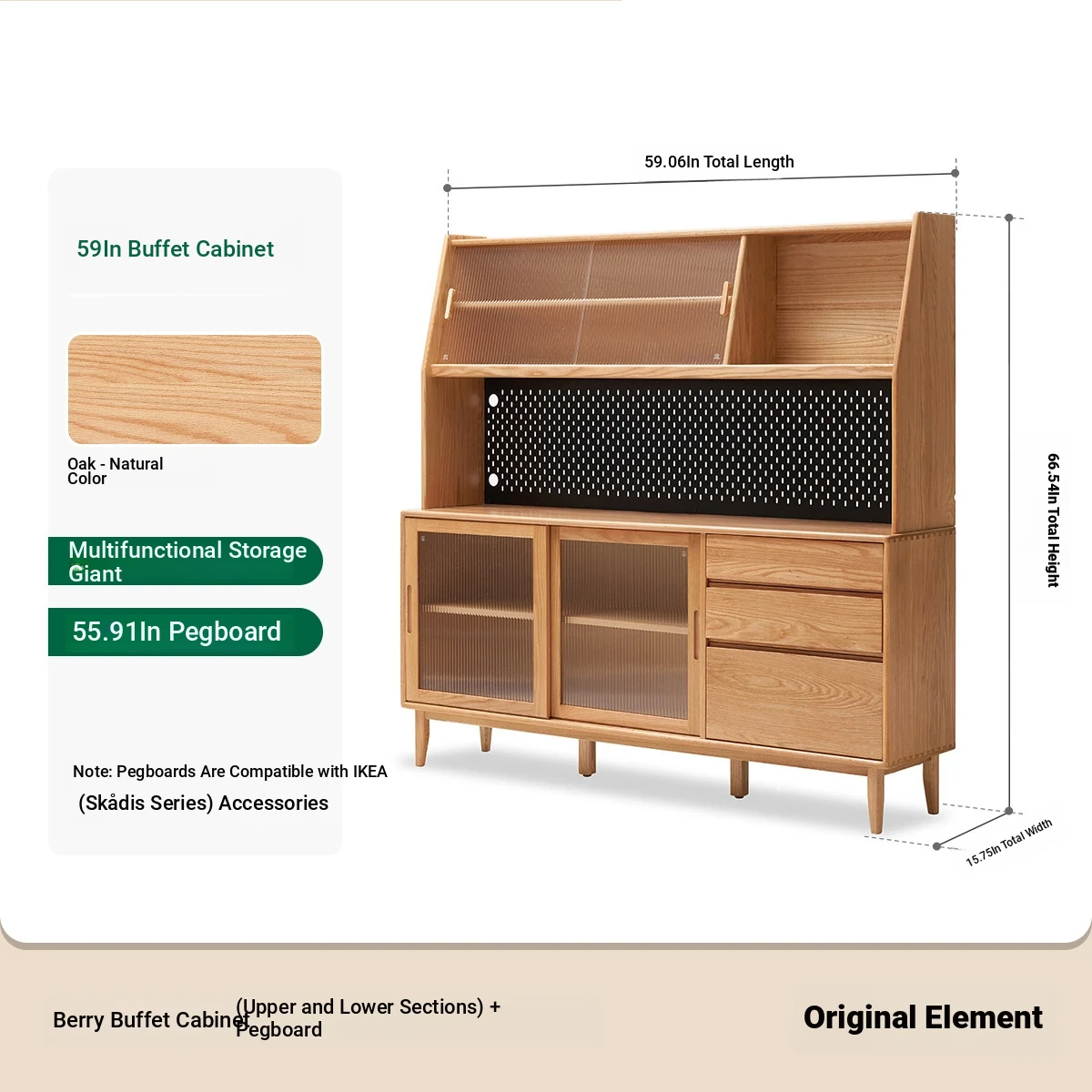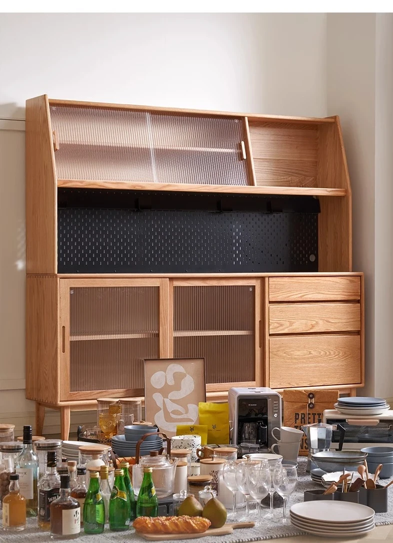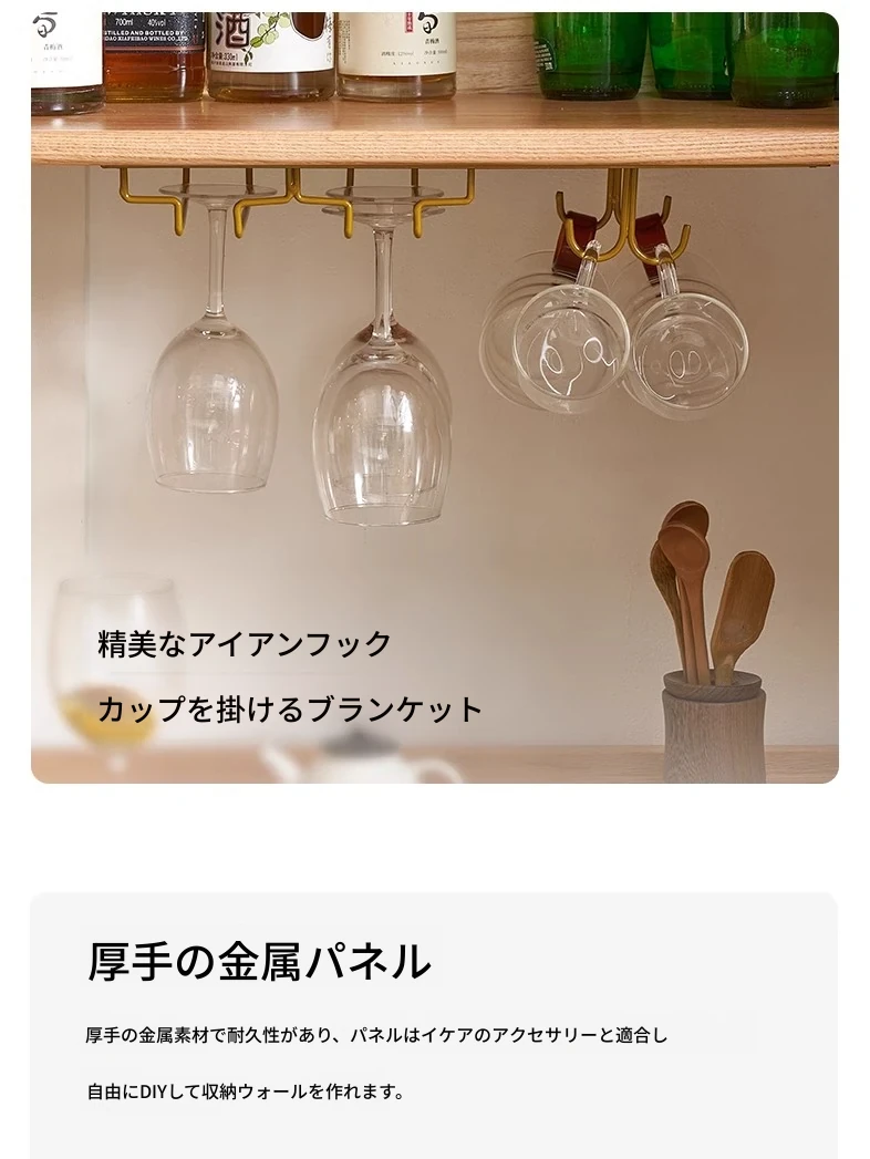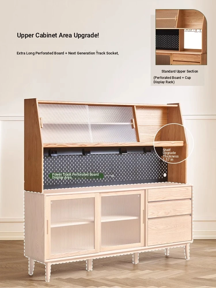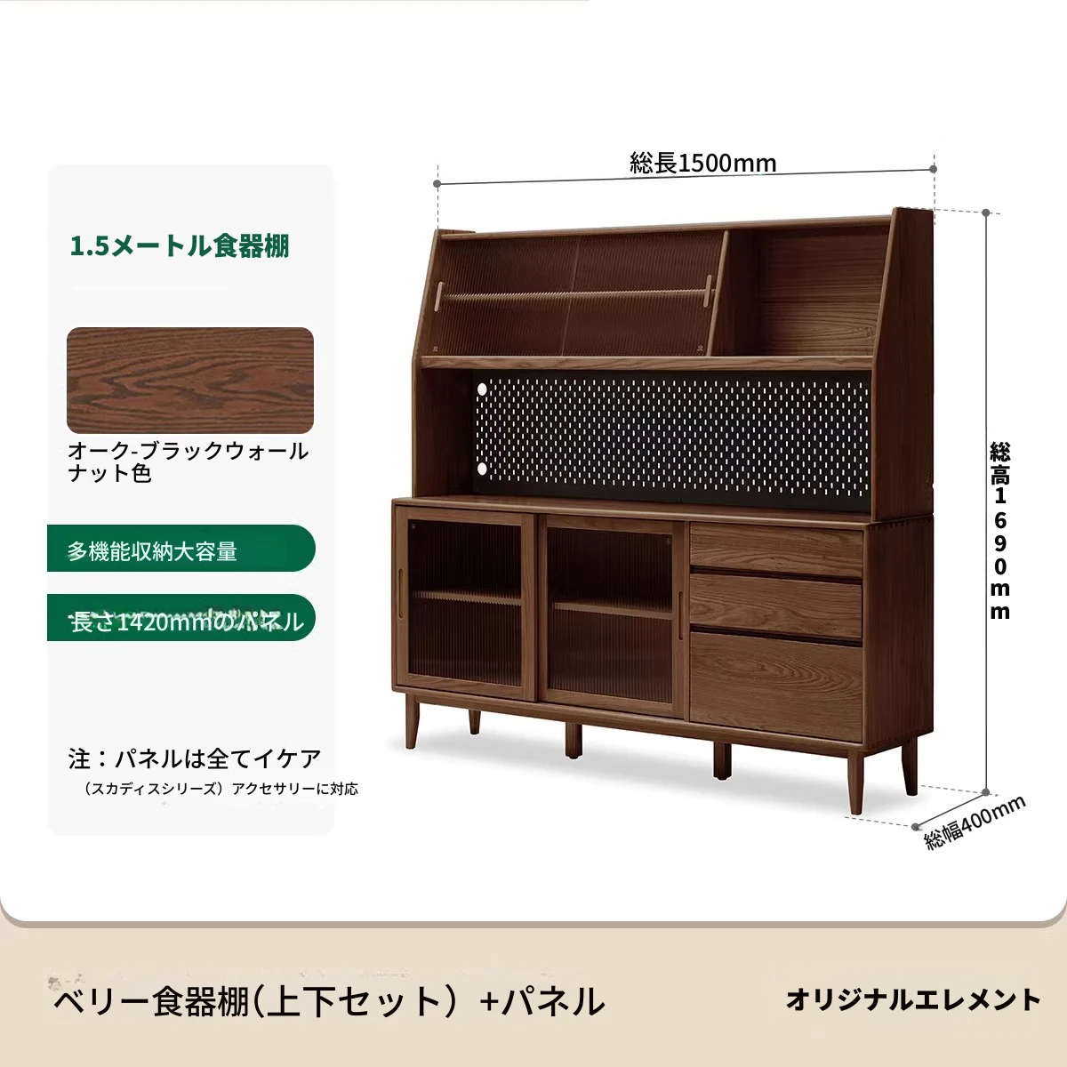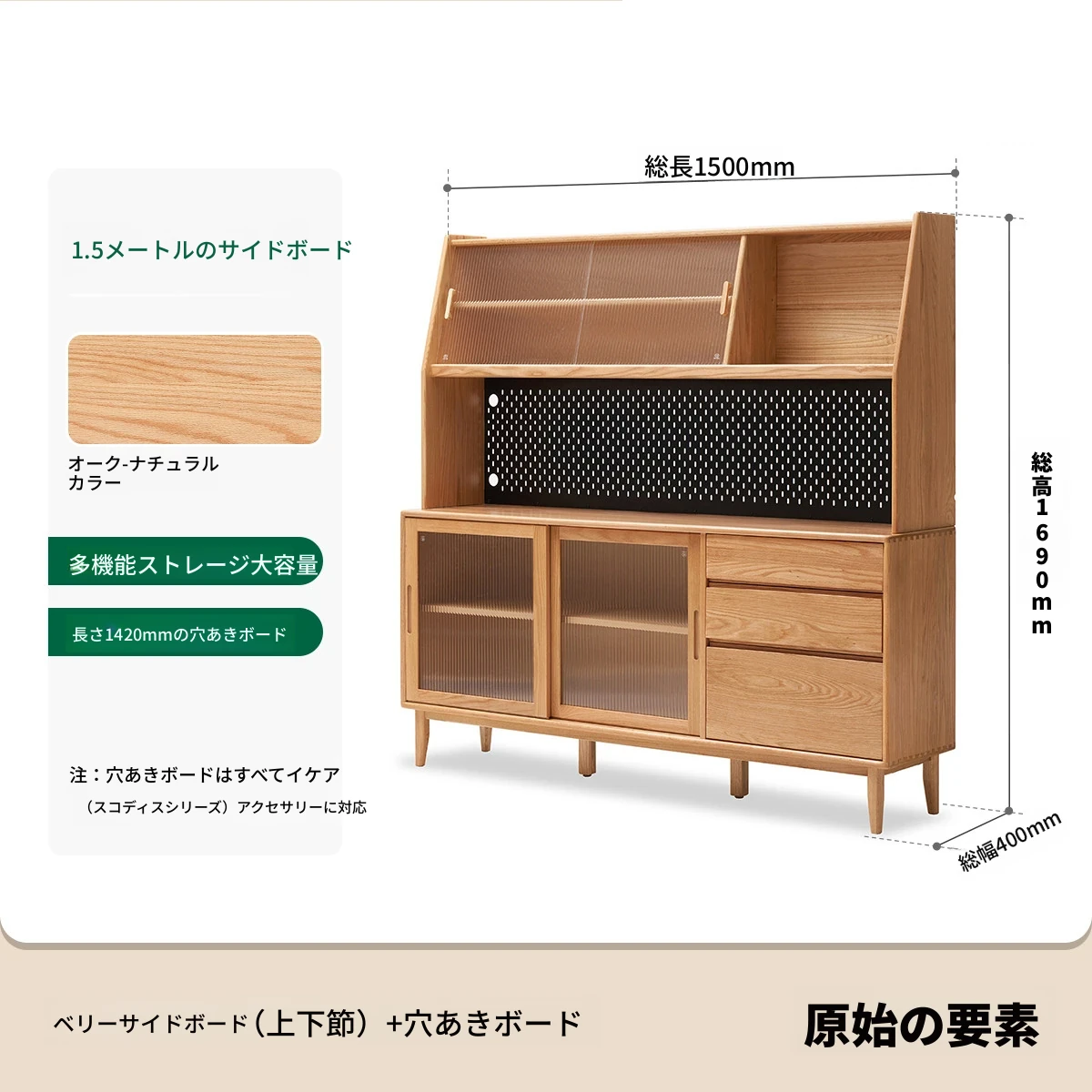 原木色-1.5mダイニングサイドボード上キャビネット付き(全ての穴あきプレート)(1500*400*1690mm)