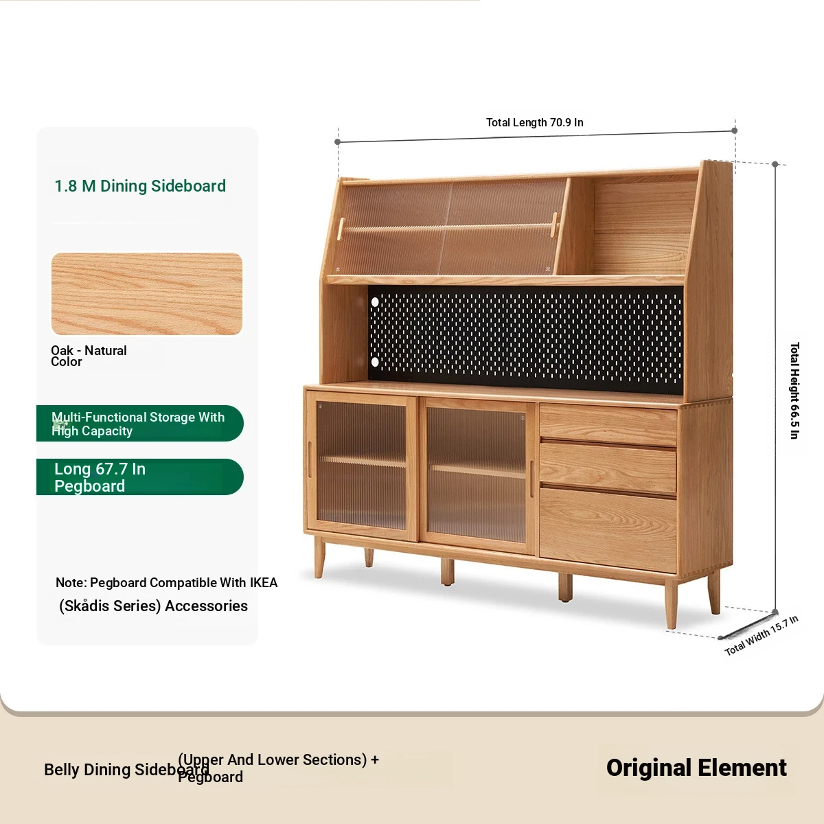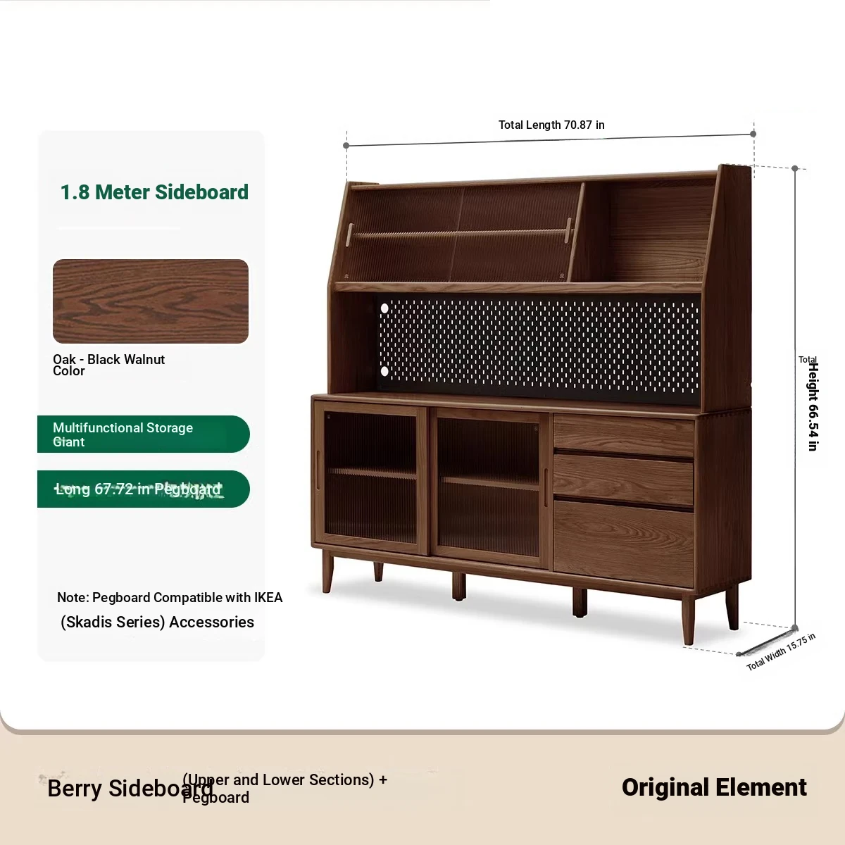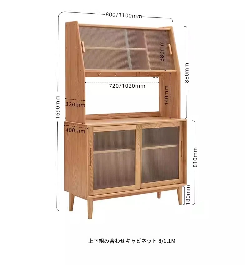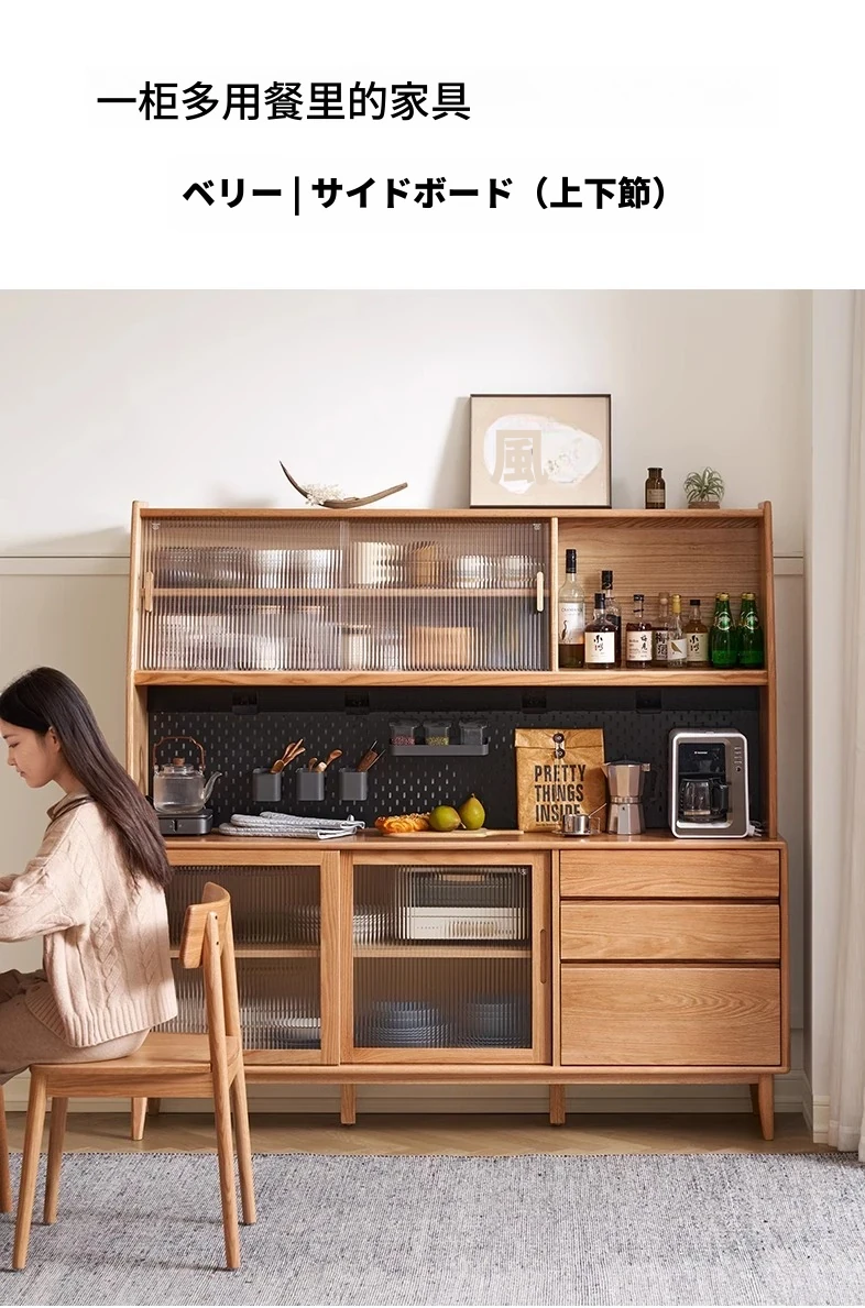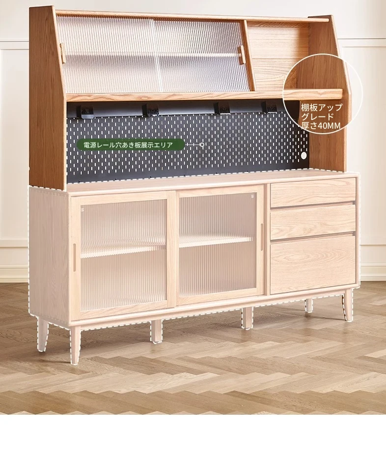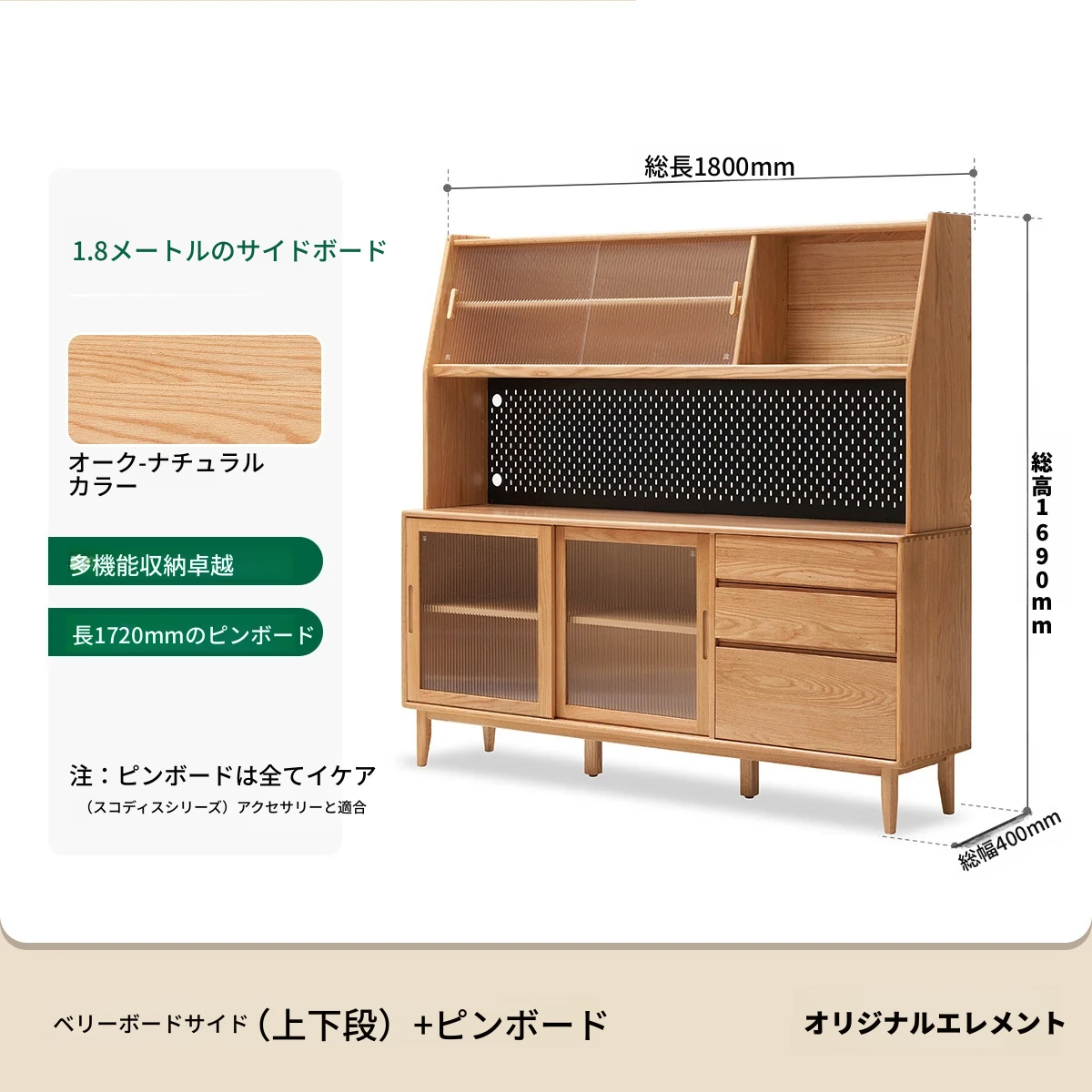 原木色-1.8mダイニングサイドボード上キャビネット付き(全ての穴あきプレート)(1800*400*1690mm)