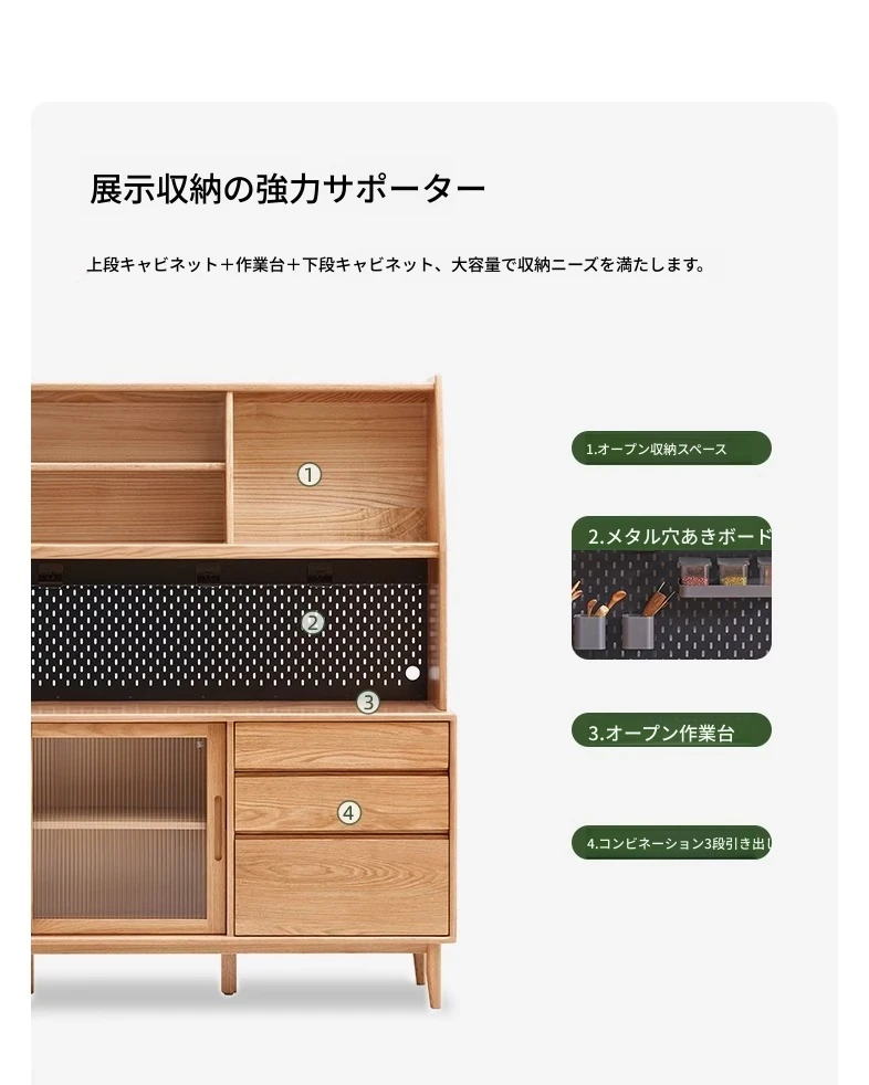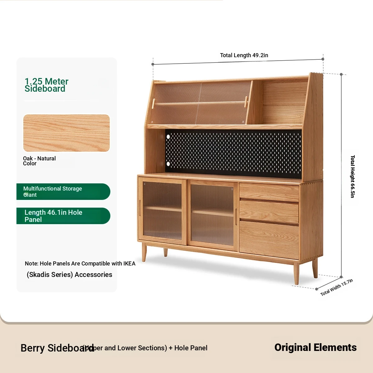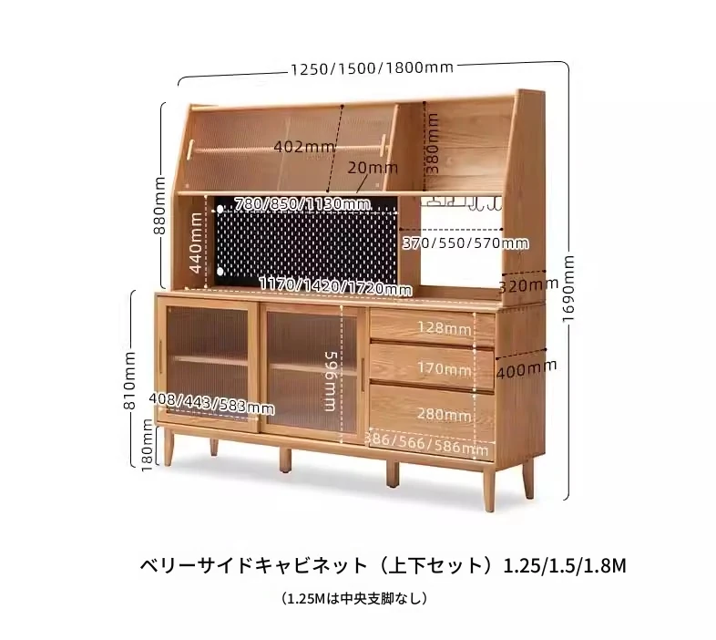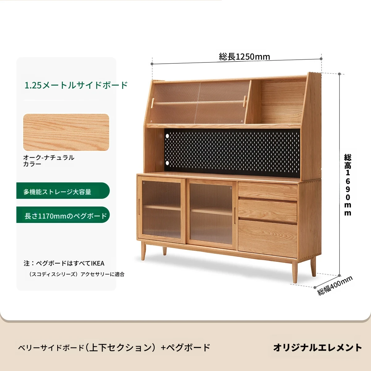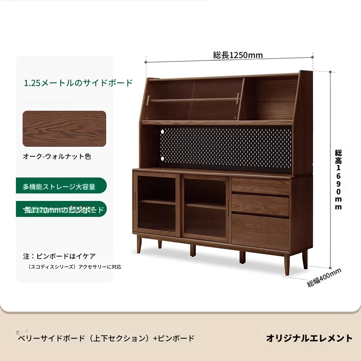 原木色-1.25mダイニングサイドボード上キャビネット付き(全ての穴あきプレート)(1250*400*1690mm)