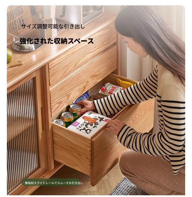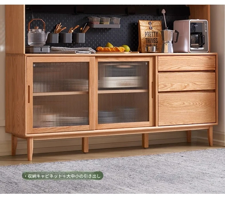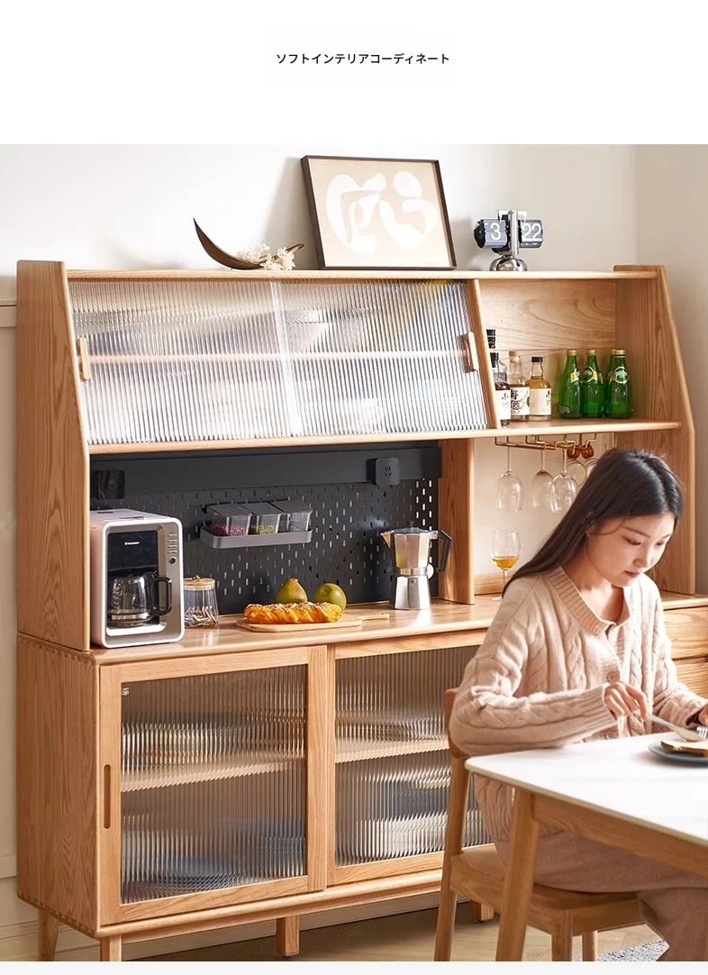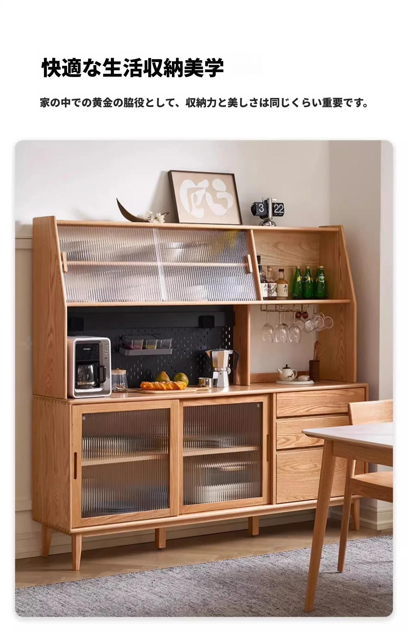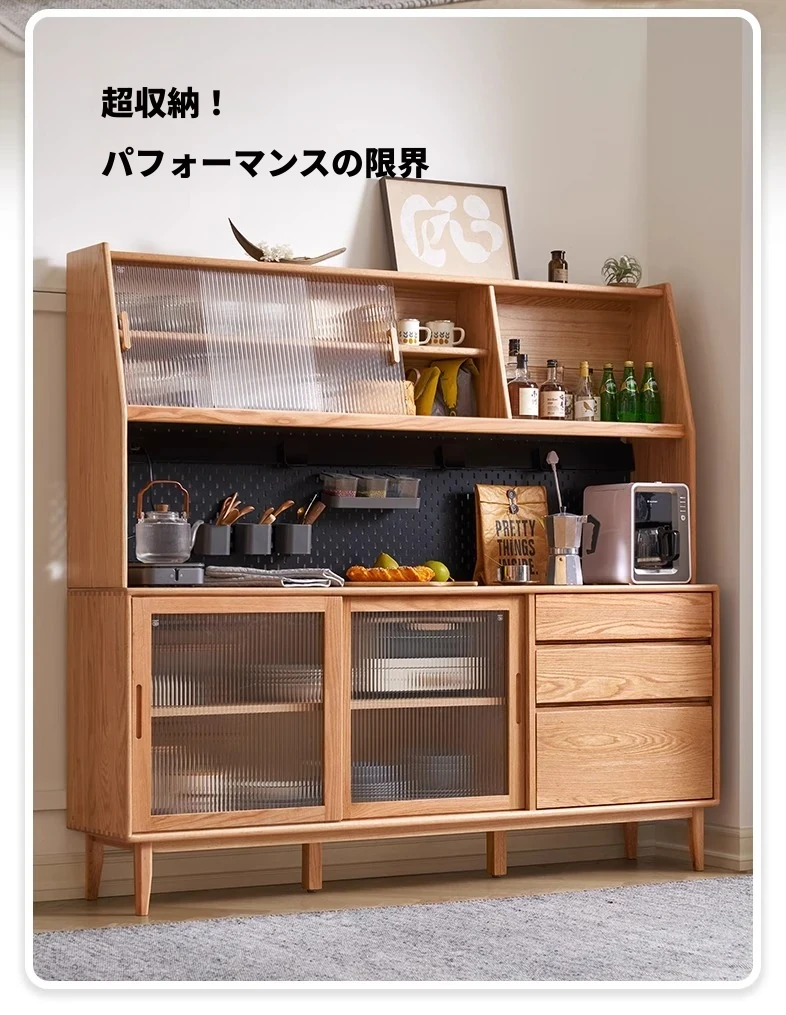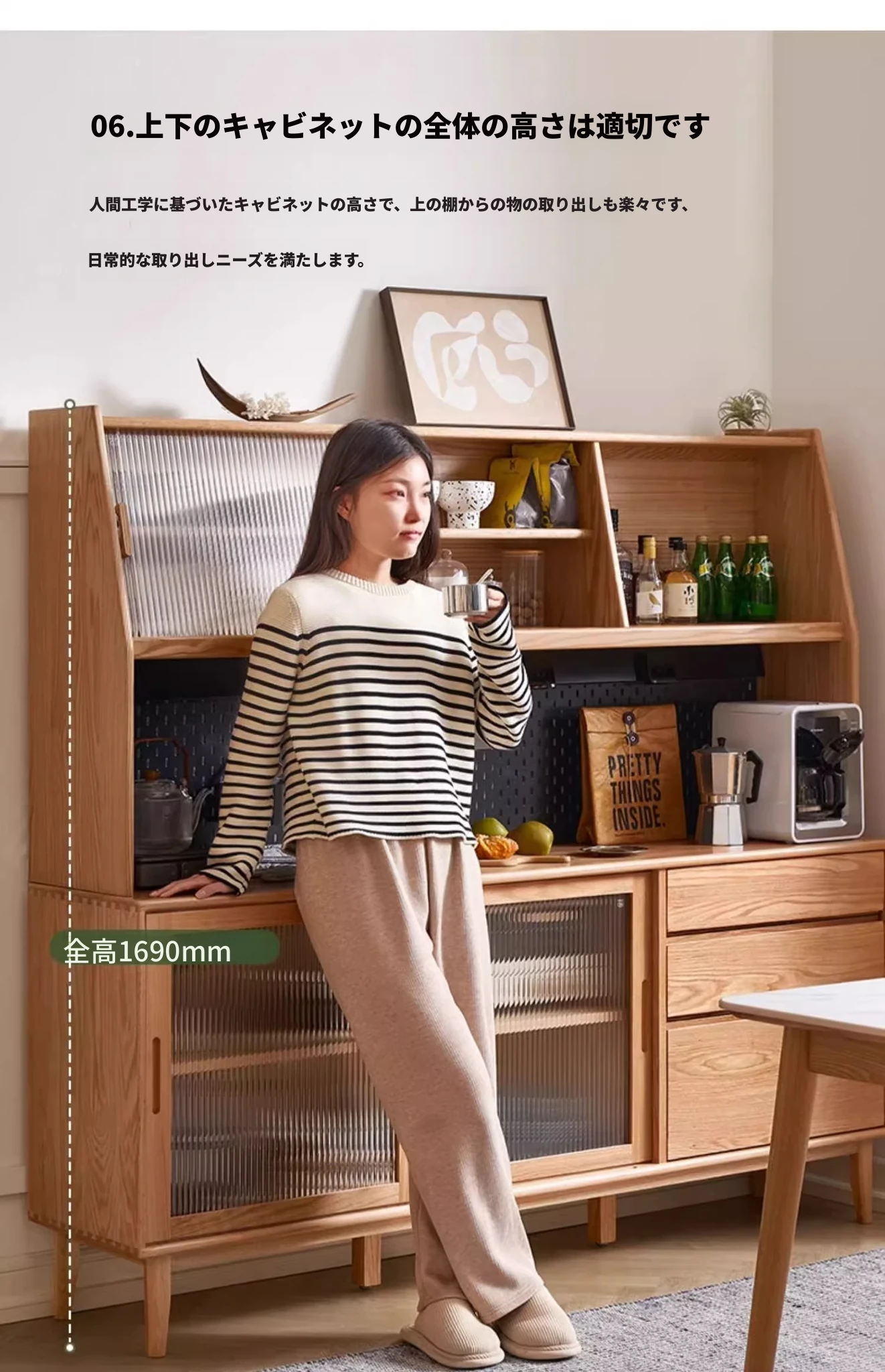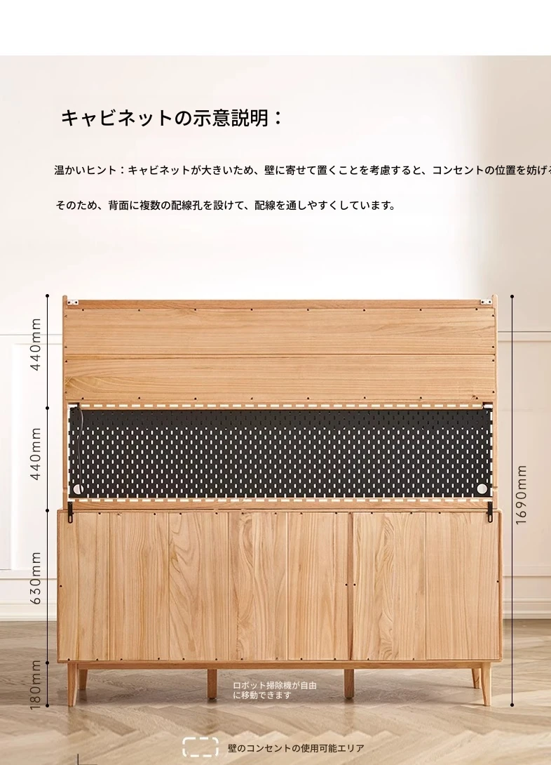 オリジナル無垢材サイドボード – 北欧スタイルのシンプルモダンなダイニング家具!収納力抜群のウォールマウントティーキャビネットで、食卓を美しく演出!