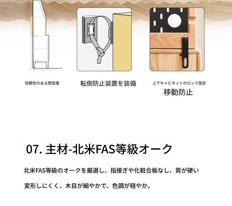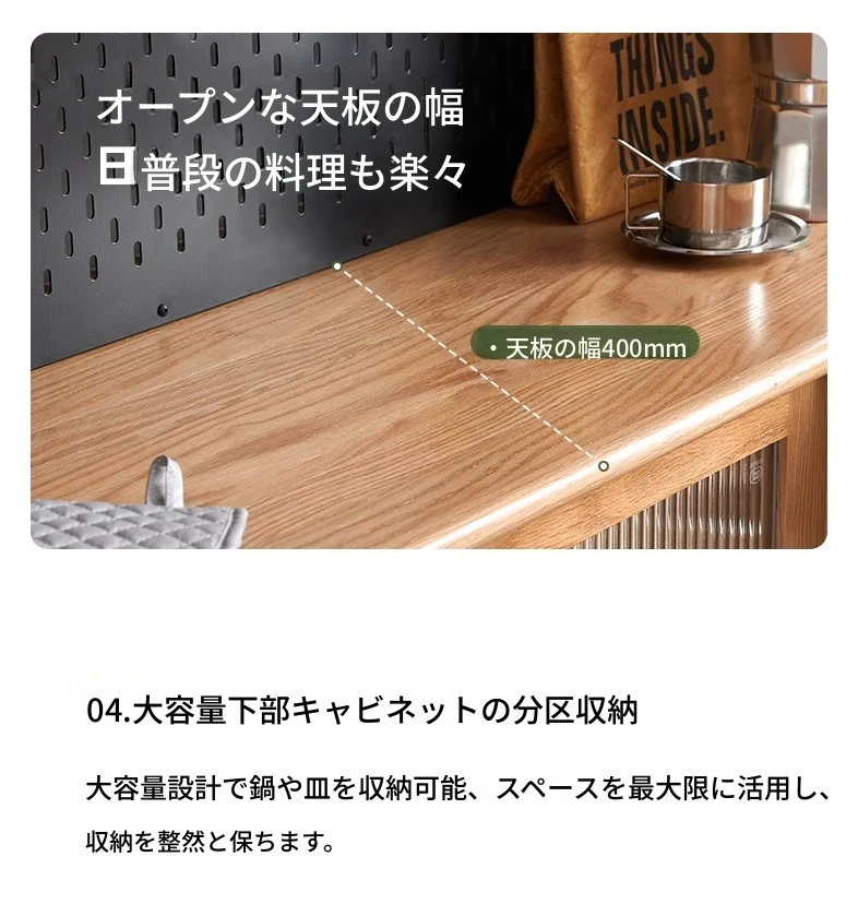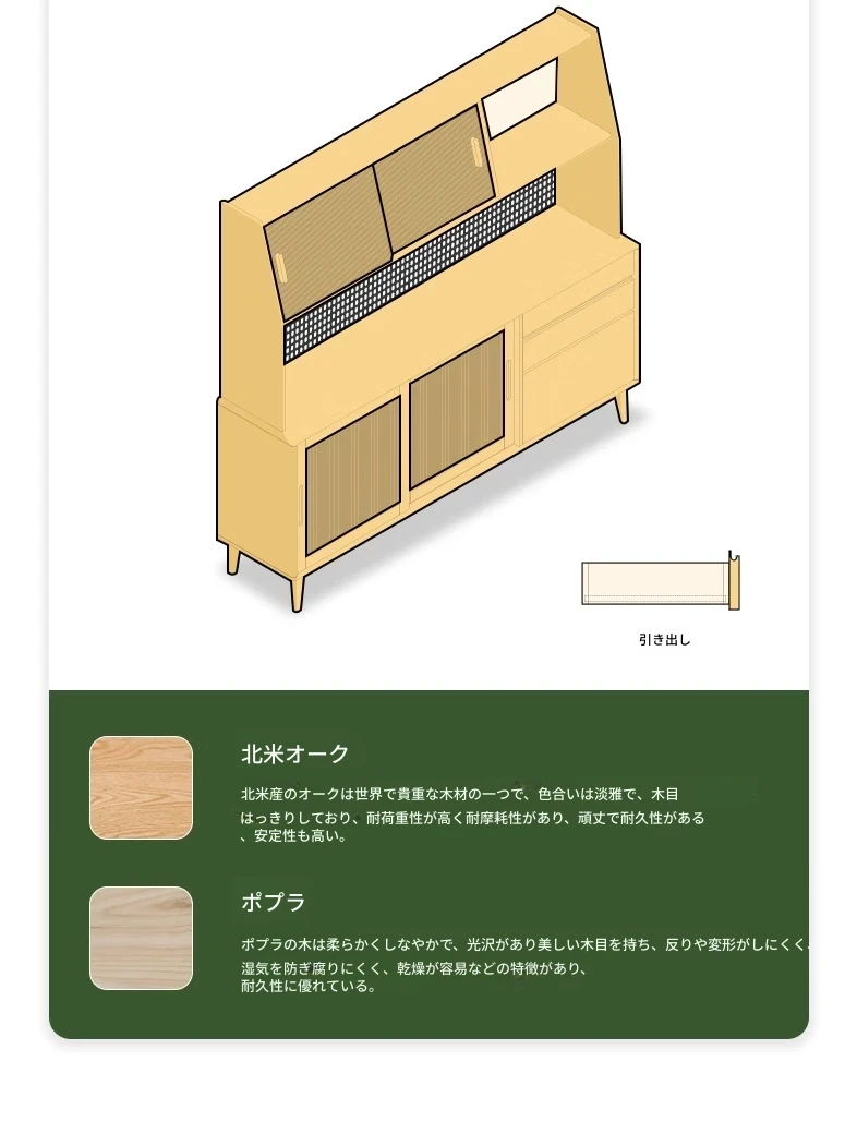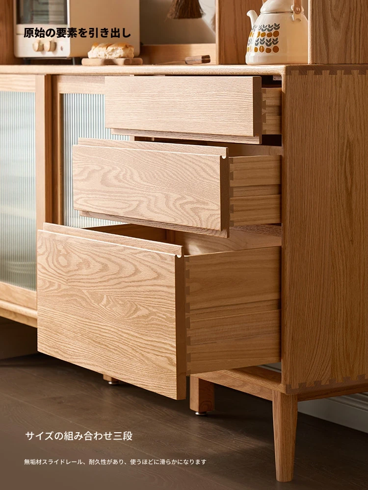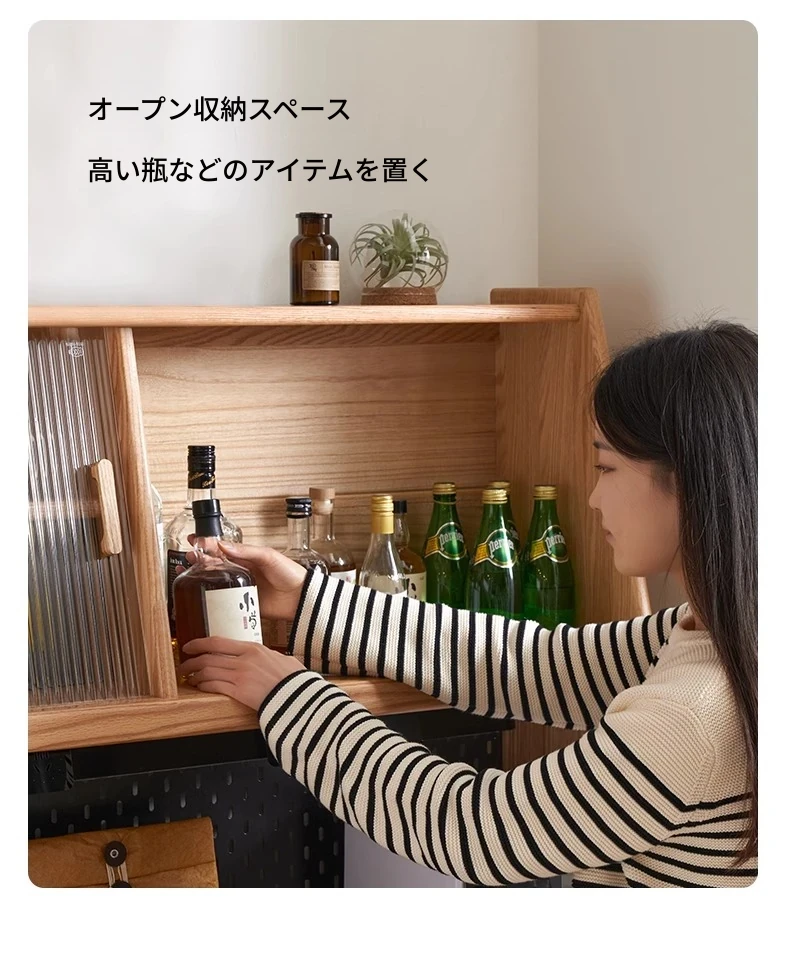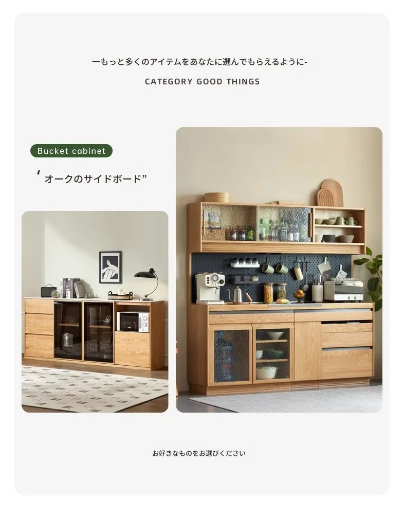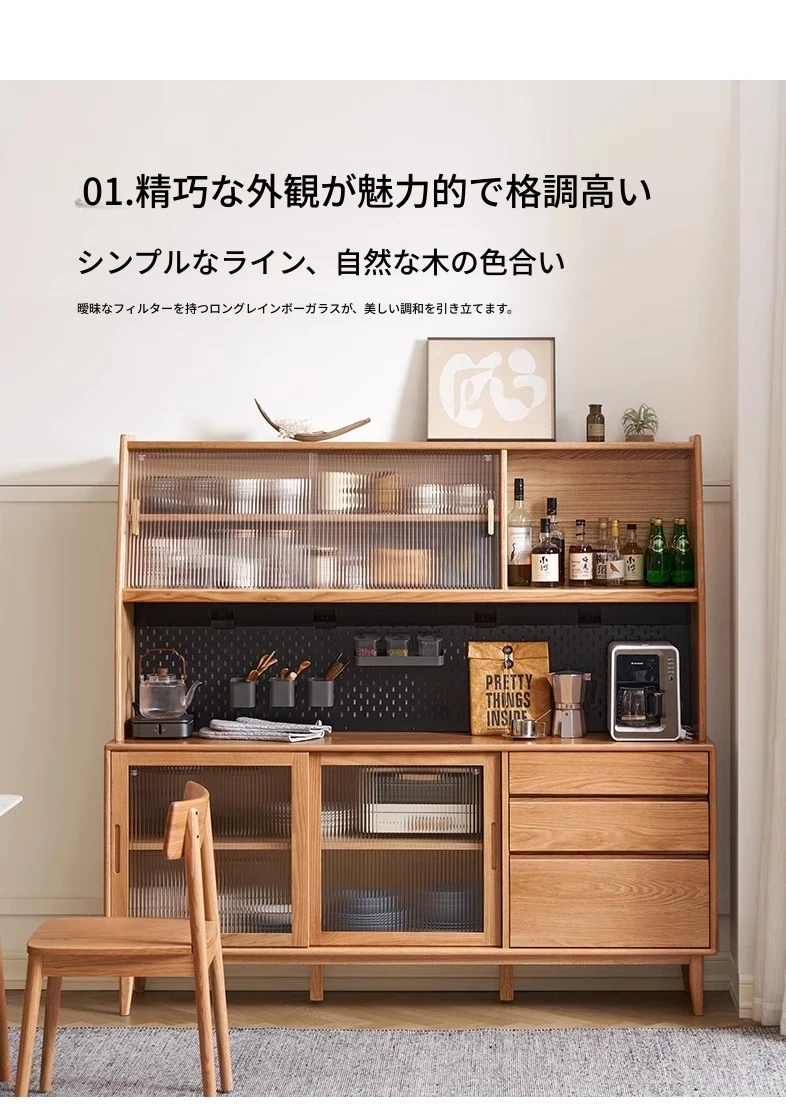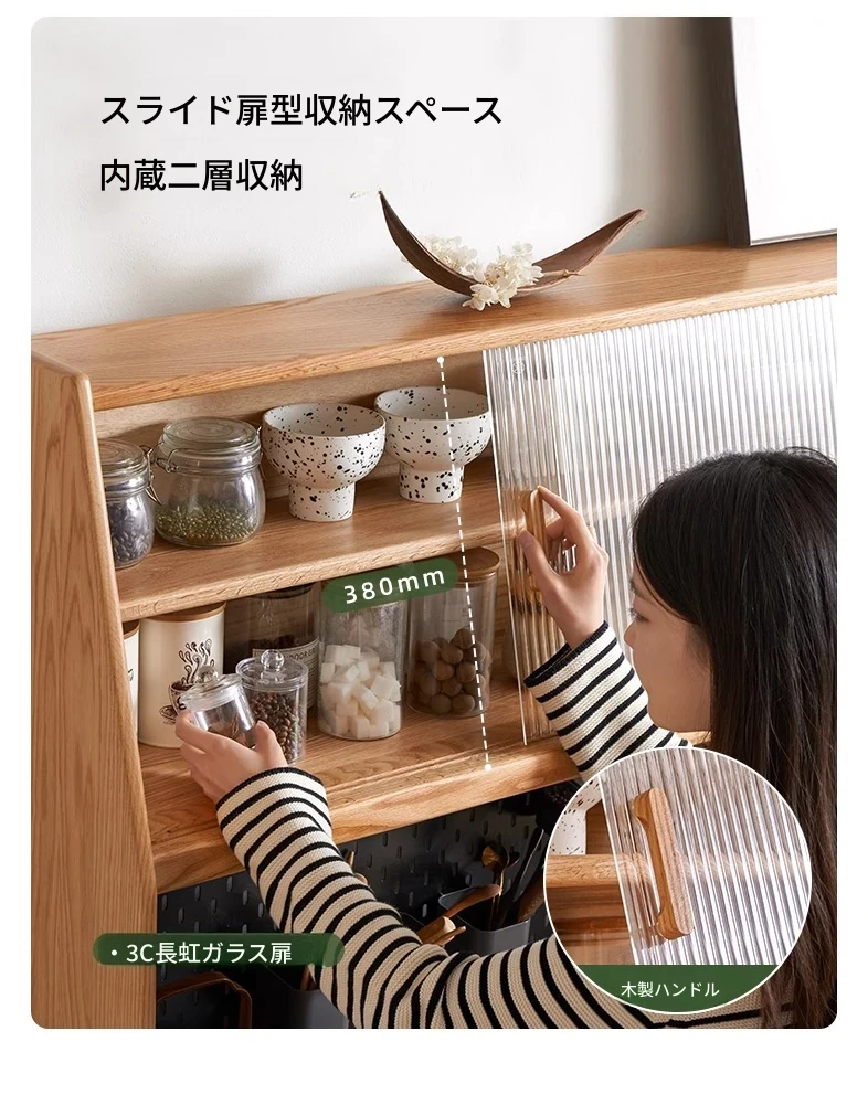 オリジナル無垢材サイドボード – 北欧スタイルのシンプルモダンなダイニング家具!収納力抜群のウォールマウントティーキャビネットで、食卓を美しく演出!
