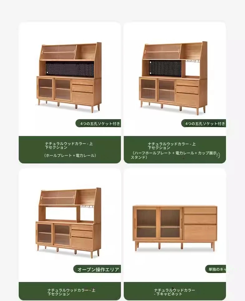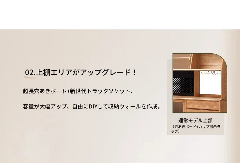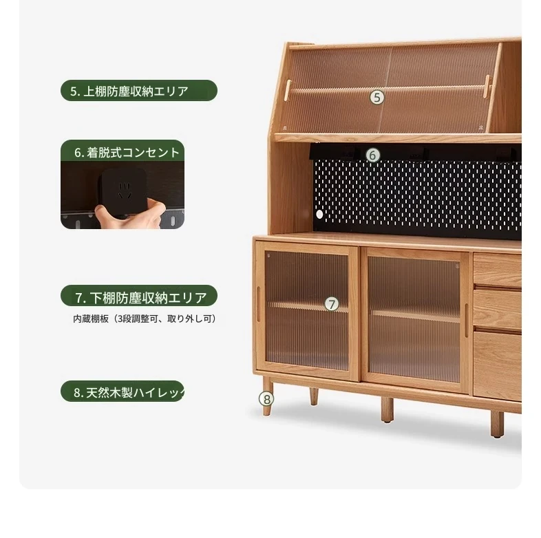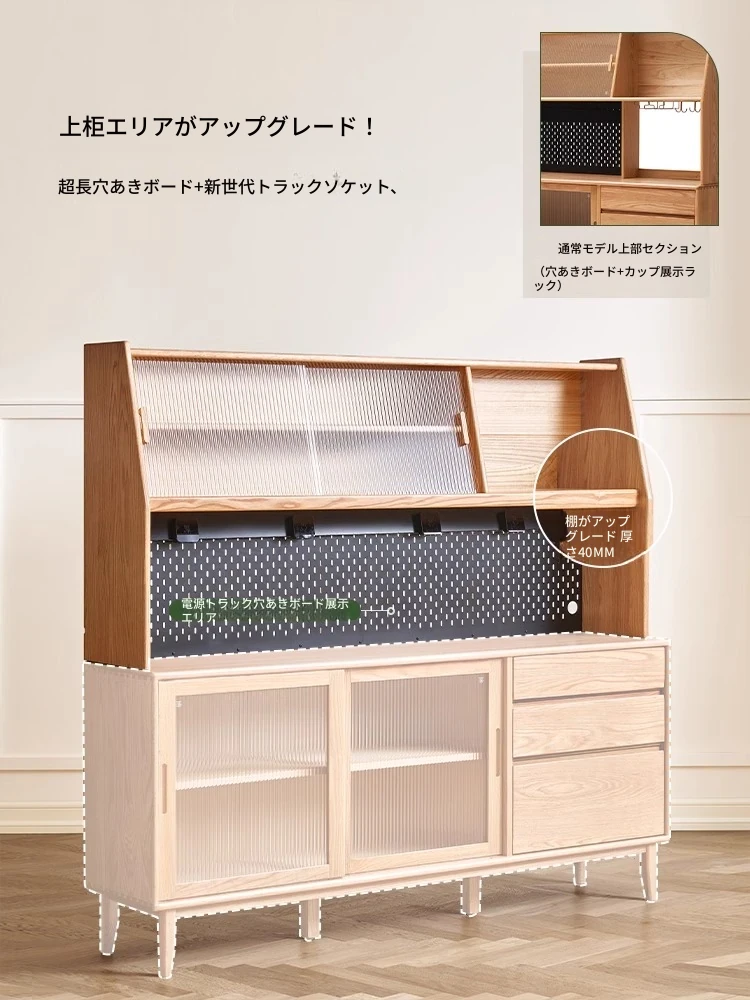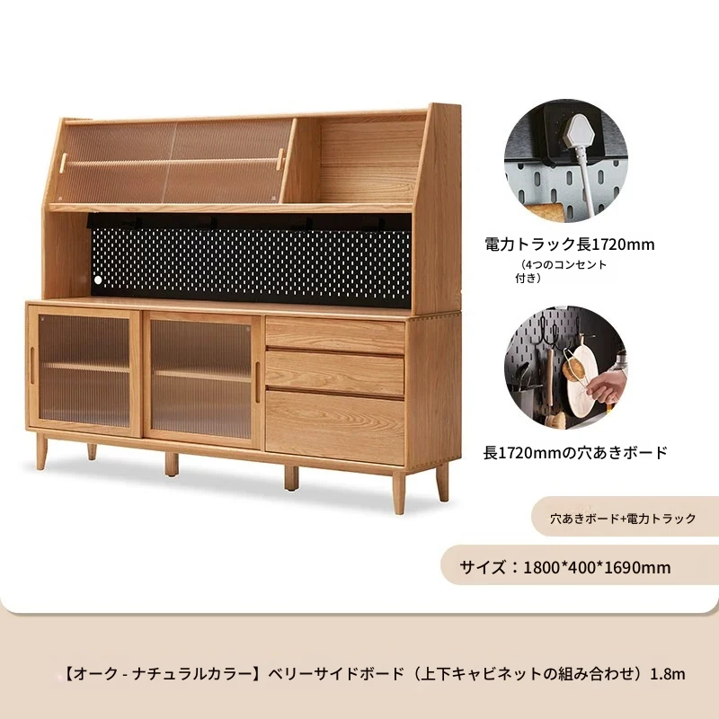 原木色-1.8mダイニングサイドボード上キャビネット付き-多機能(全ての穴あきプレート+電源レール)(1800*400*1690mm)