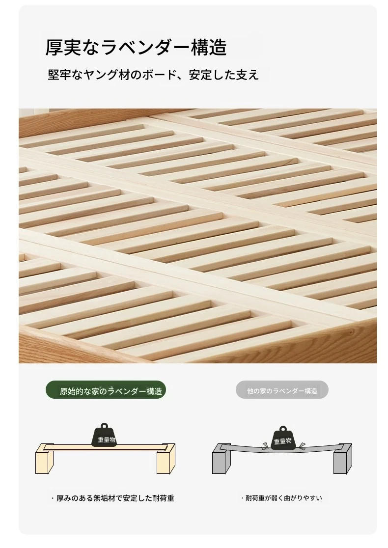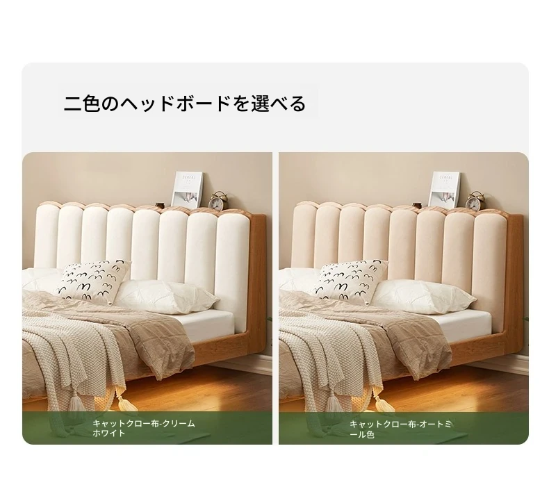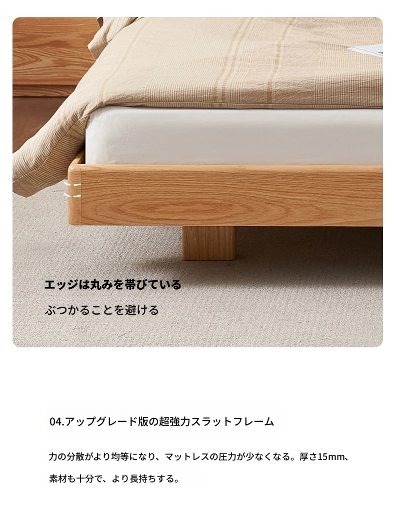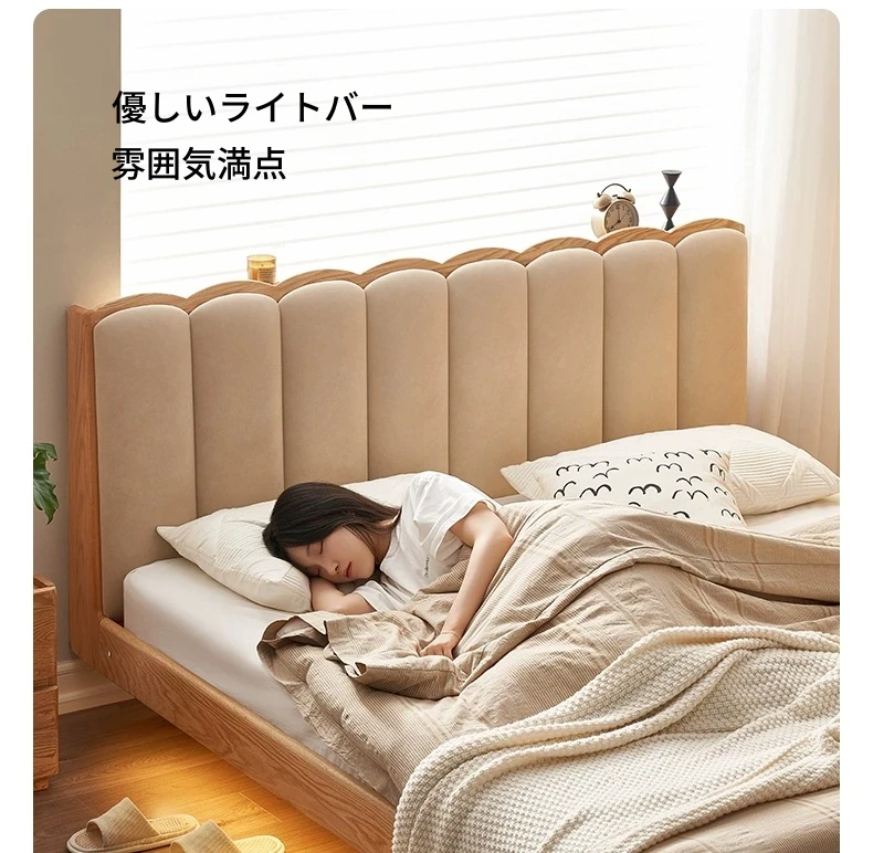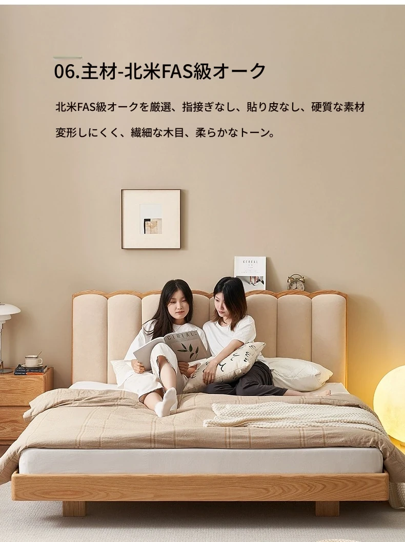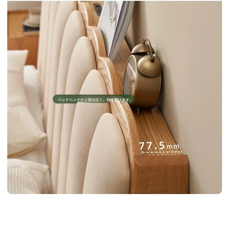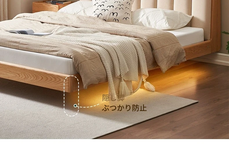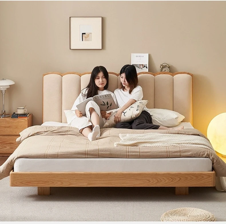 原始のエレメント、無垢材のシンプルモダンオーク花びらベッド - フレンチクリームスタイルの浮遊ベッド! 快適なダブルサイズで、あなたの寝室に優雅さと自然美をプラス。