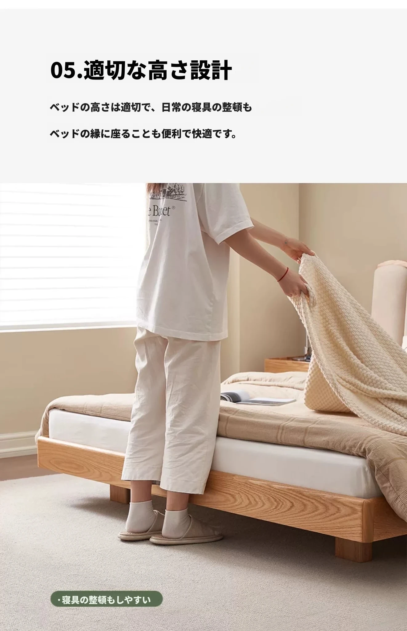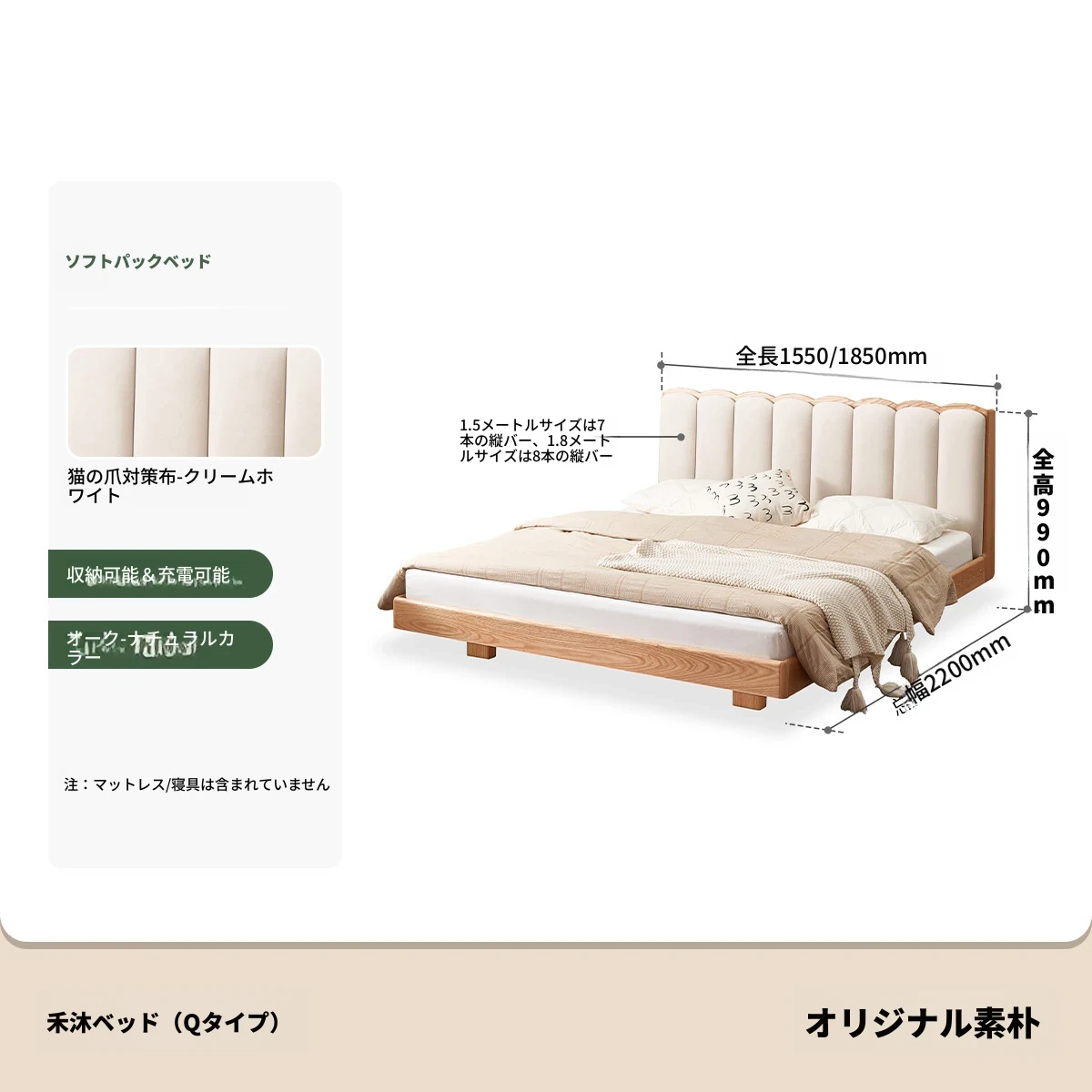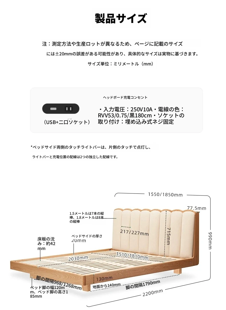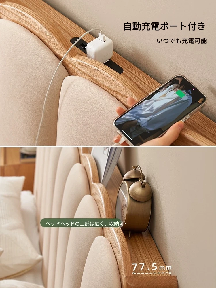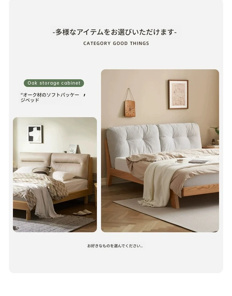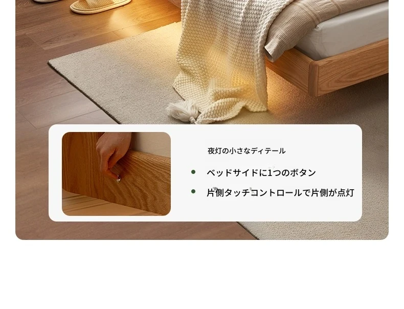 原始のエレメント、無垢材のシンプルモダンオーク花びらベッド - フレンチクリームスタイルの浮遊ベッド! 快適なダブルサイズで、あなたの寝室に優雅さと自然美をプラス。