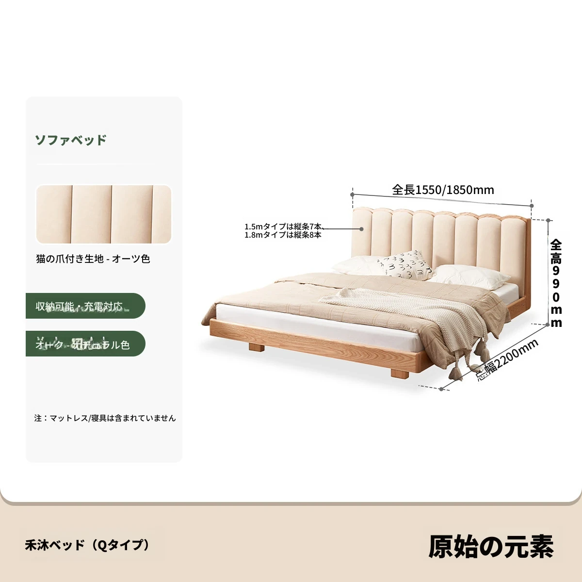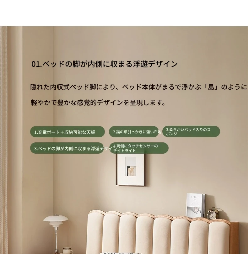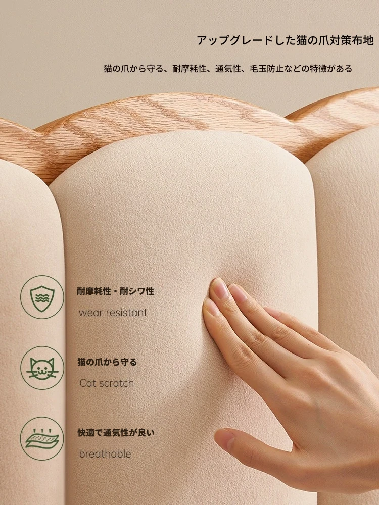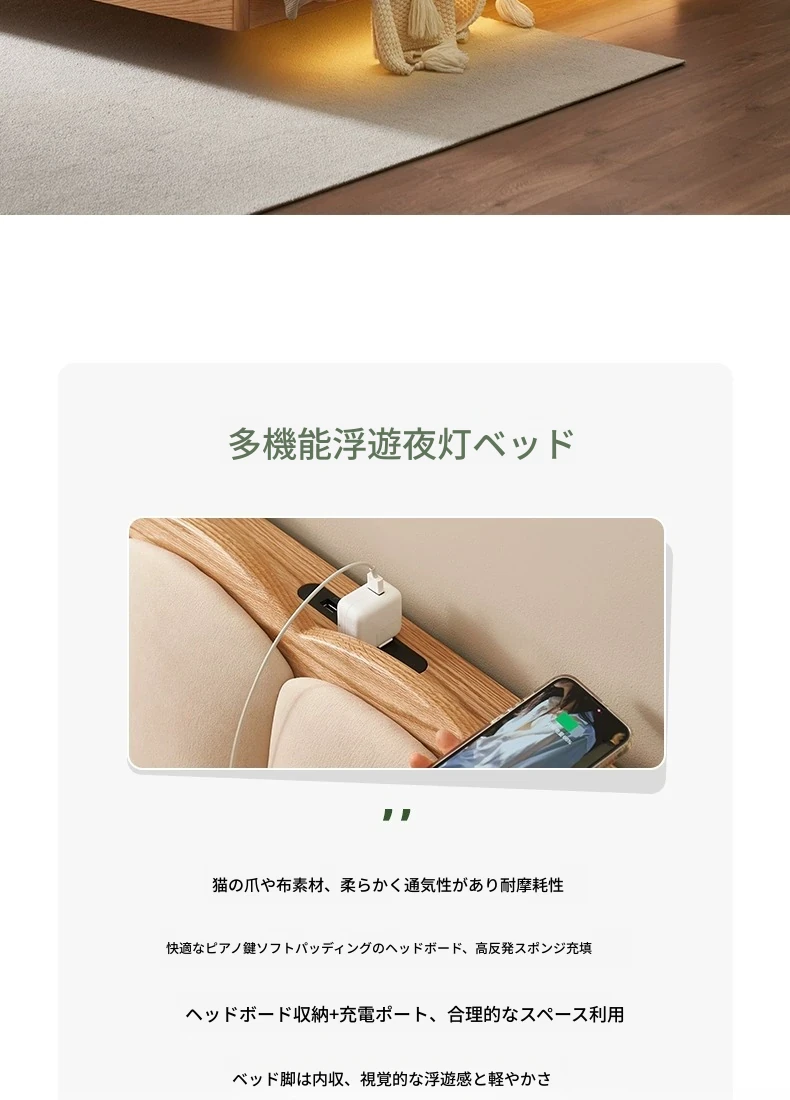【オーク-キャットスクラッチファブリック-クリームホワイト】ヘムベッド(浮遊型ライト付き)