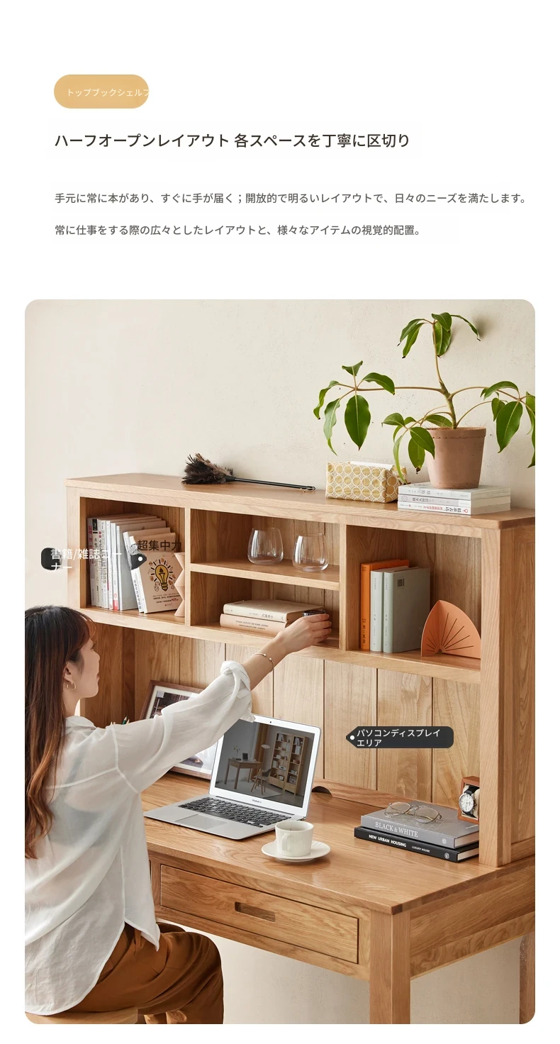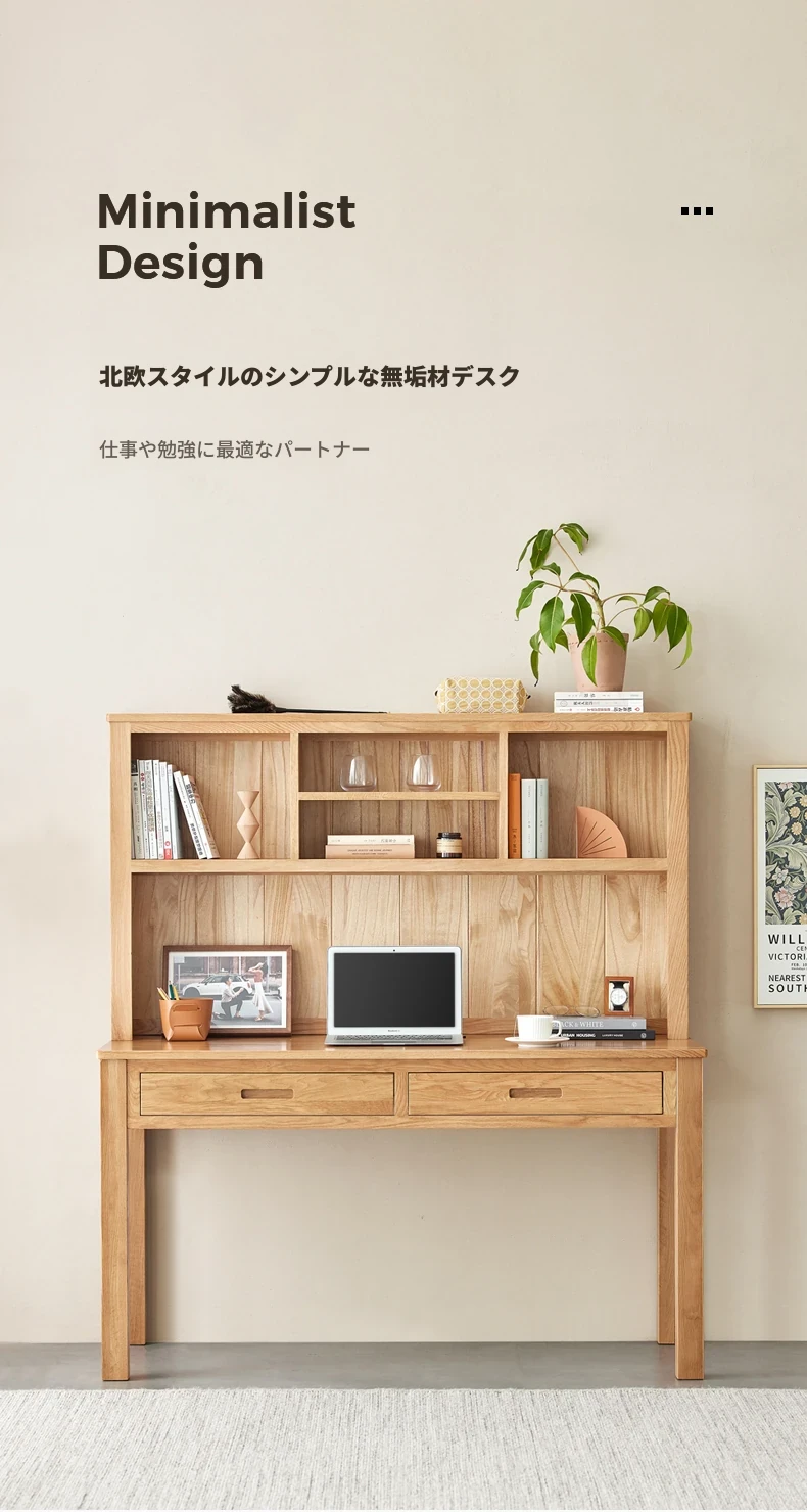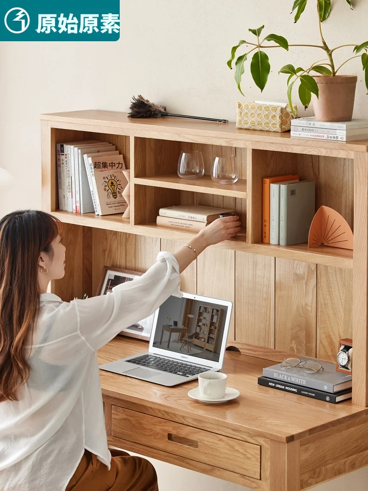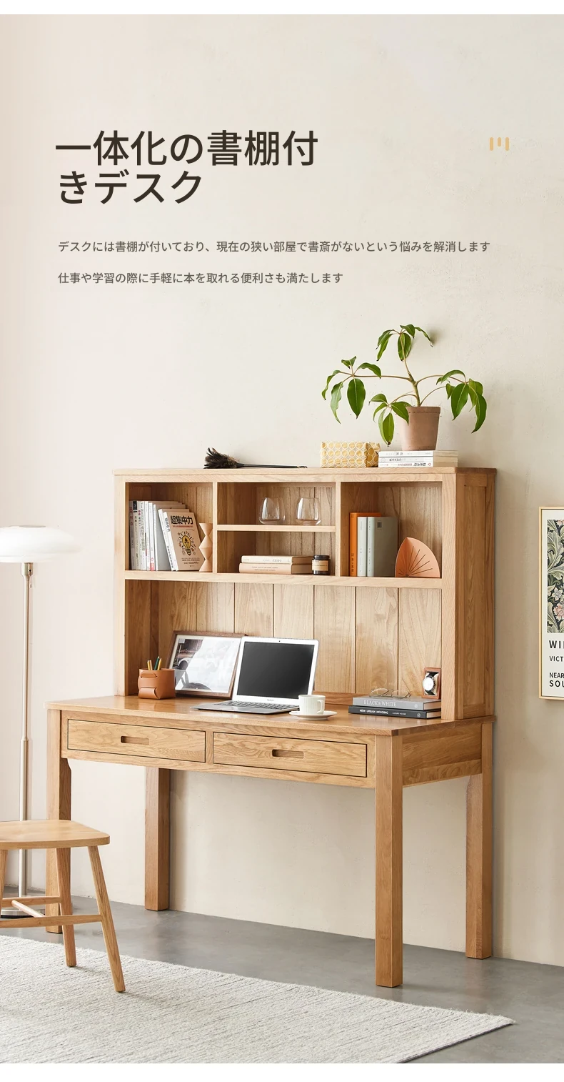 オリジナルエレメント 全実木デスク&シェルフ一体型 北欧スタイル シンプル オーク材 使用 学生向け 書きやすい 学習デスク パソコンデスク 快適な作業空間を提供!
