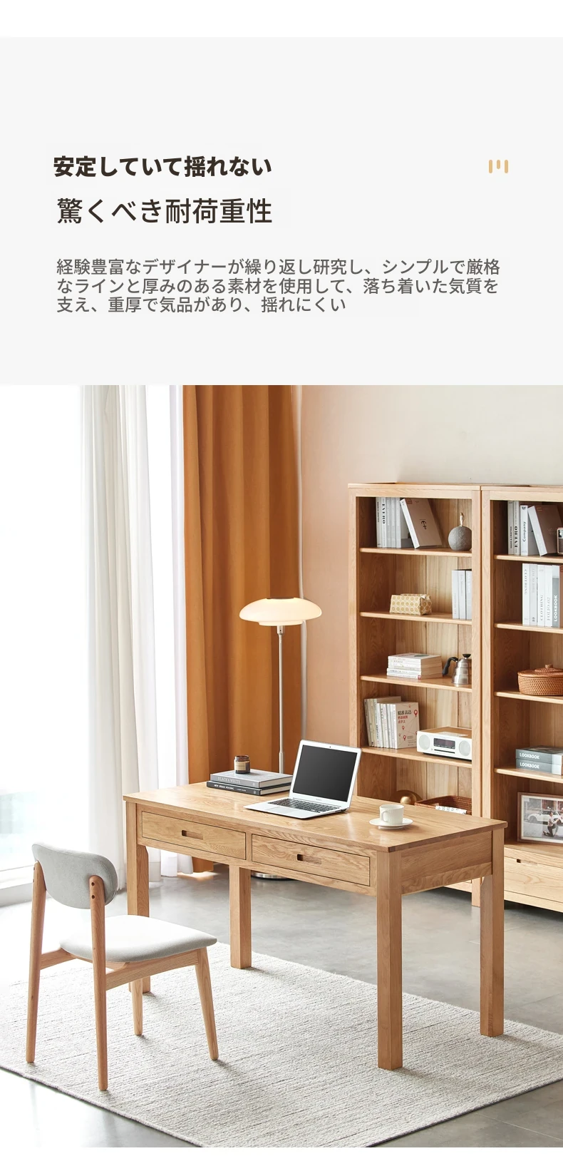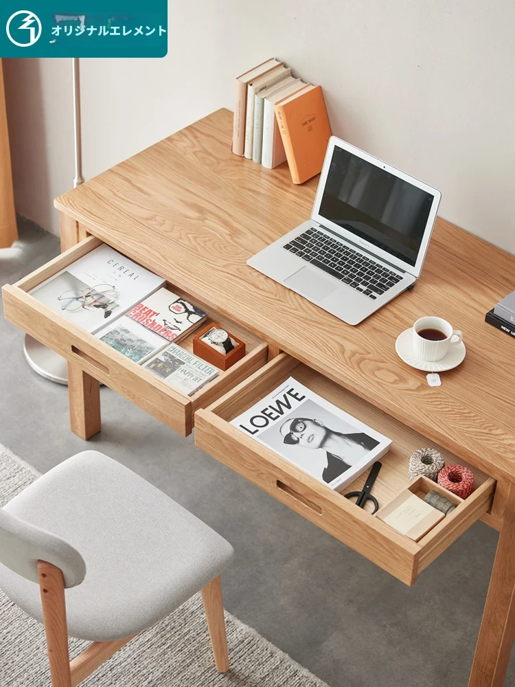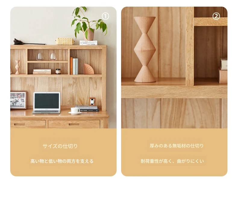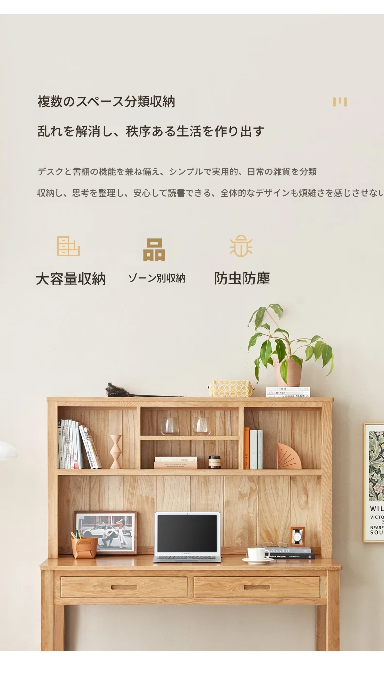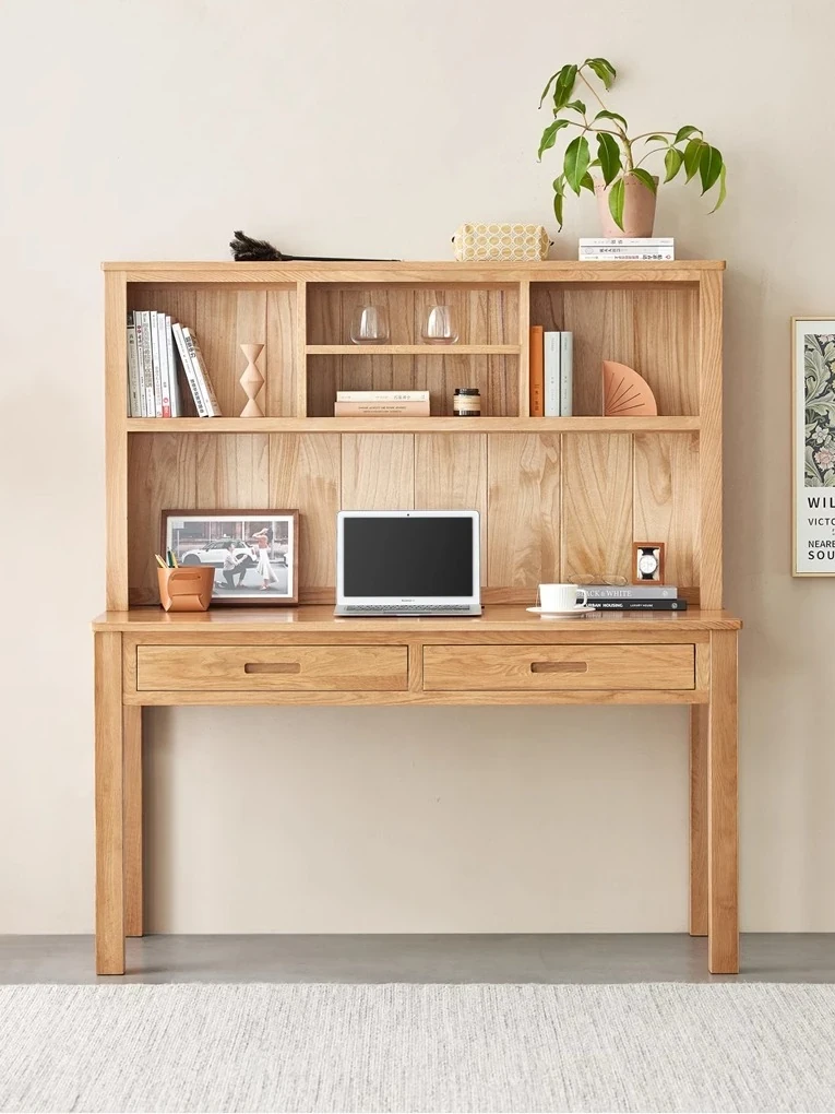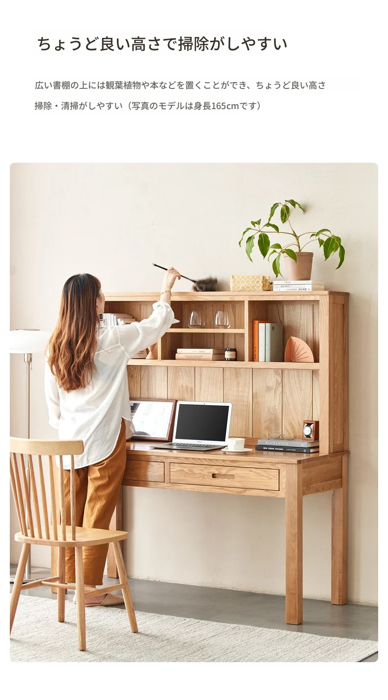オリジナルエレメント 全実木デスク&シェルフ一体型 北欧スタイル シンプル オーク材 使用 学生向け 書きやすい 学習デスク パソコンデスク 快適な作業空間を提供!