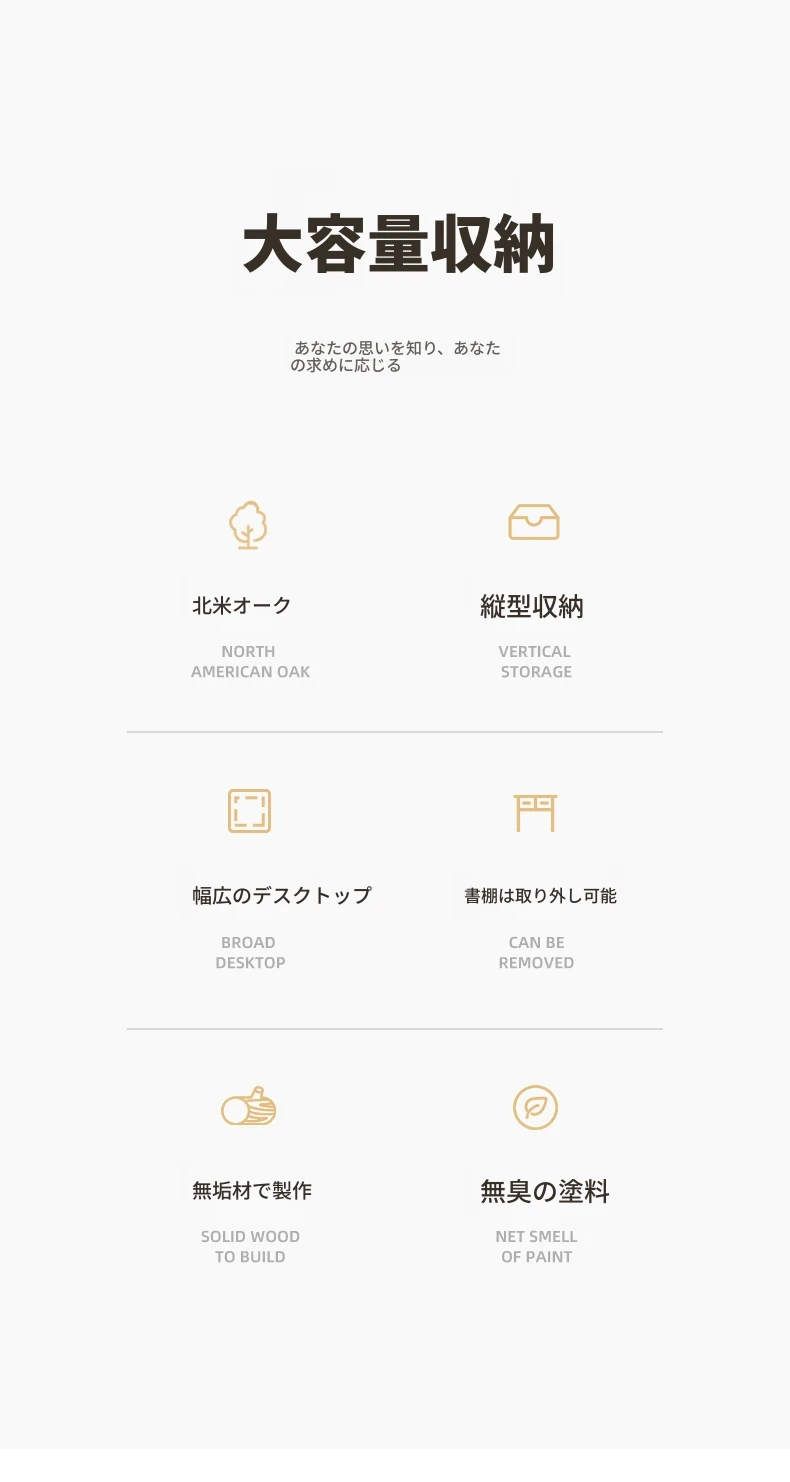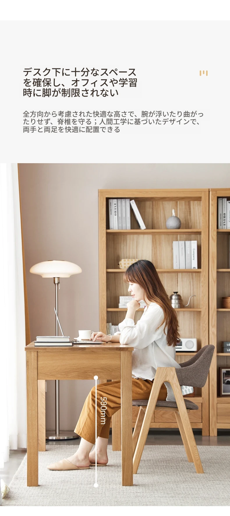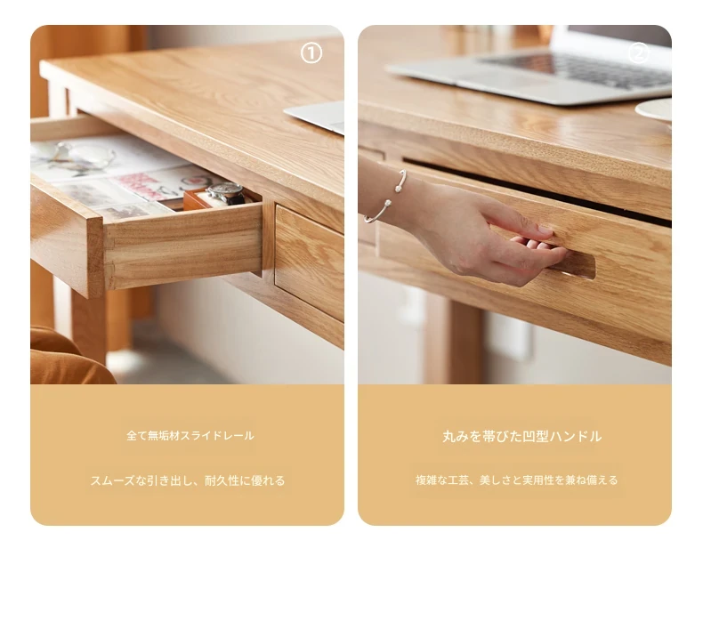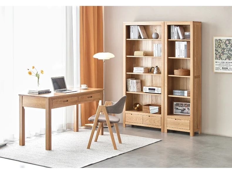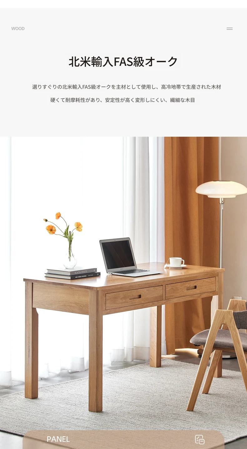 オリジナルエレメント 全実木デスク&シェルフ一体型 北欧スタイル シンプル オーク材 使用 学生向け 書きやすい 学習デスク パソコンデスク 快適な作業空間を提供!
