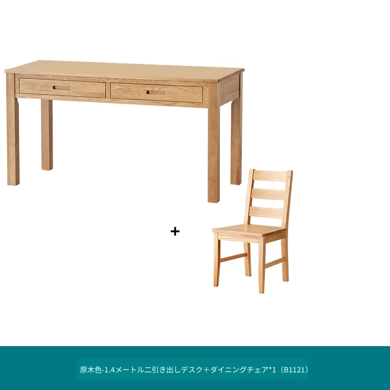 ナチュラルウッド色--1.4mデスク+テーブクチェア*1 (B1121)