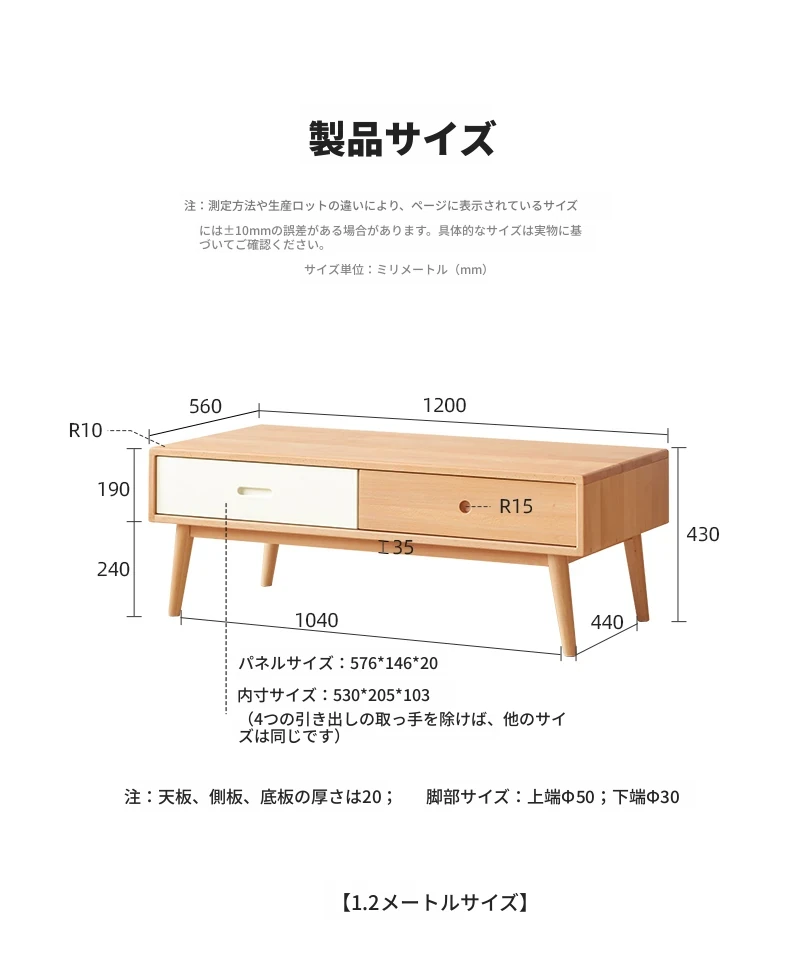 ナチュラルウッド色--1.2mデスク