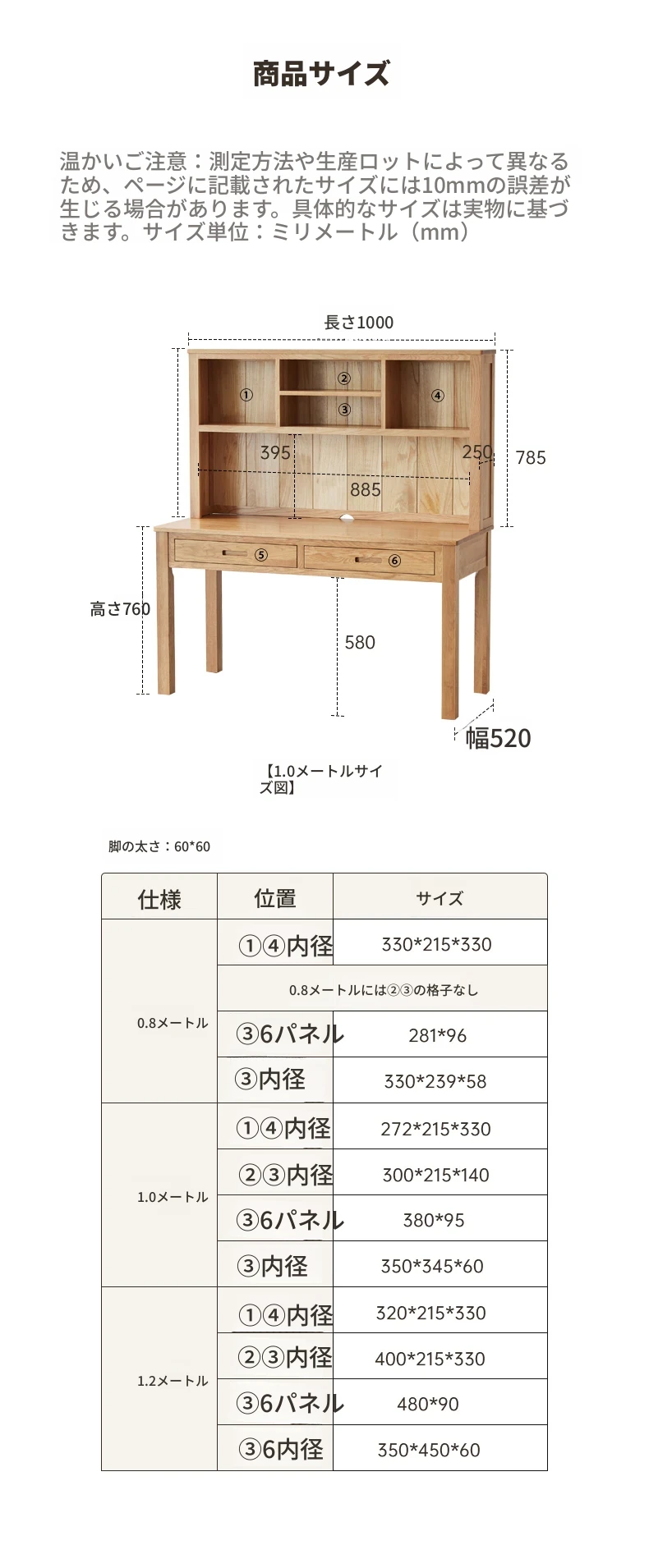 ナチュラルウッド色--1.0mデスク