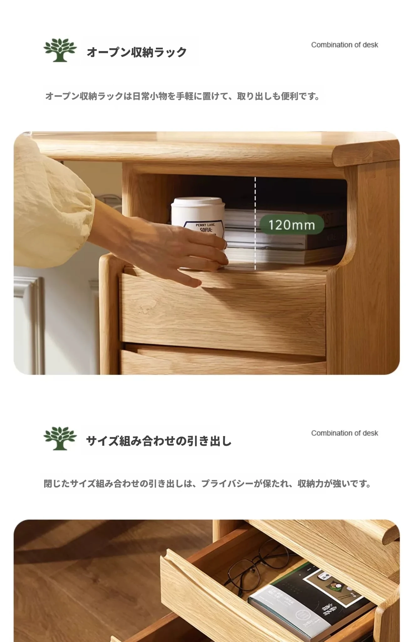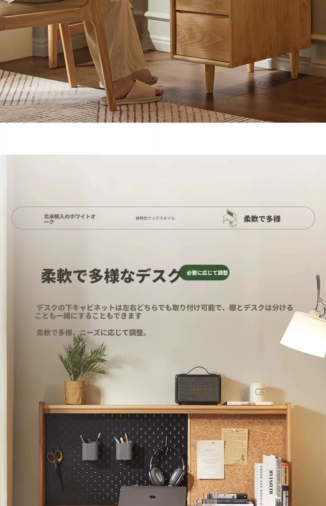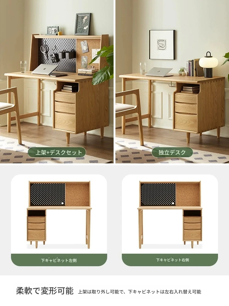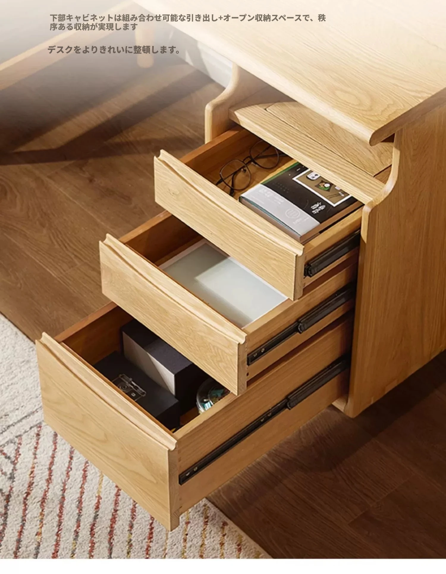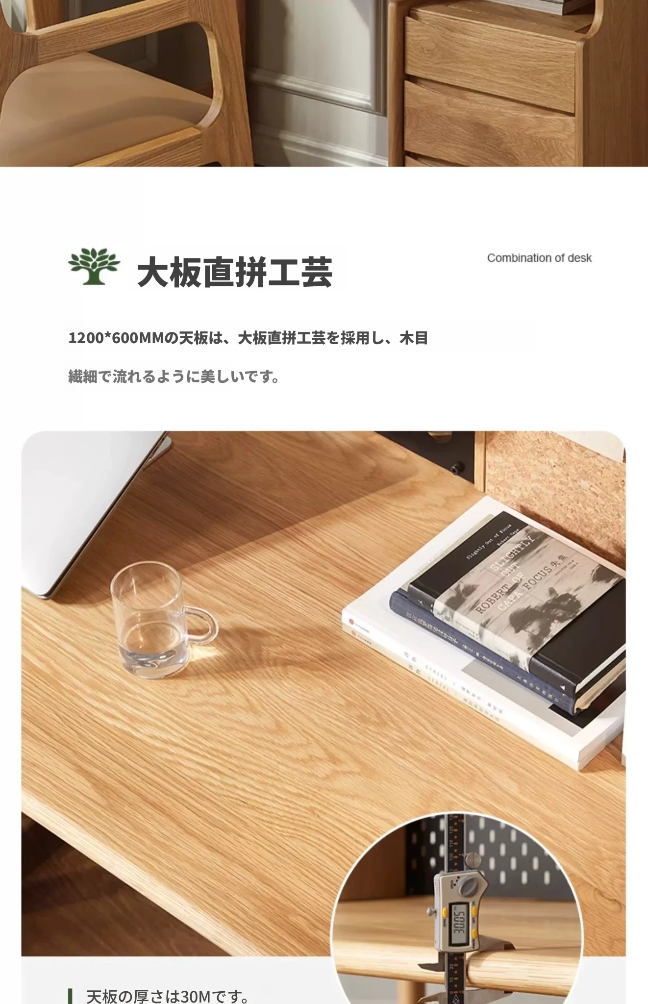 原木のオフィスデスク&書棚セット - ホワイトオーク製、シンプルでスタイリッシュなデザイン、自宅学習や仕事に最適!快適な作業空間を実現し、収納力も抜群です。