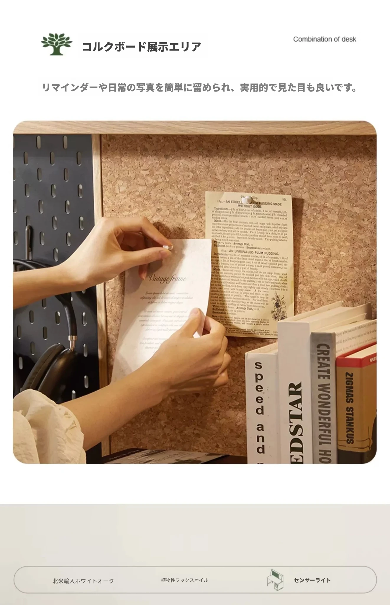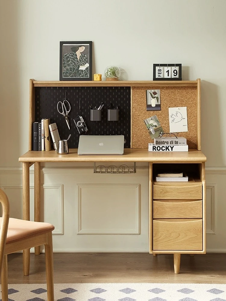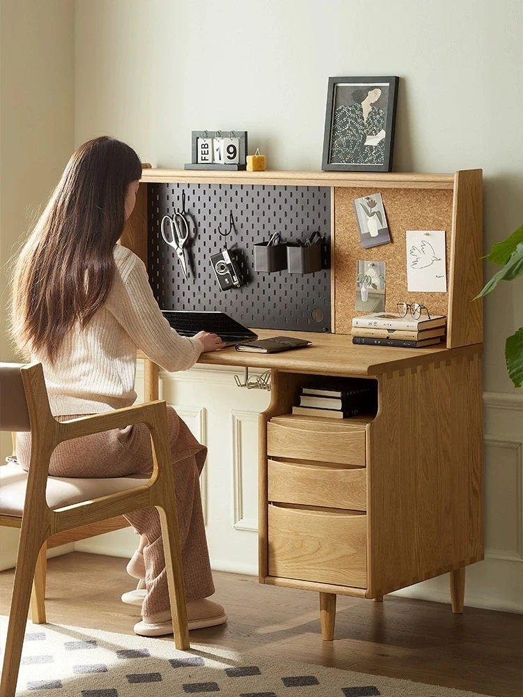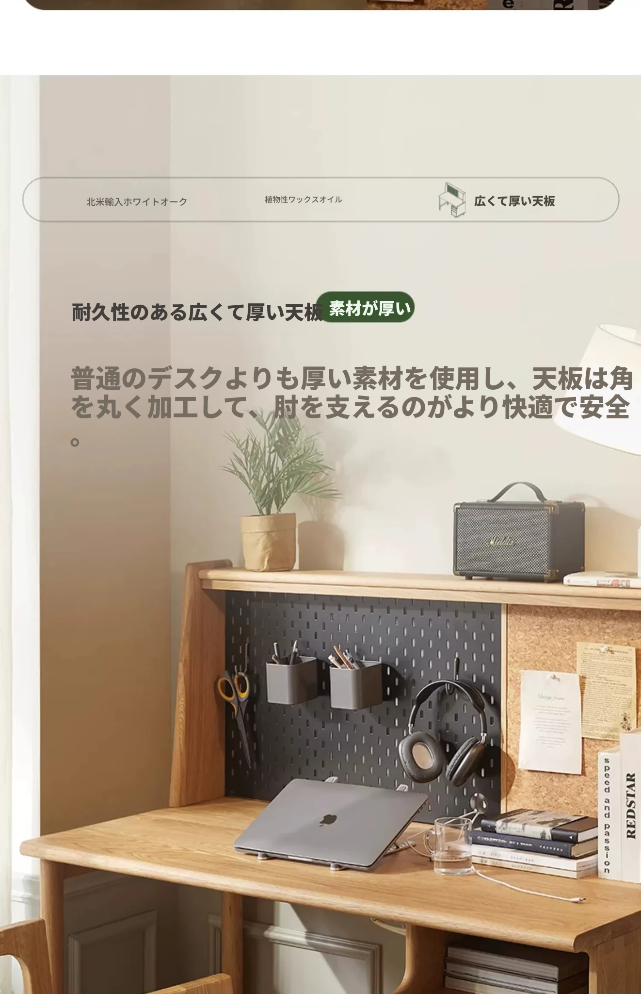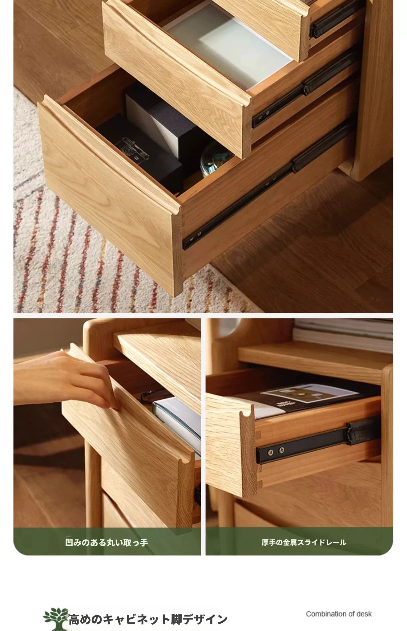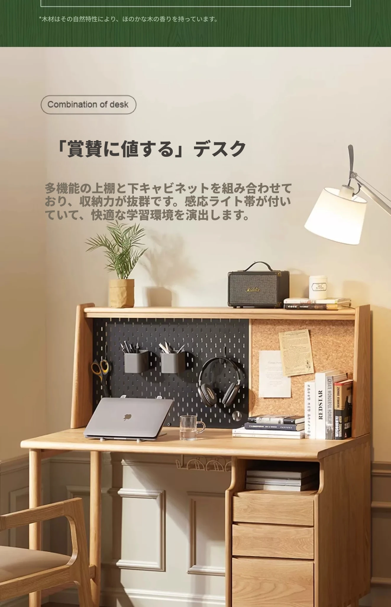 原木のオフィスデスク&書棚セット - ホワイトオーク製、シンプルでスタイリッシュなデザイン、自宅学習や仕事に最適!快適な作業空間を実現し、収納力も抜群です。