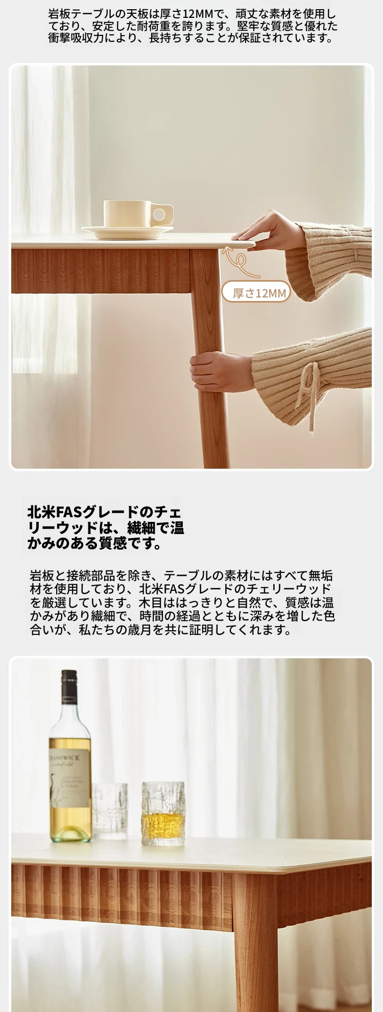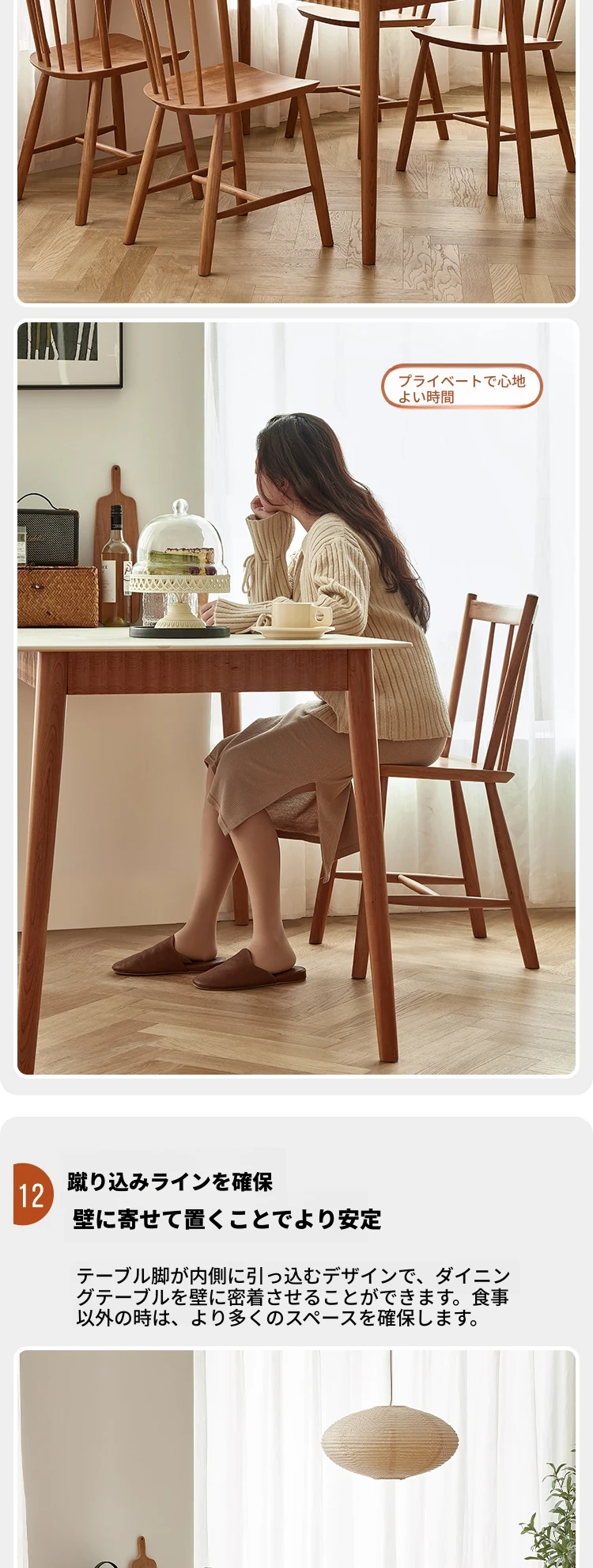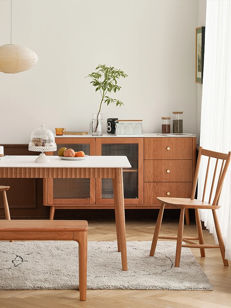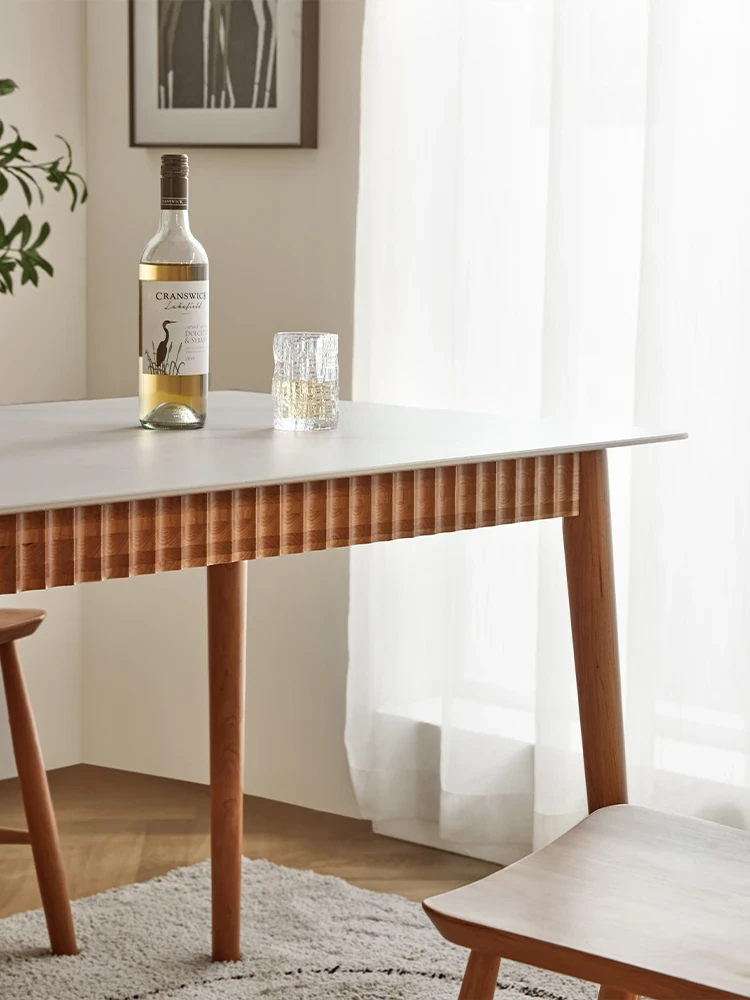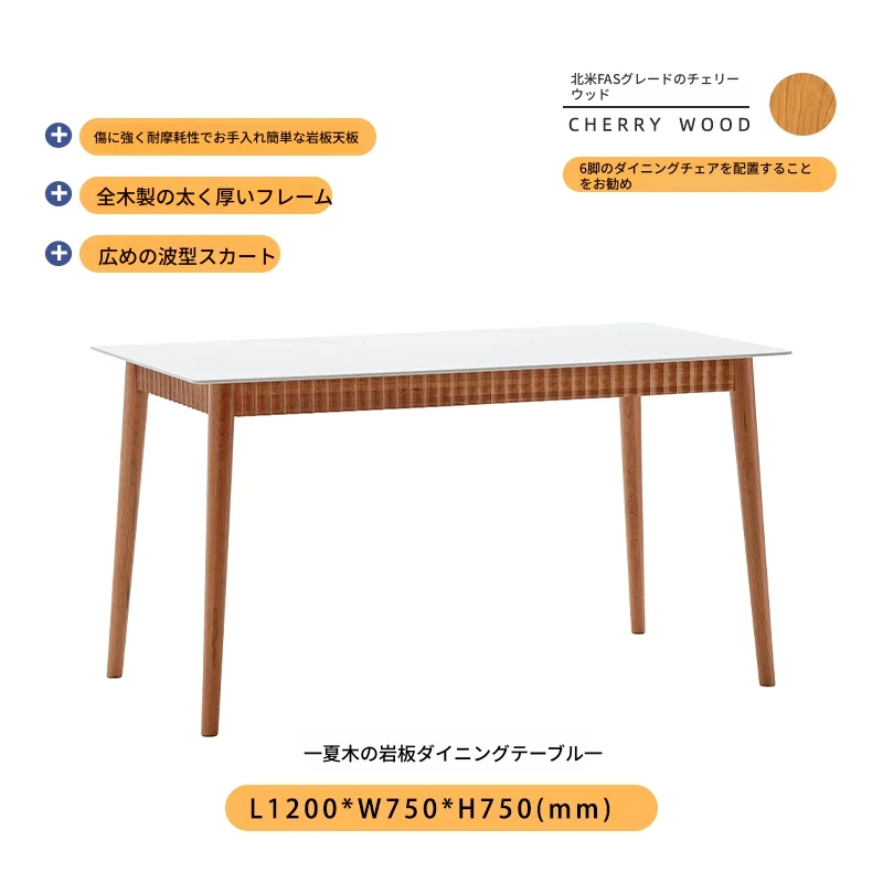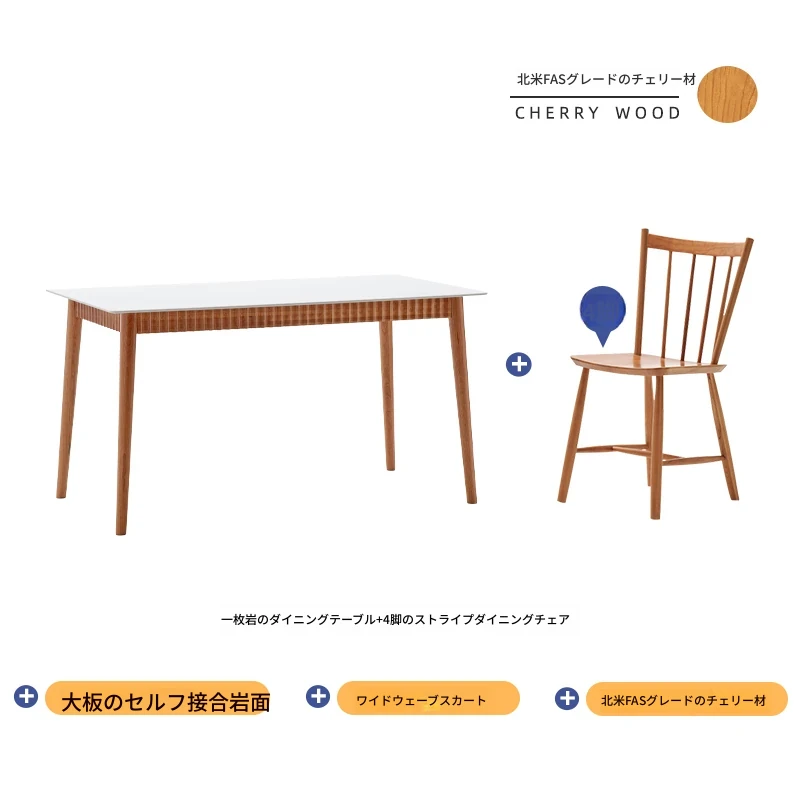 オリジナル無垢材ダイニングテーブル - モダンでシンプルな小型チェリーウッド岩板テーブル&チェアセット、家庭用に最適な食事空間を演出!