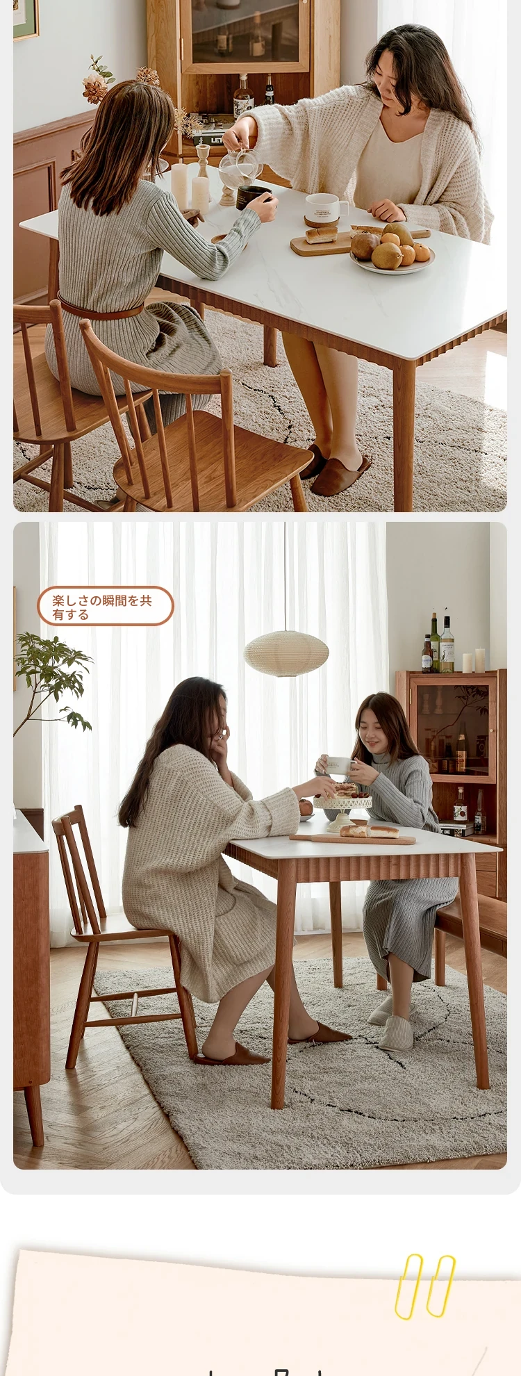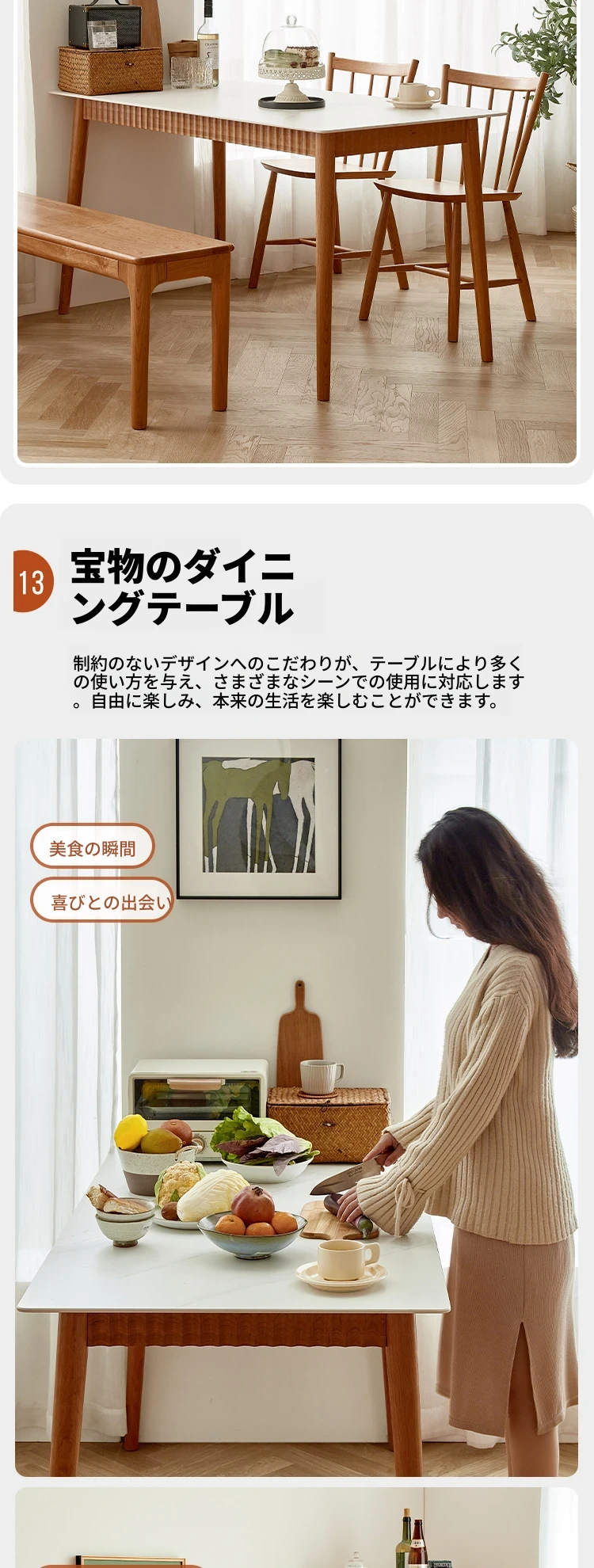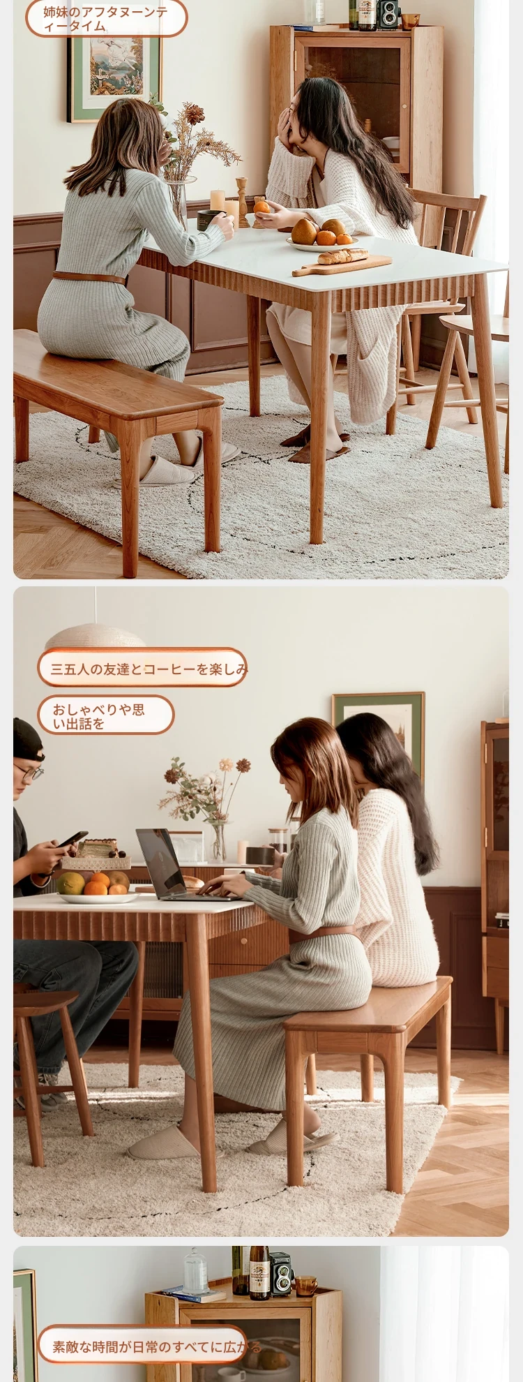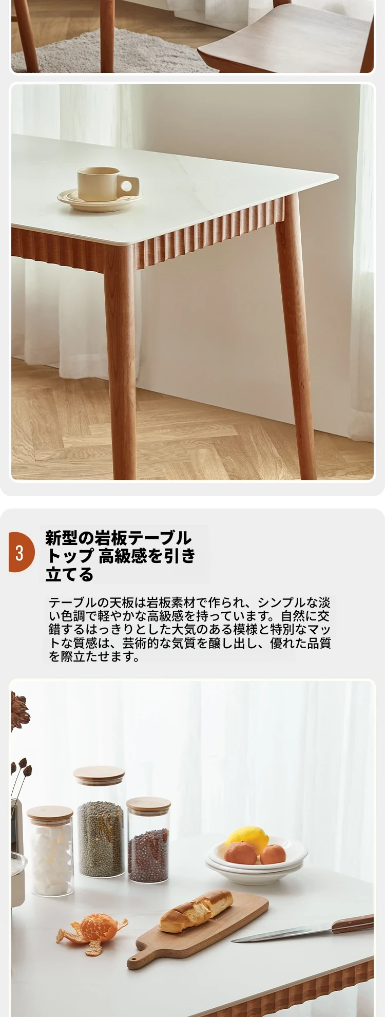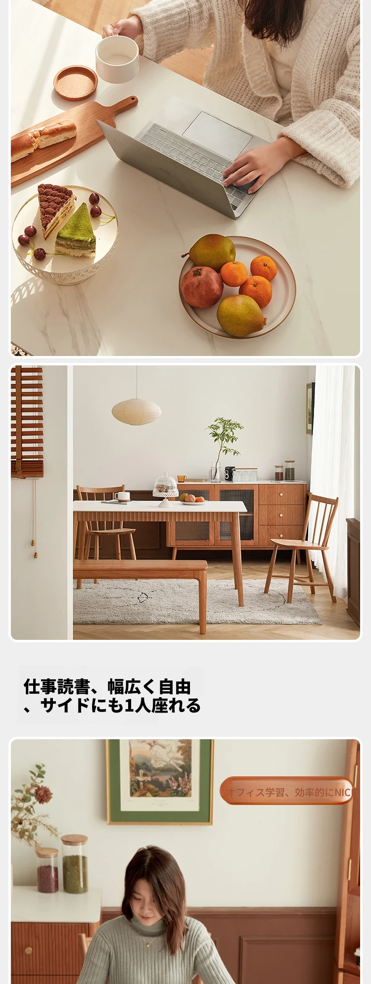 オリジナル無垢材ダイニングテーブル - モダンでシンプルな小型チェリーウッド岩板テーブル&チェアセット、家庭用に最適な食事空間を演出!