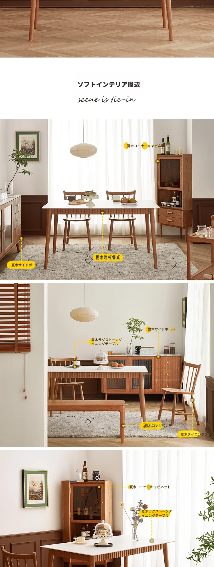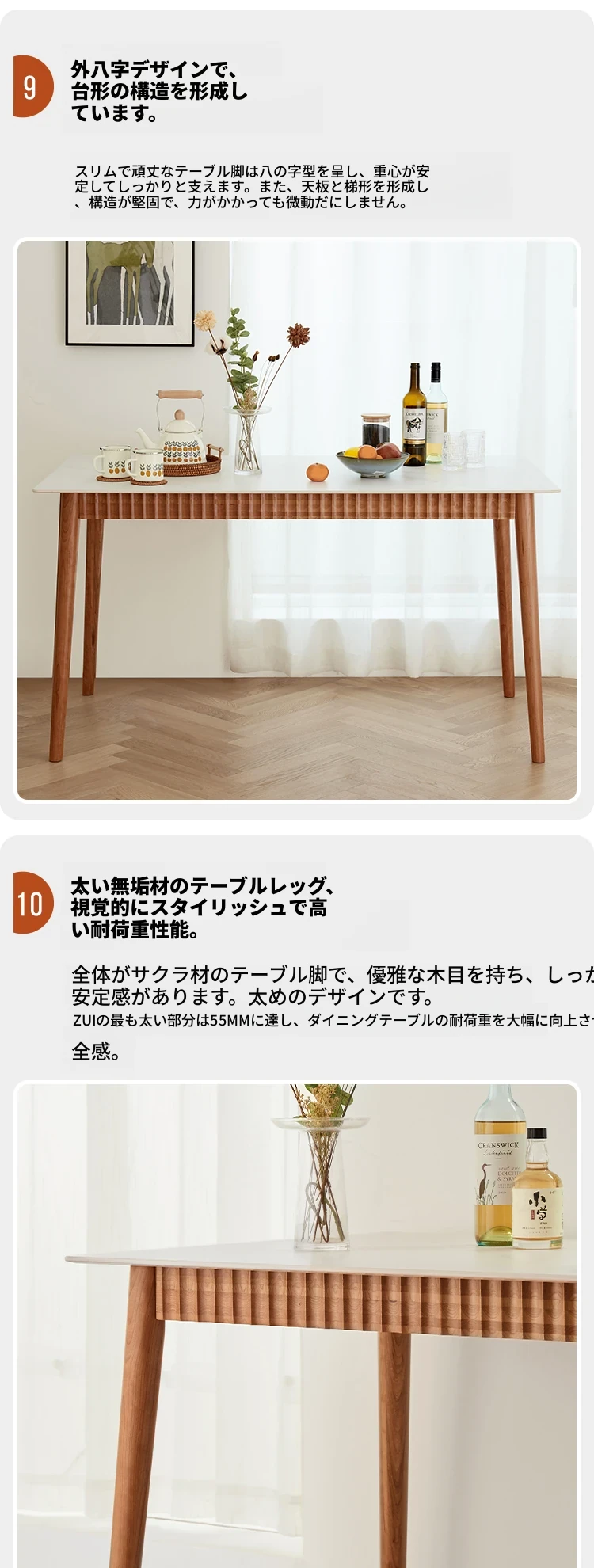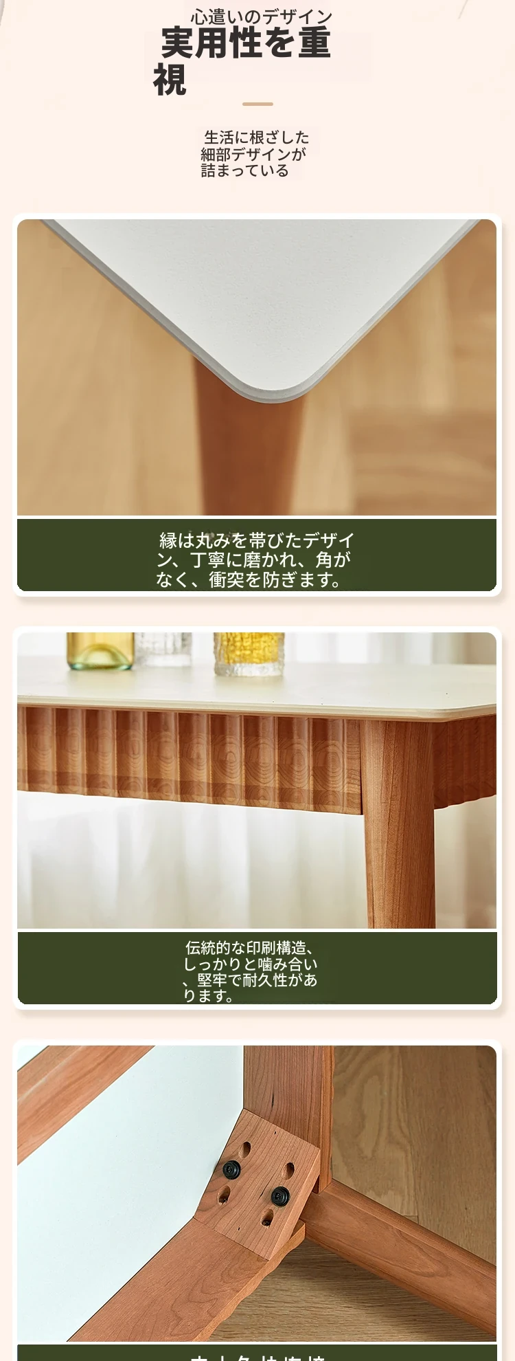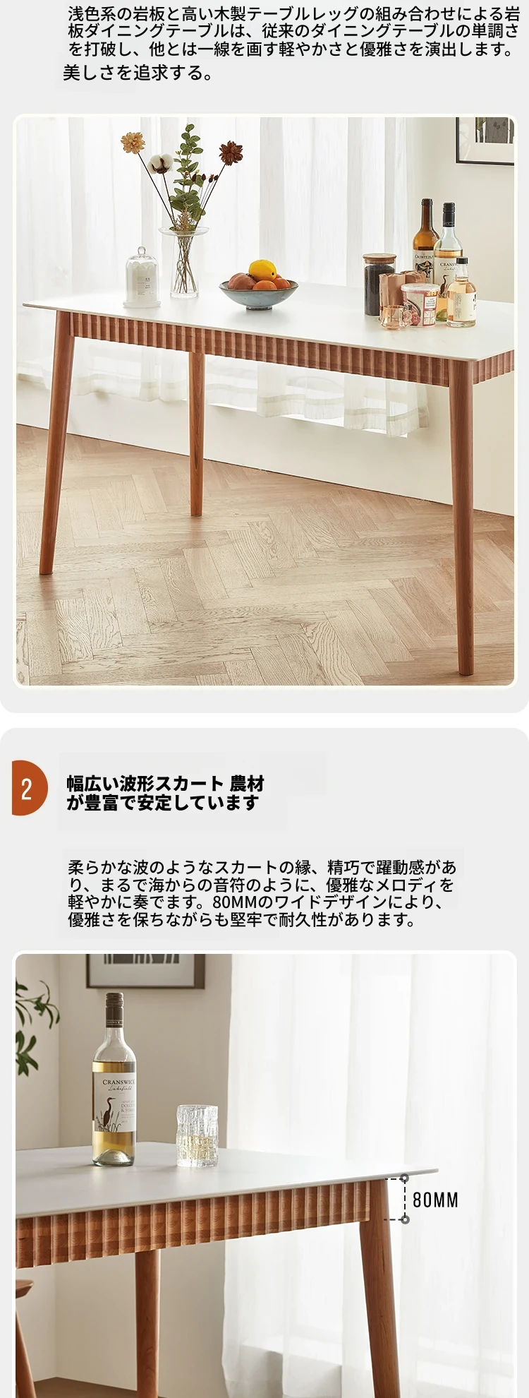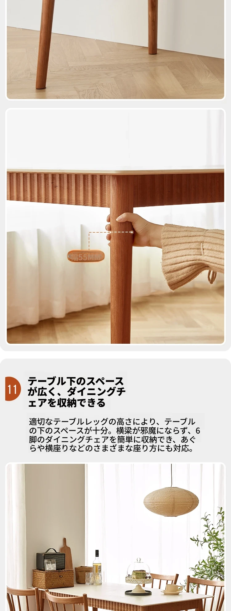 オリジナル無垢材ダイニングテーブル - モダンでシンプルな小型チェリーウッド岩板テーブル&チェアセット、家庭用に最適な食事空間を演出!