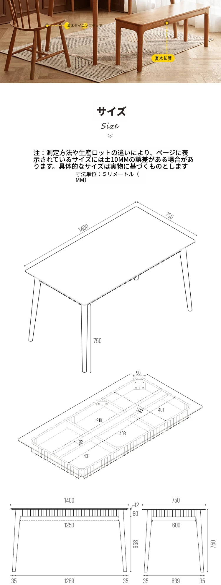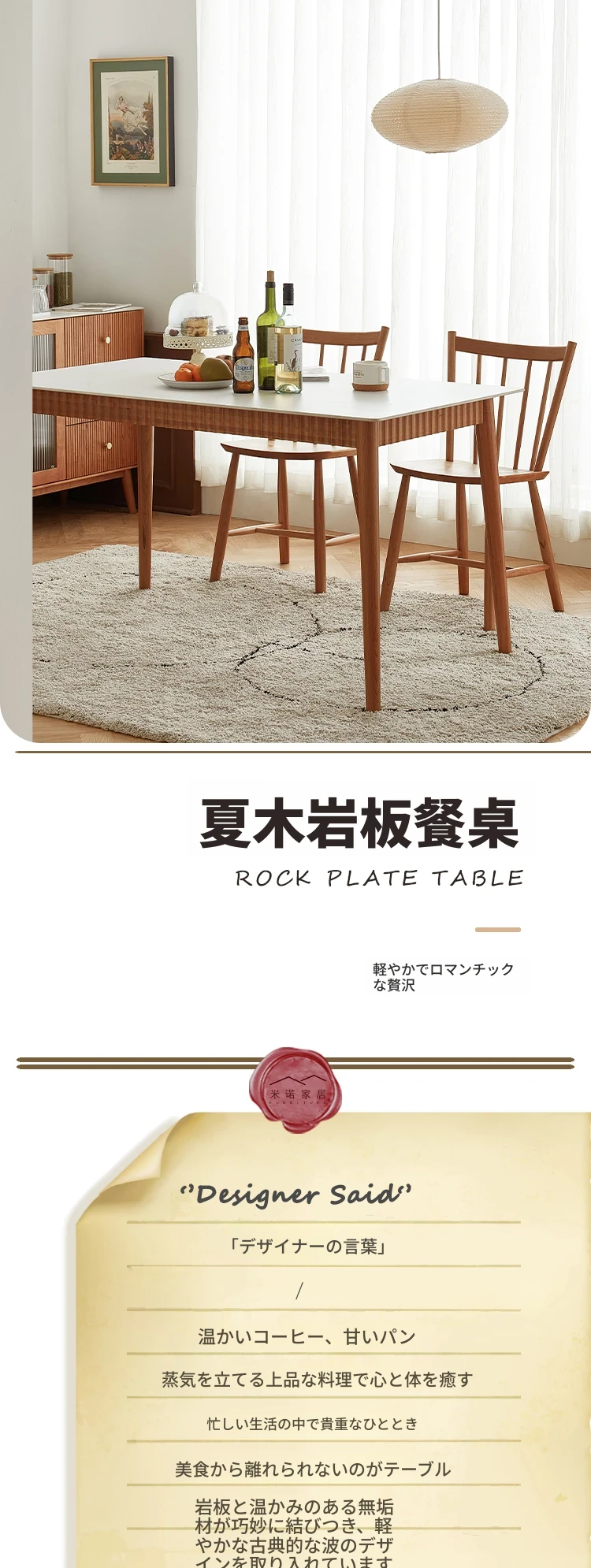 樱桃木岩板餐桌1.4米 1400*750*750mm