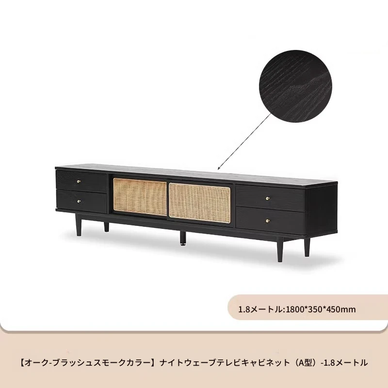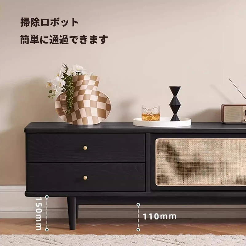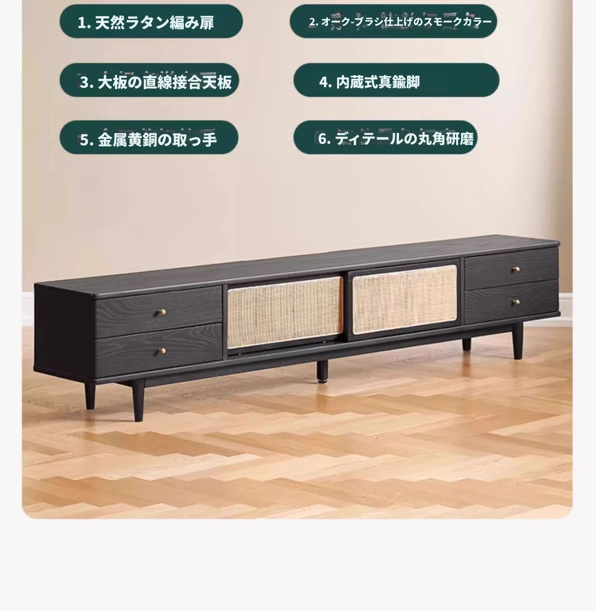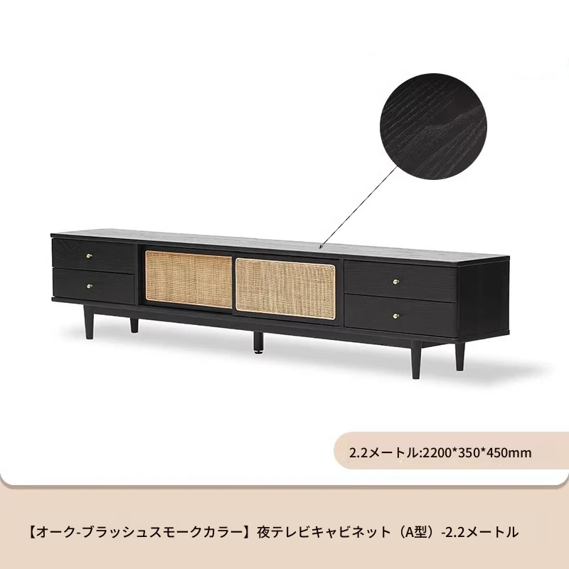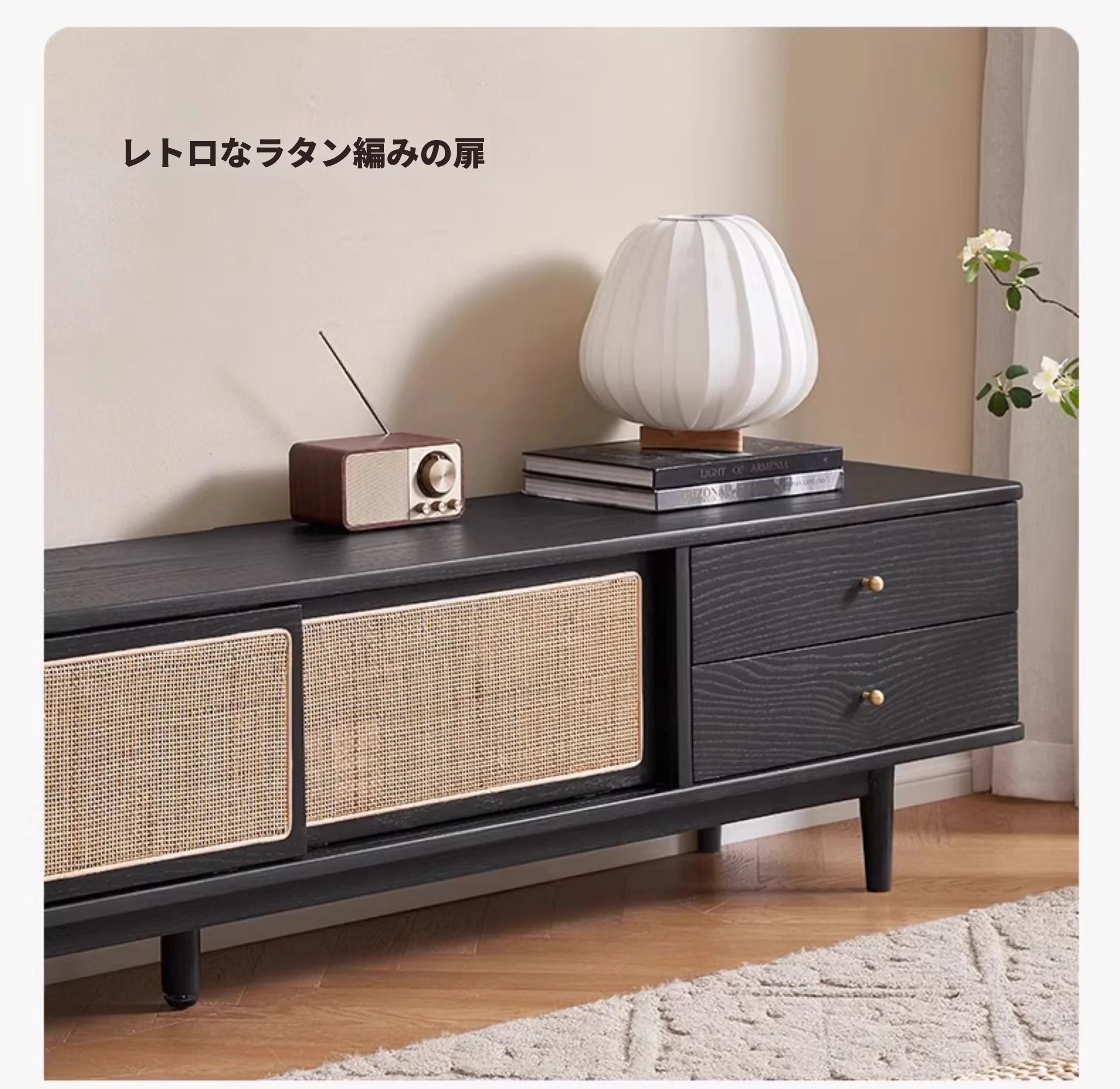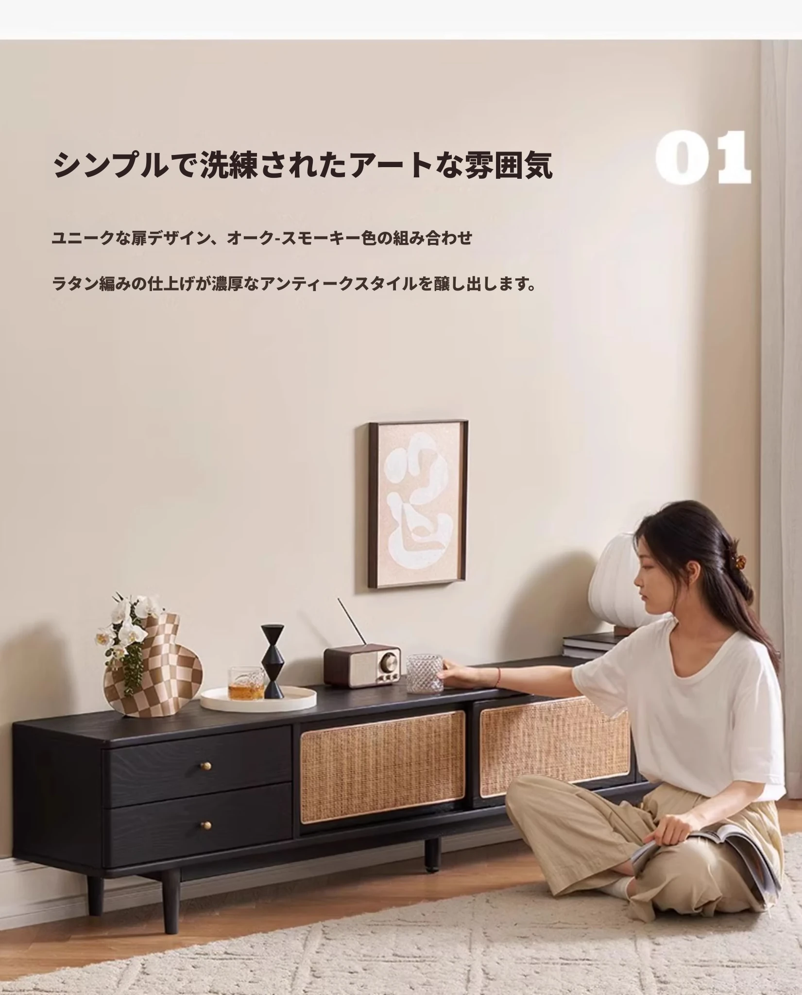 オーガニックバージン無垢材のテレビボード - ラグジュアリー感あふれる小型リビングにぴったりなオーク&ラタンの収納キャビネット。洗練されたデザインで、スタイリッシュにお部屋を彩ります。収納力も抜群!