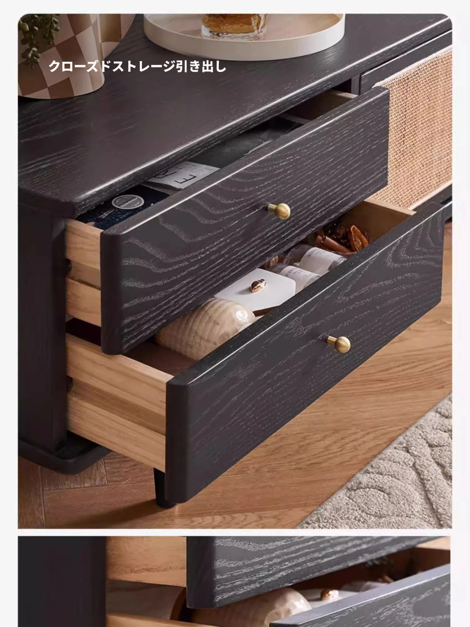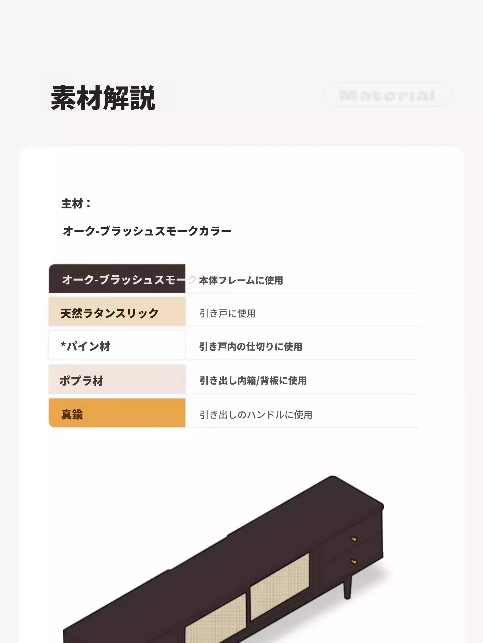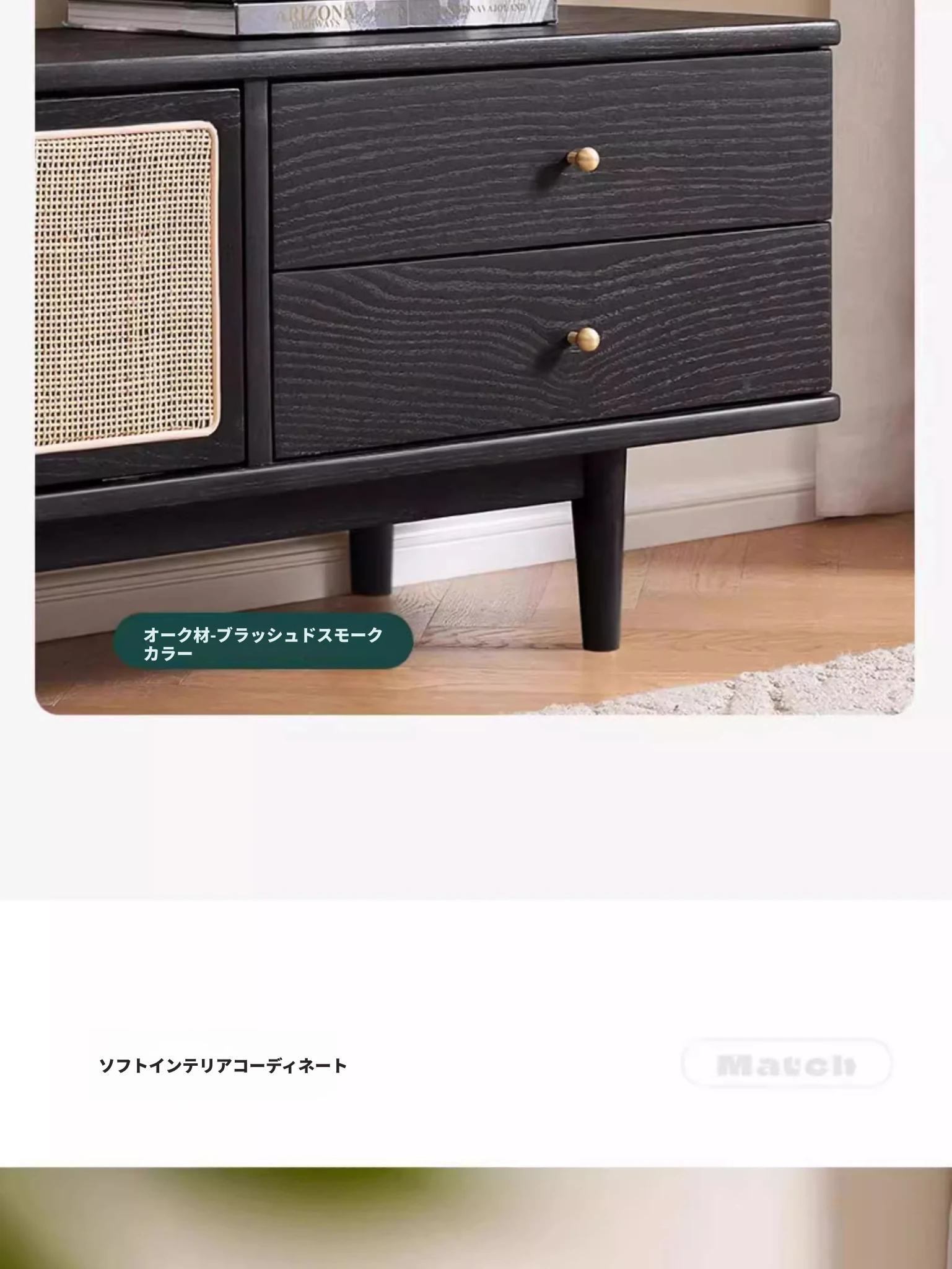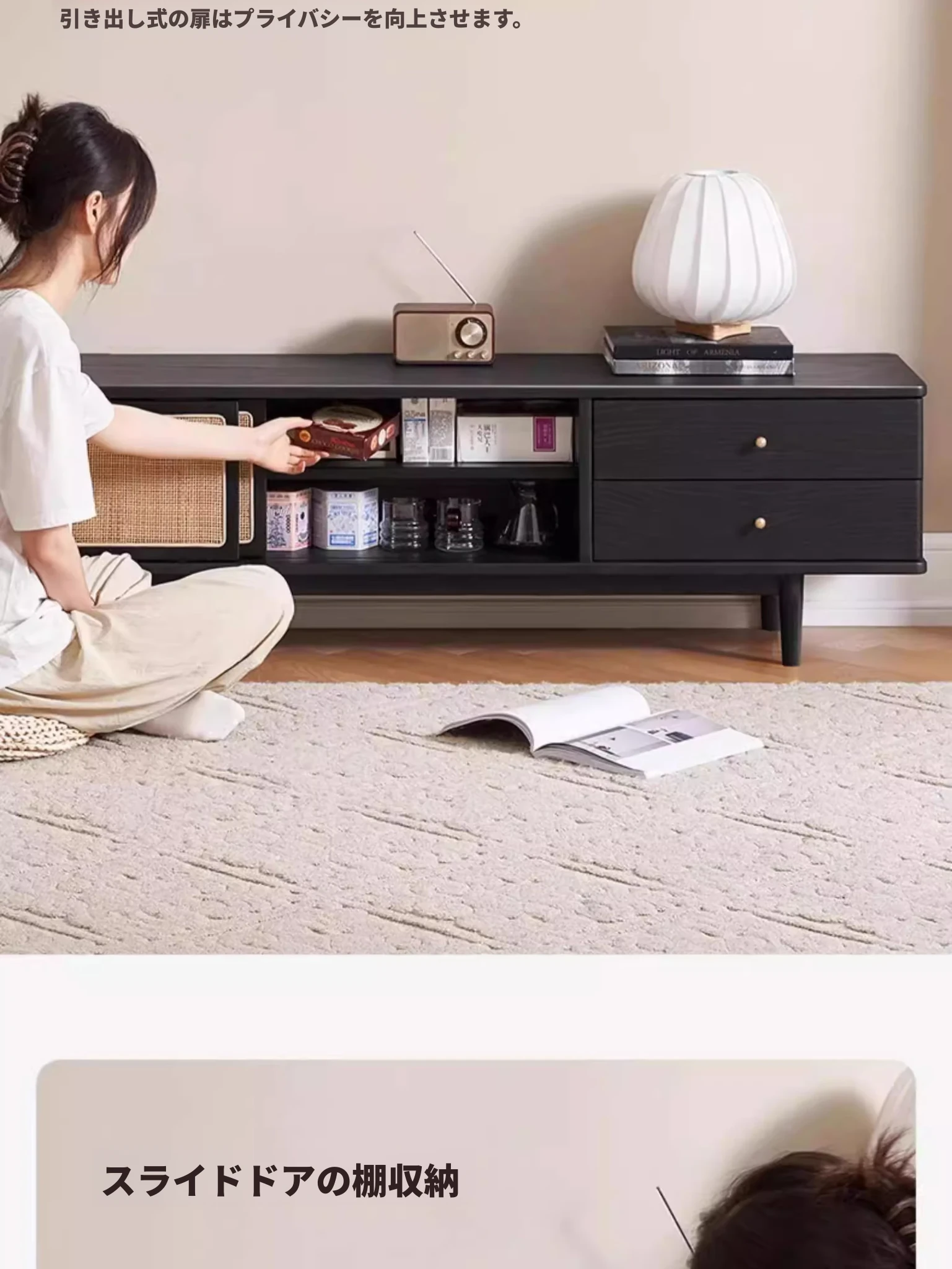 オーガニックバージン無垢材のテレビボード - ラグジュアリー感あふれる小型リビングにぴったりなオーク&ラタンの収納キャビネット。洗練されたデザインで、スタイリッシュにお部屋を彩ります。収納力も抜群!