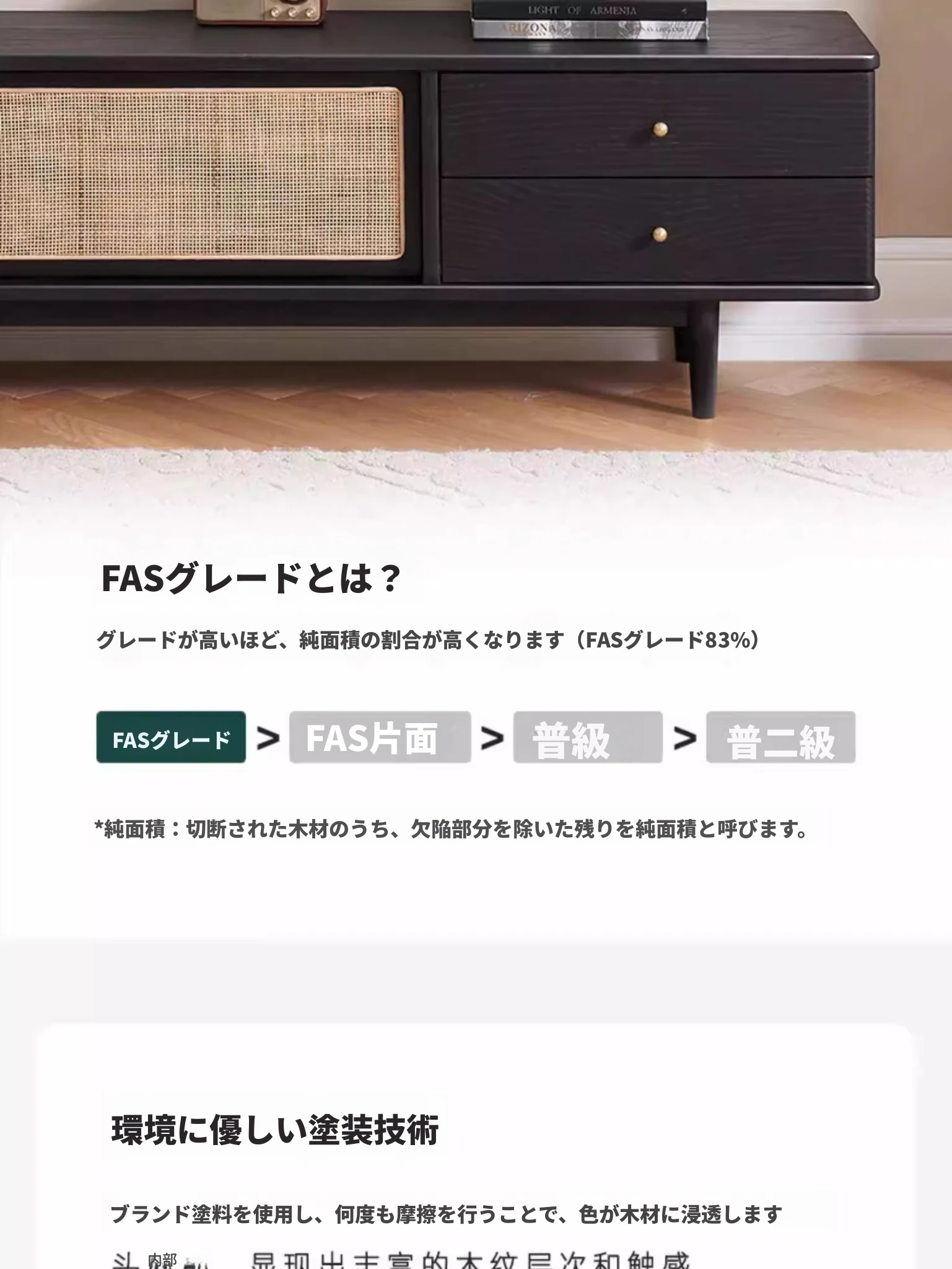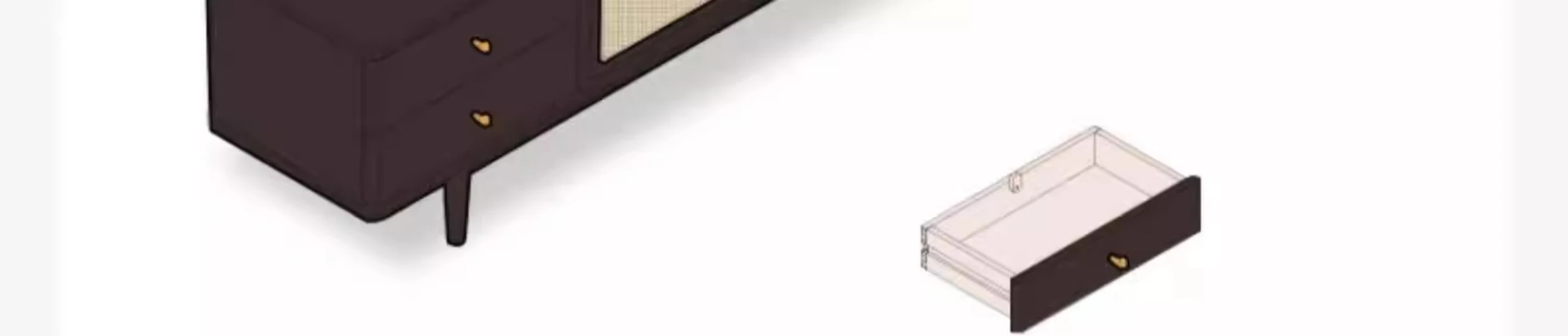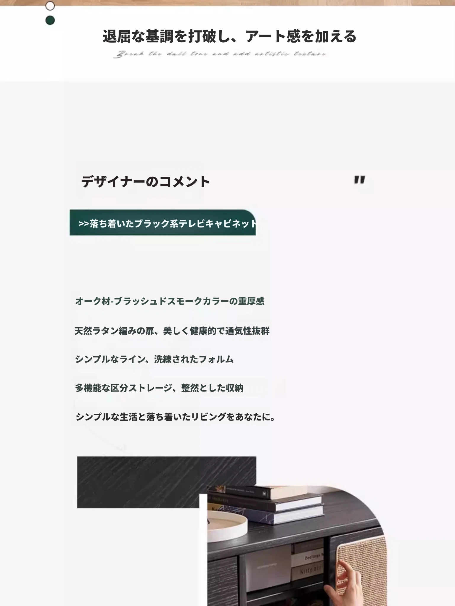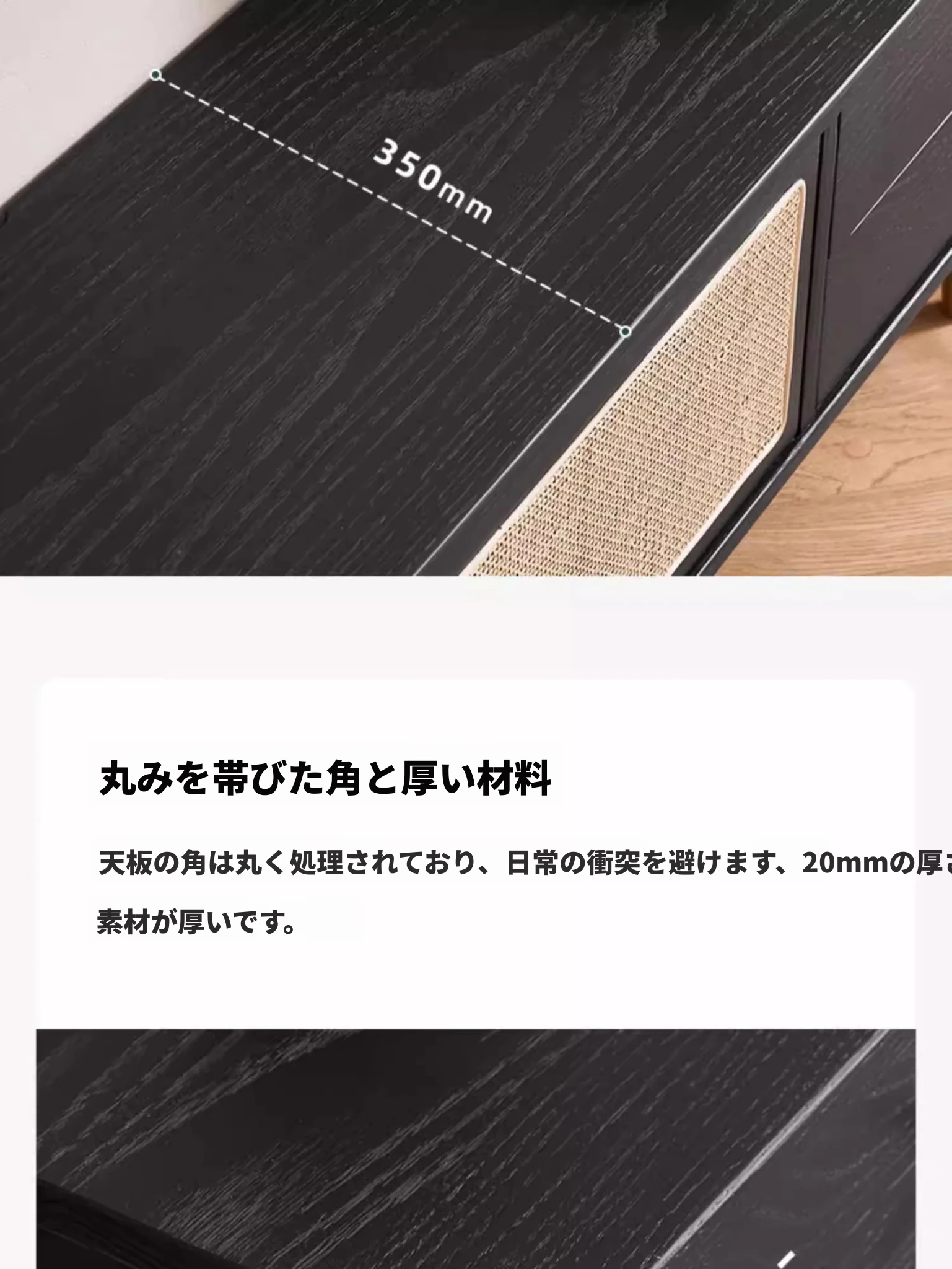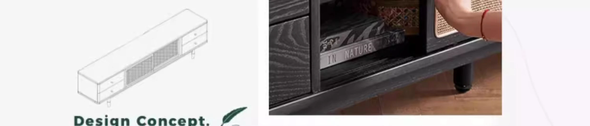 オーガニックバージン無垢材のテレビボード - ラグジュアリー感あふれる小型リビングにぴったりなオーク&ラタンの収納キャビネット。洗練されたデザインで、スタイリッシュにお部屋を彩ります。収納力も抜群!