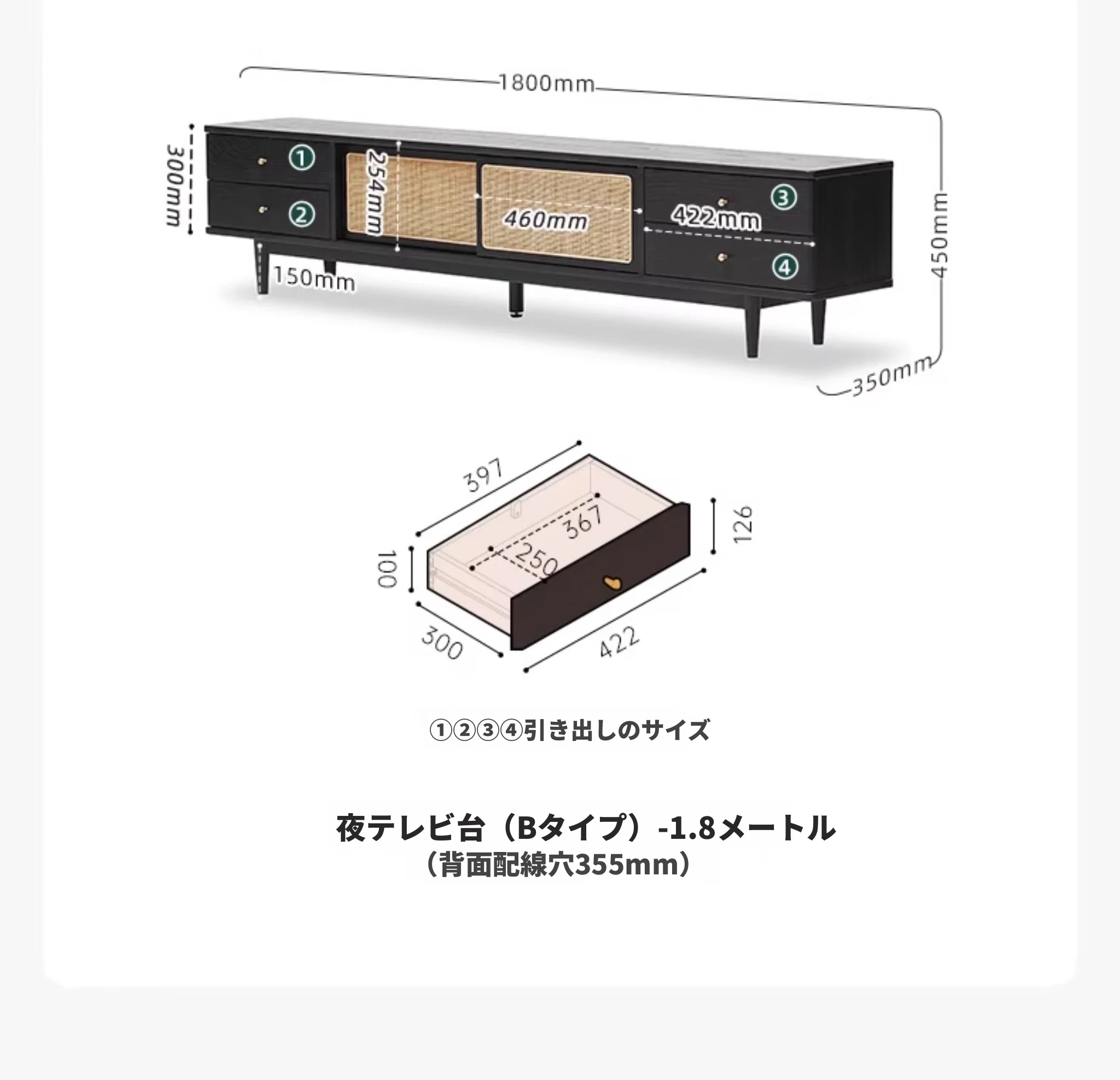 スモークカラー-1.8メートルテレビキャビネット(1800*350*450mm)