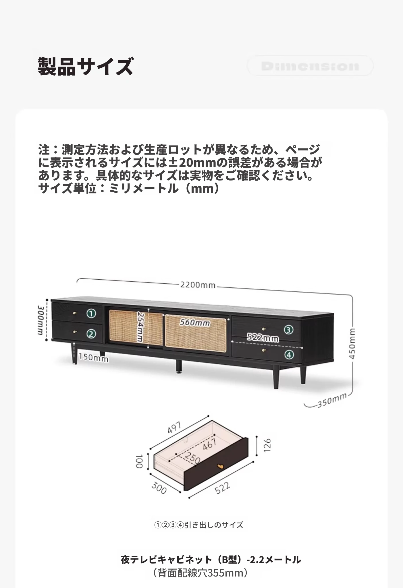 スモークカラー-2.2メートルテレビキャビネット(2200*350*450mm)