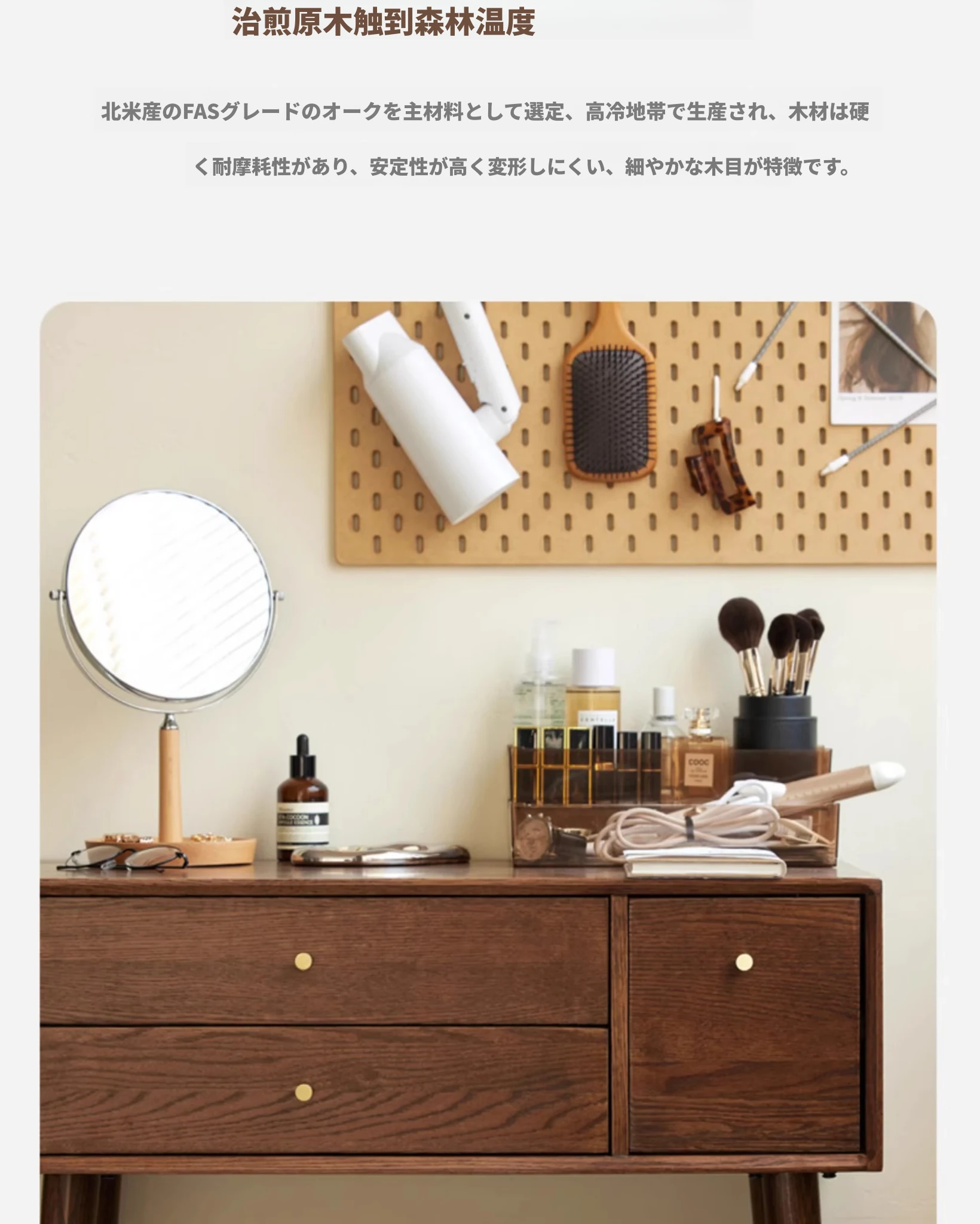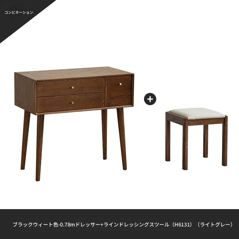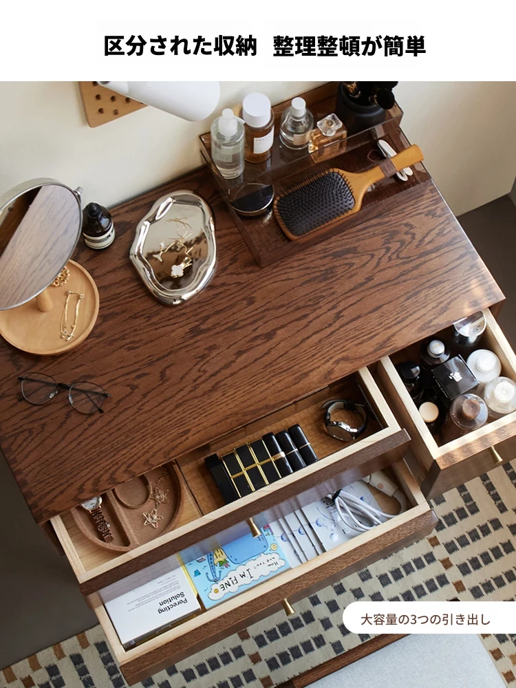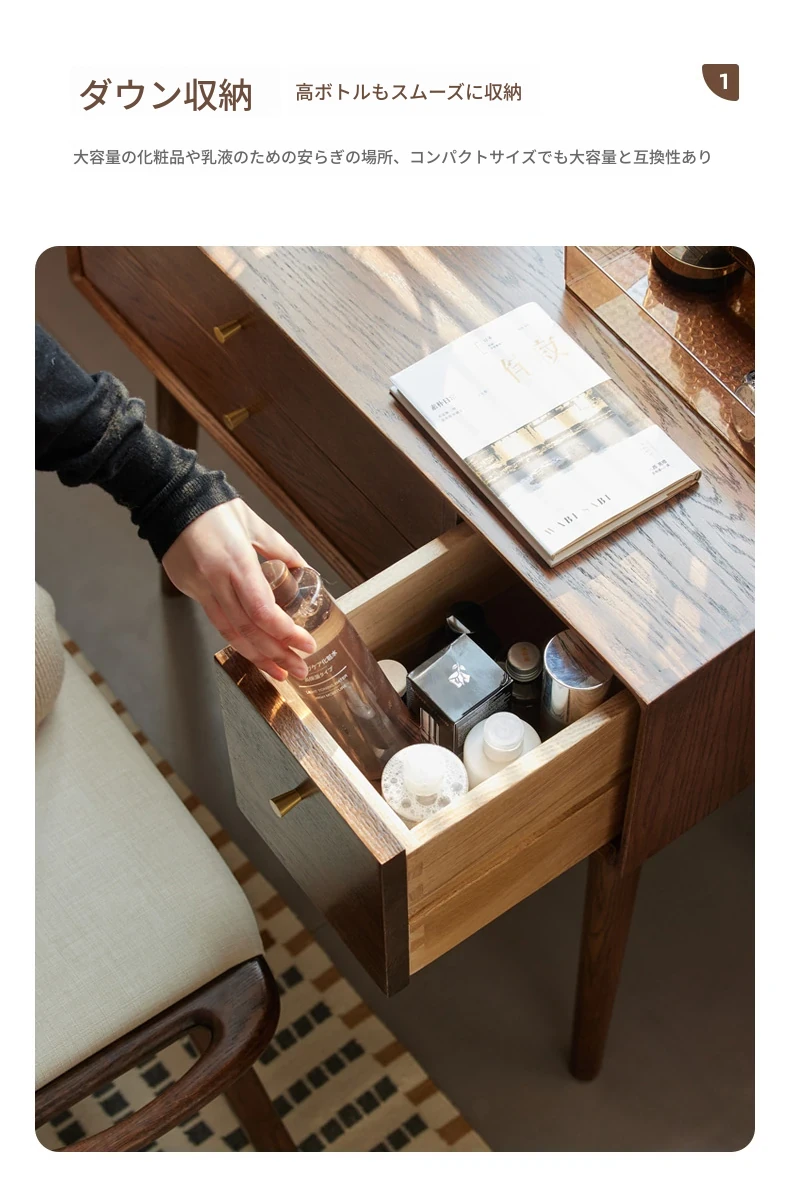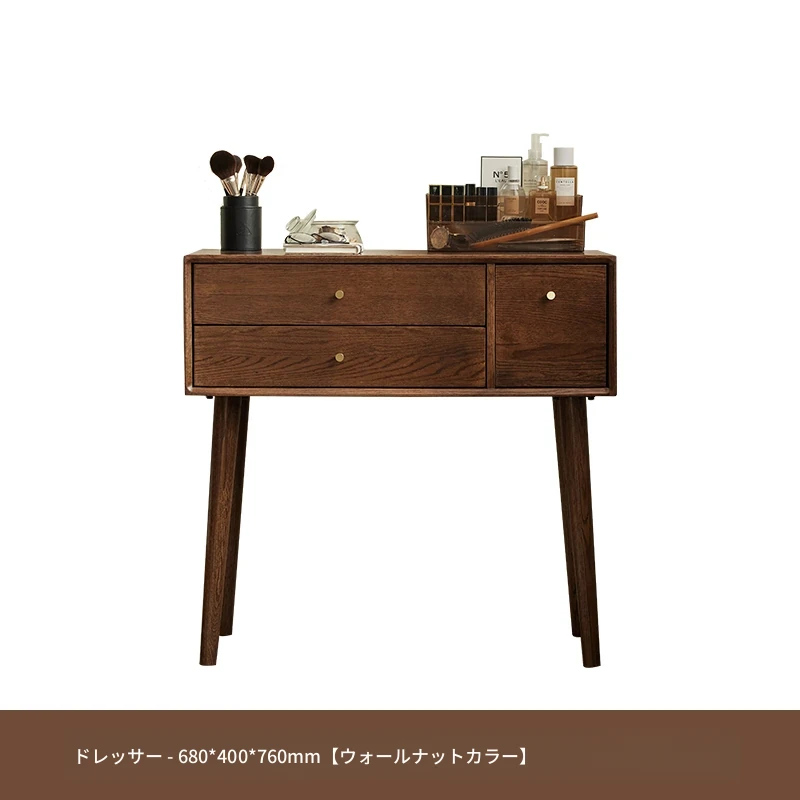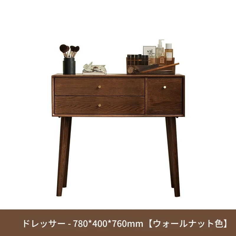 オリジナル無垢材化粧台|北欧スタイルのコンパクトデザイン|収納付きで使い勝手抜群|小さなお部屋にぴったりなオーク製ドレッサー兼デスク【美しい仕上げで毎日のメイクアップが楽しくなる】