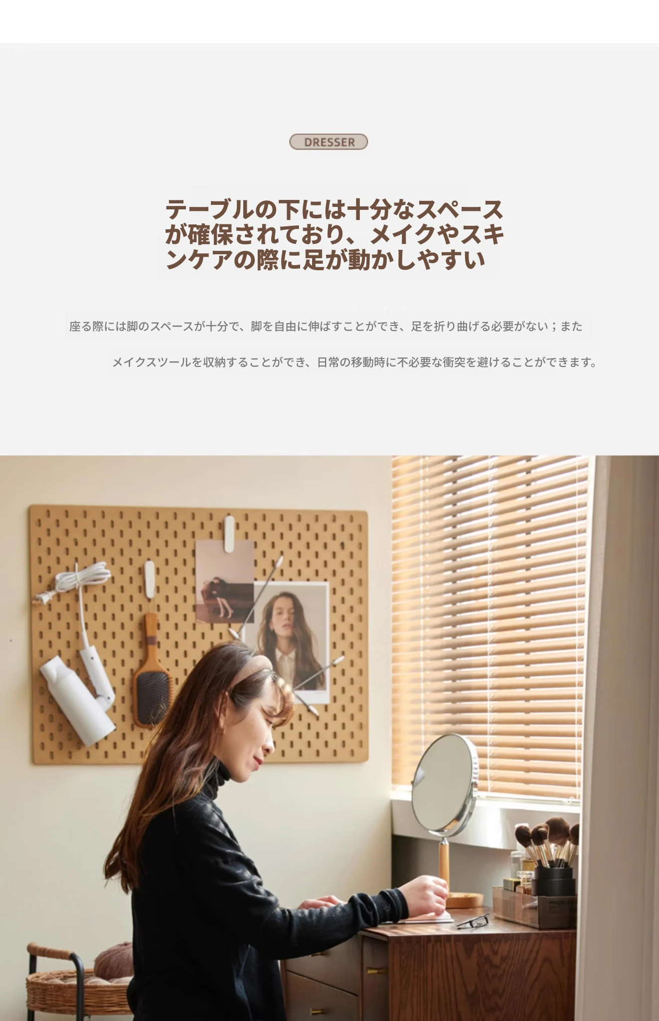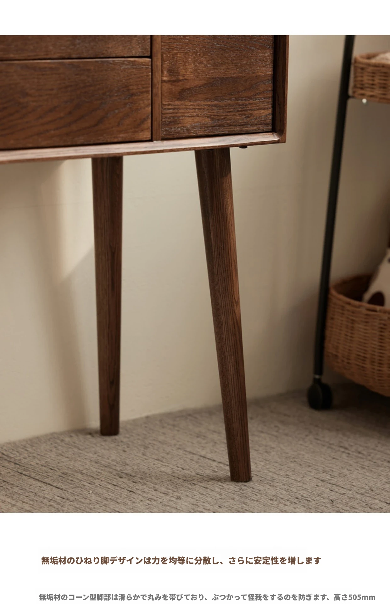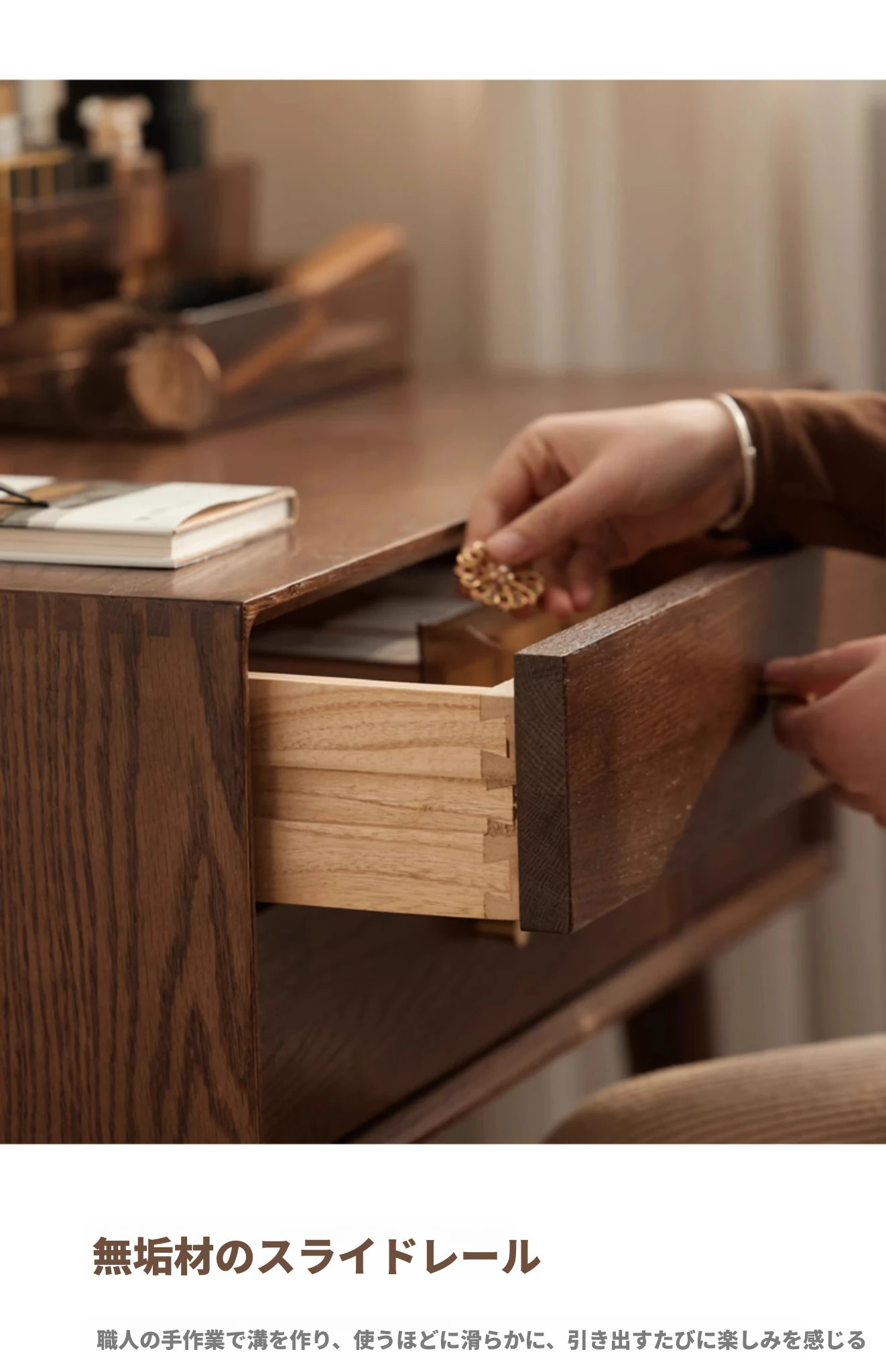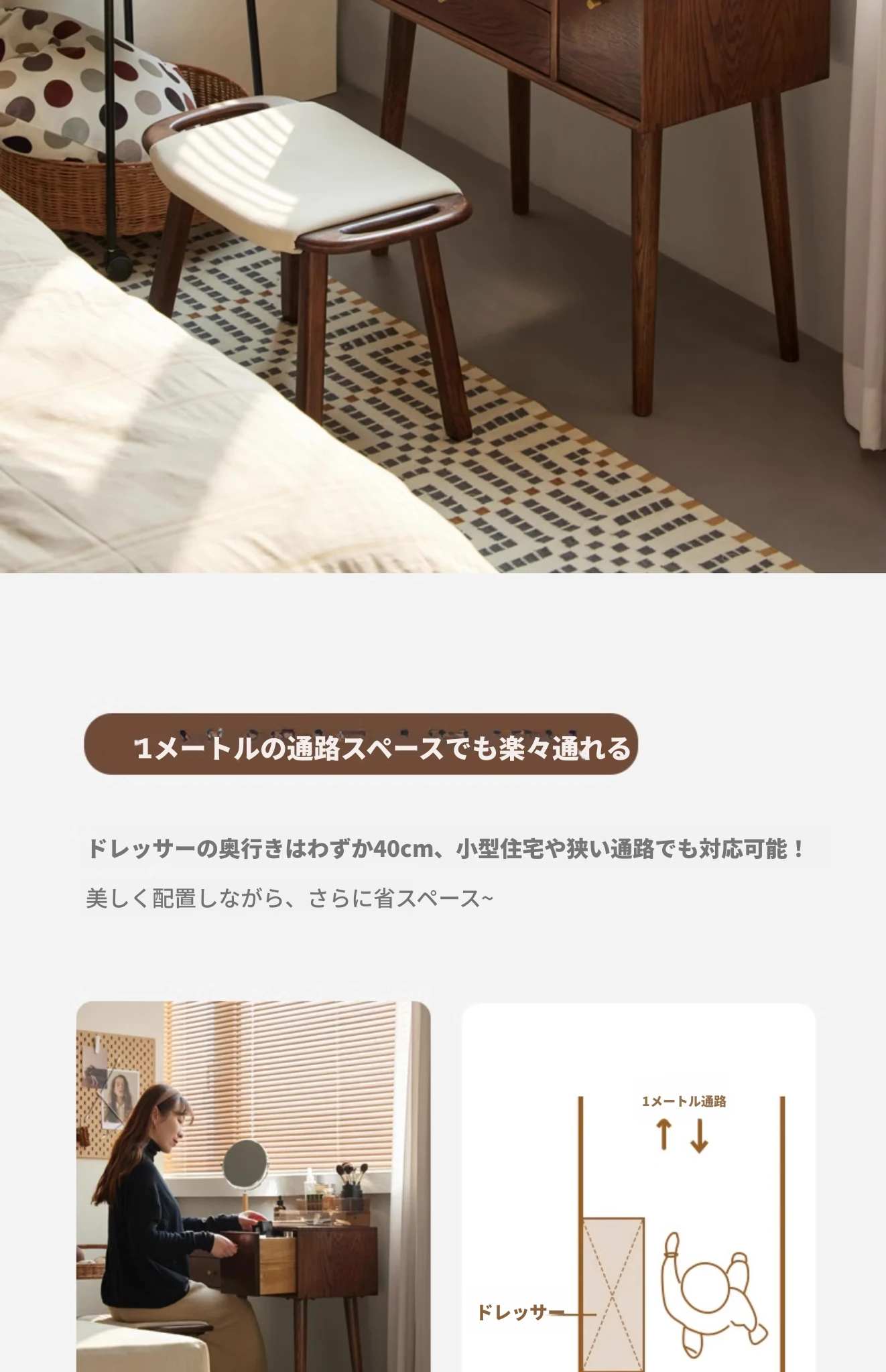 オリジナル無垢材化粧台|北欧スタイルのコンパクトデザイン|収納付きで使い勝手抜群|小さなお部屋にぴったりなオーク製ドレッサー兼デスク【美しい仕上げで毎日のメイクアップが楽しくなる】