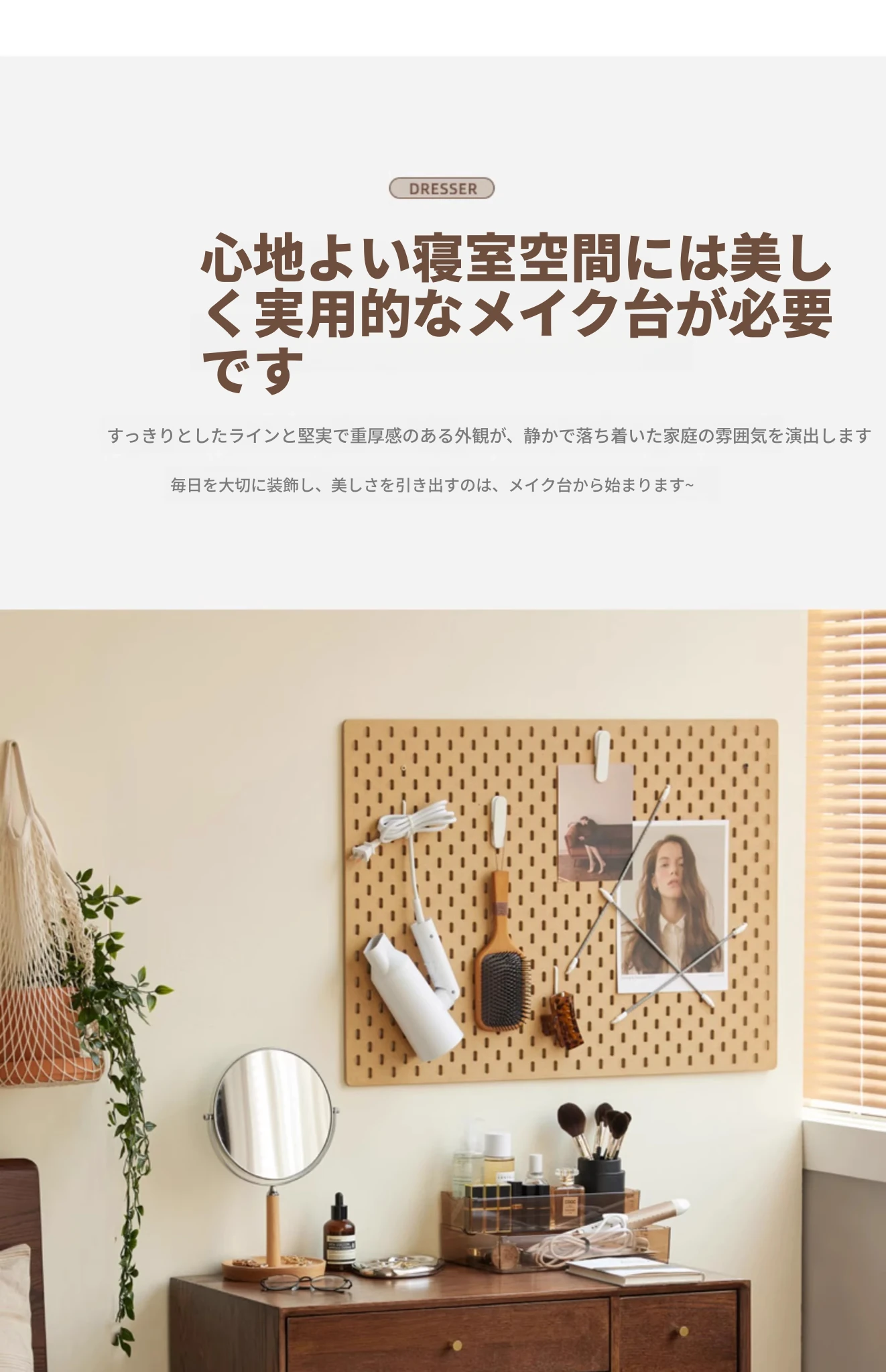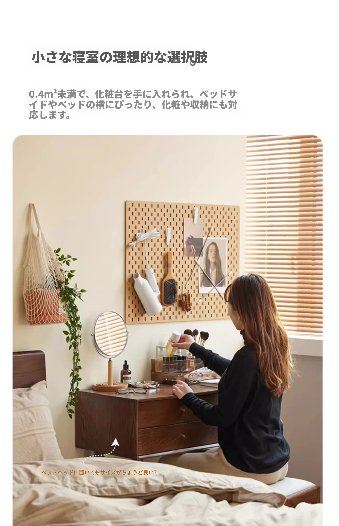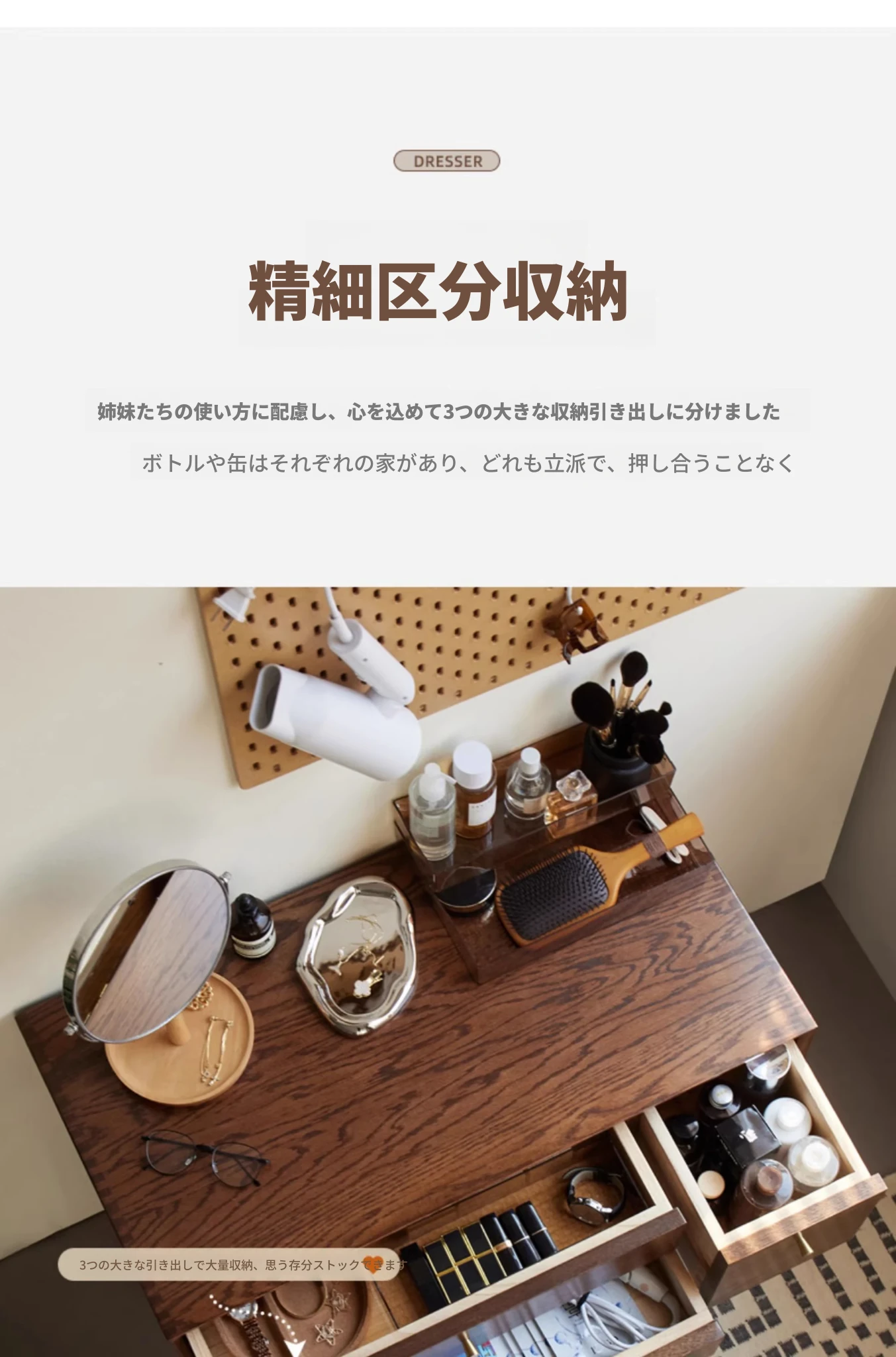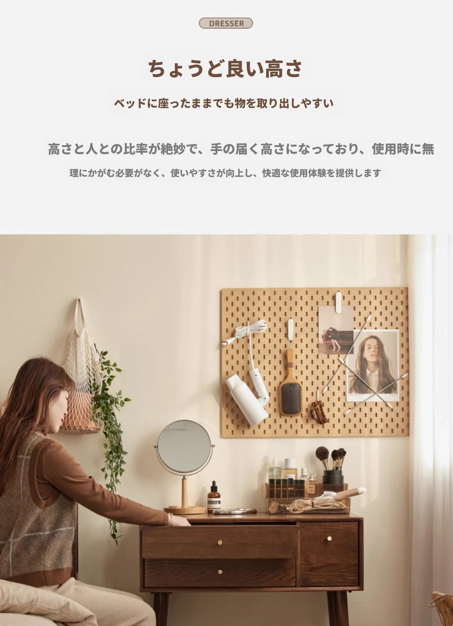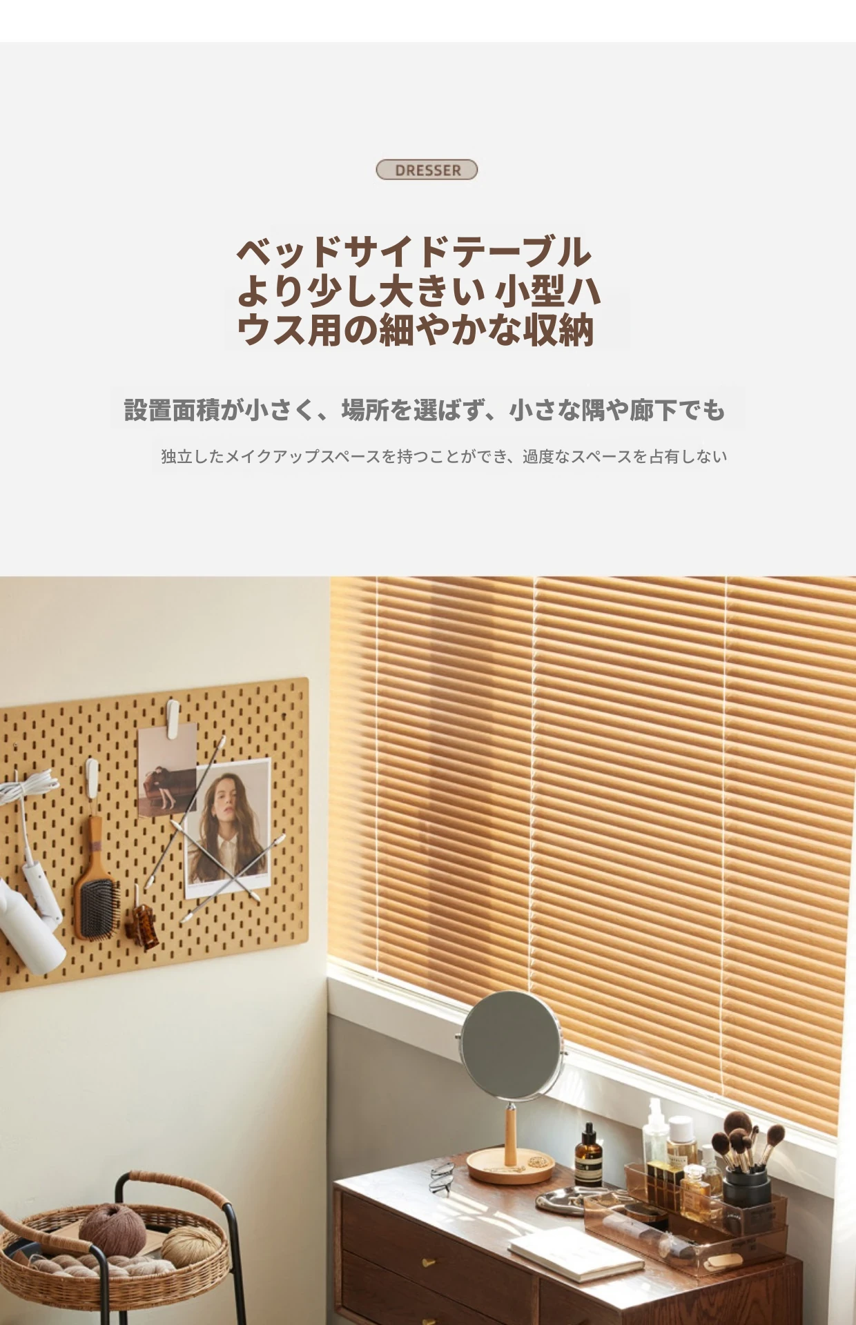 オリジナル無垢材化粧台|北欧スタイルのコンパクトデザイン|収納付きで使い勝手抜群|小さなお部屋にぴったりなオーク製ドレッサー兼デスク【美しい仕上げで毎日のメイクアップが楽しくなる】