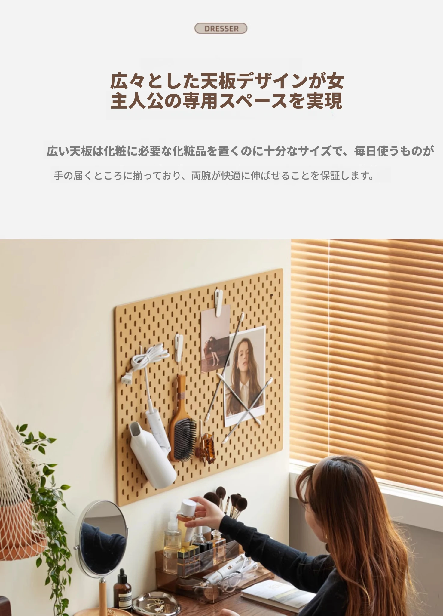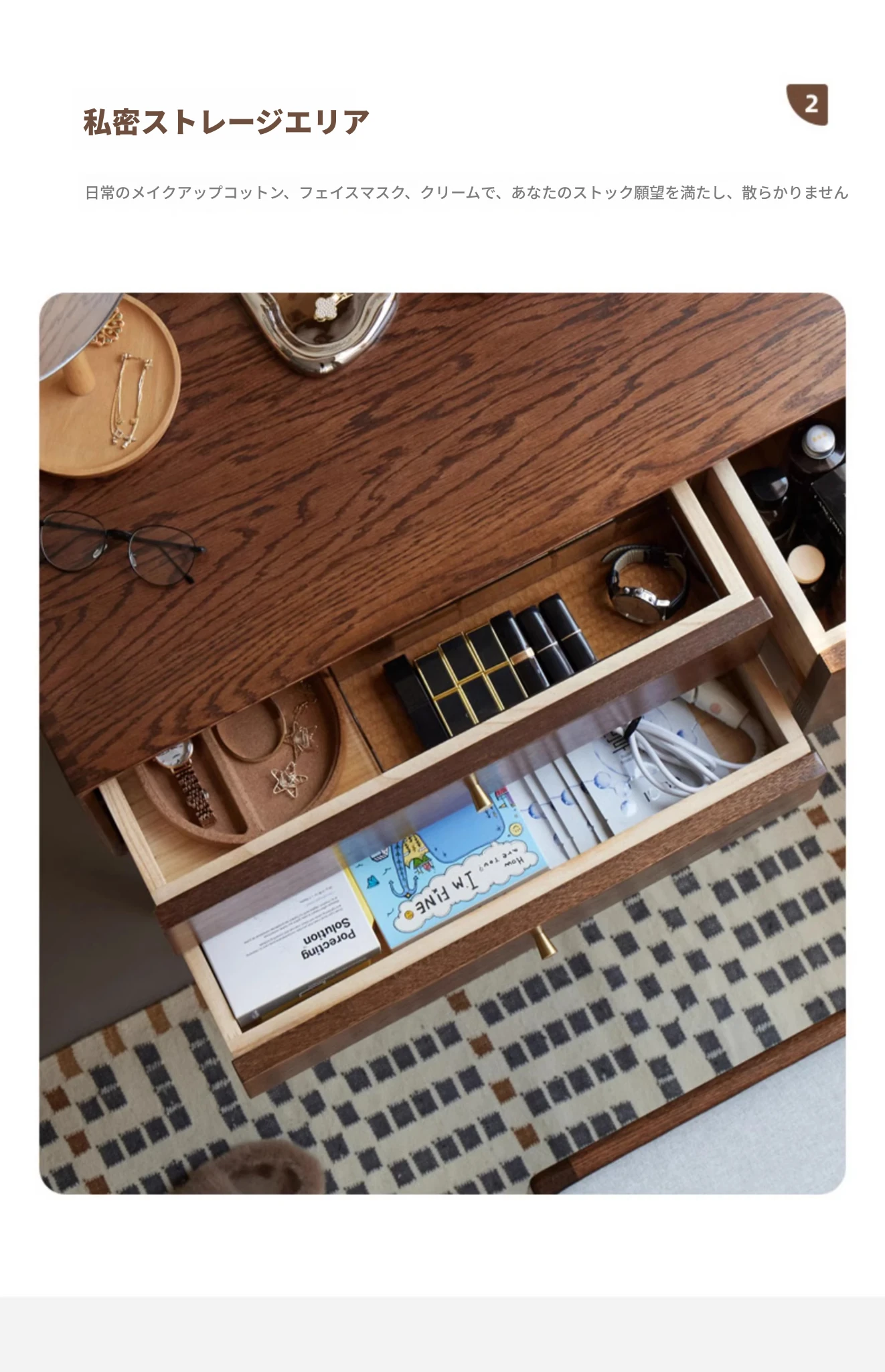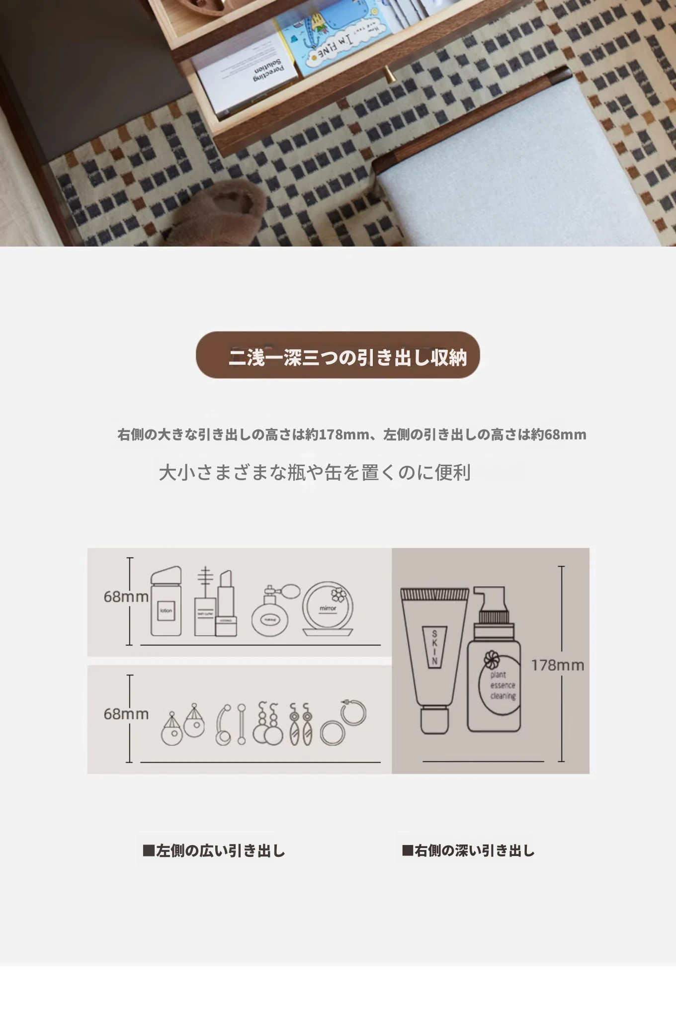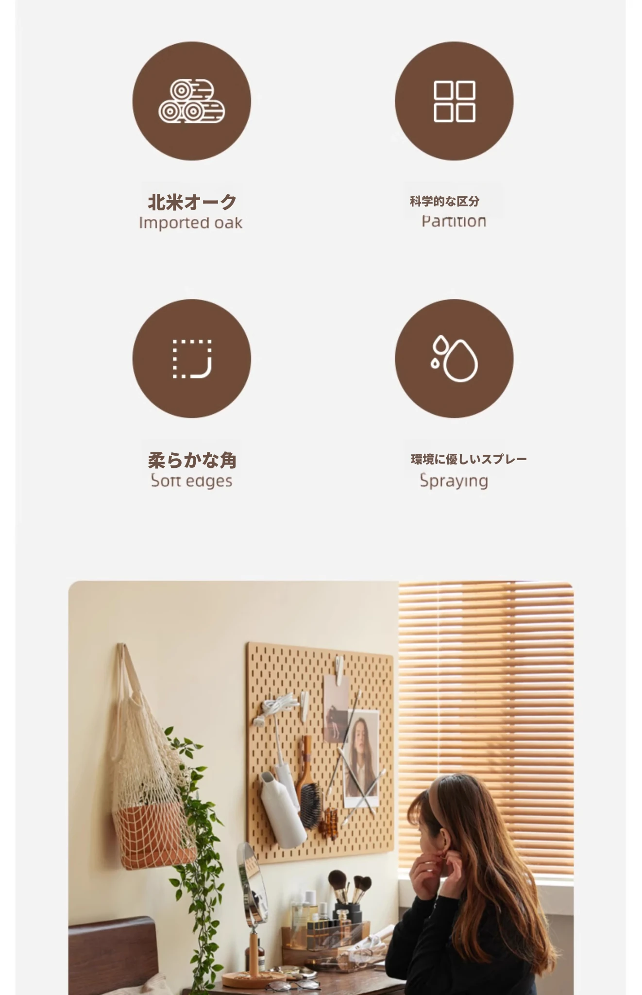オリジナル無垢材化粧台|北欧スタイルのコンパクトデザイン|収納付きで使い勝手抜群|小さなお部屋にぴったりなオーク製ドレッサー兼デスク【美しい仕上げで毎日のメイクアップが楽しくなる】