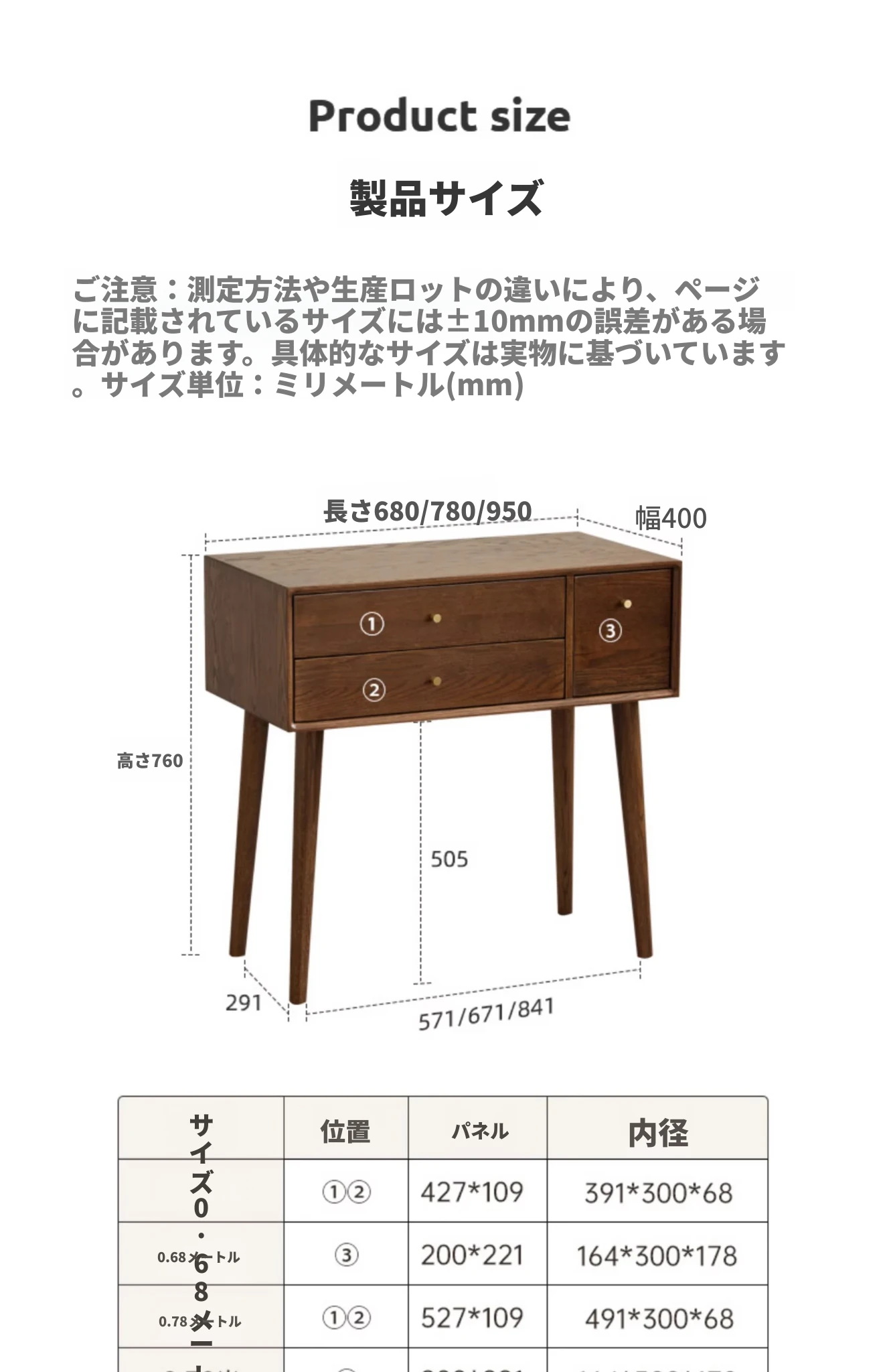 【ウォルナット色0.68mドレッサー 680*400*760mm