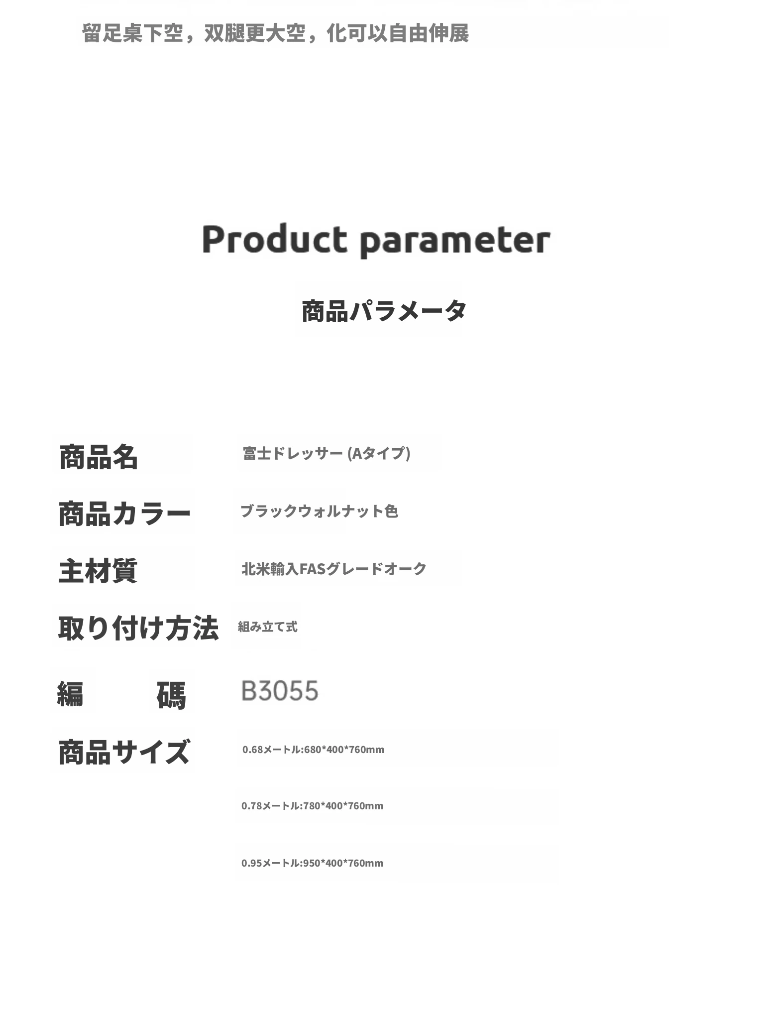 ウォルナット色0.78mドレッサー 780*400*760mm