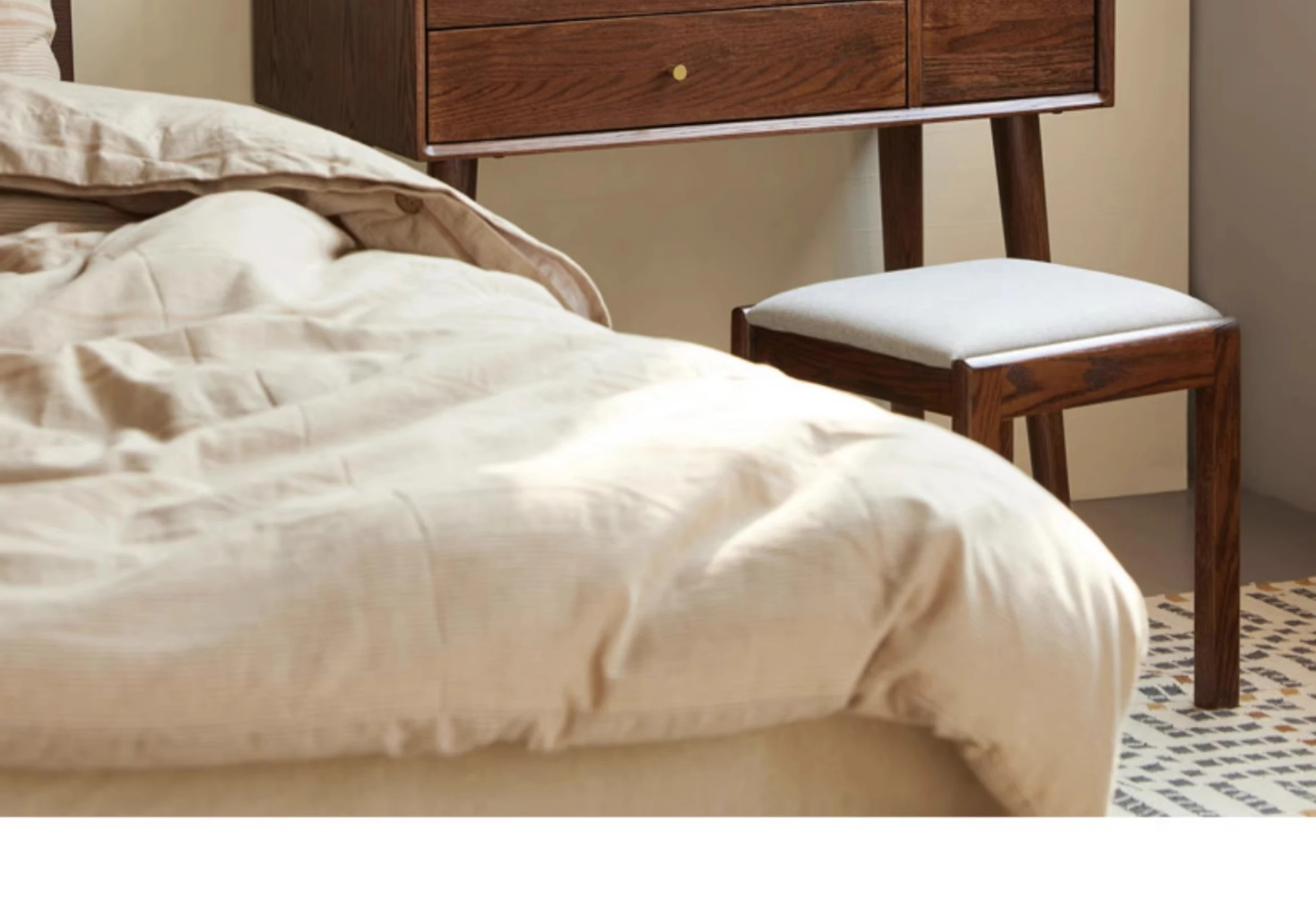 ウォルナット色-0.78mドレッサー+ドレッシングスツール(H6131)(ライトグレー)