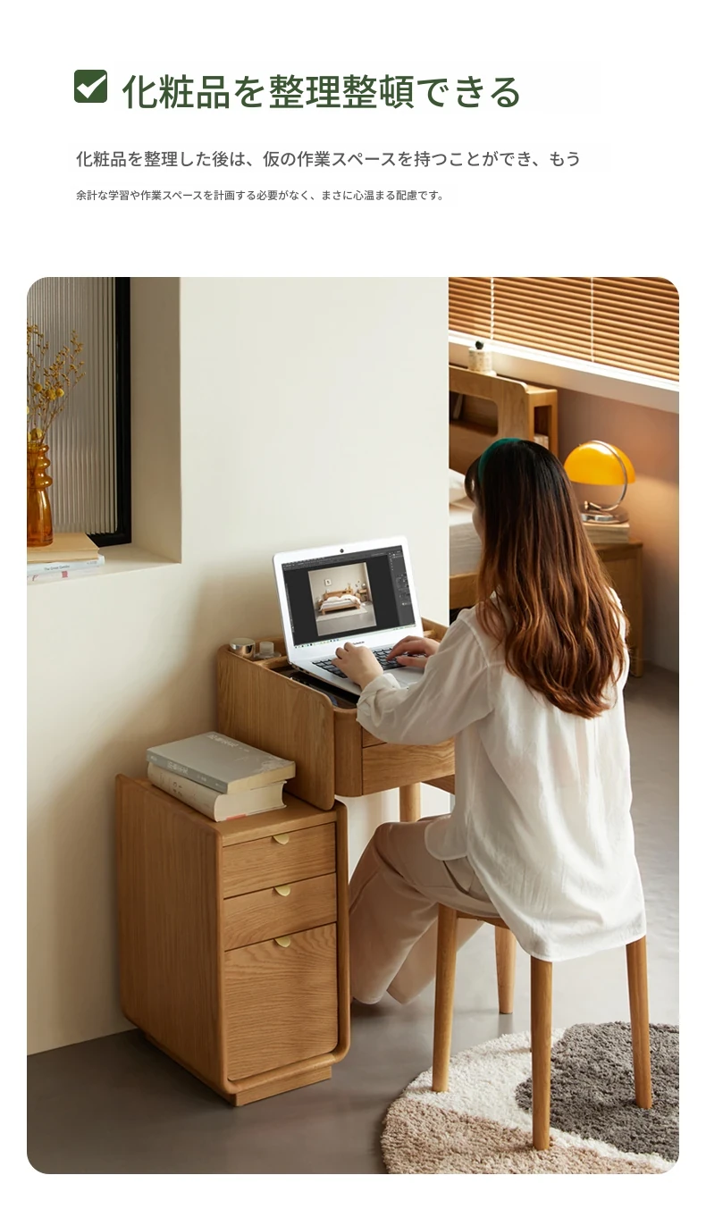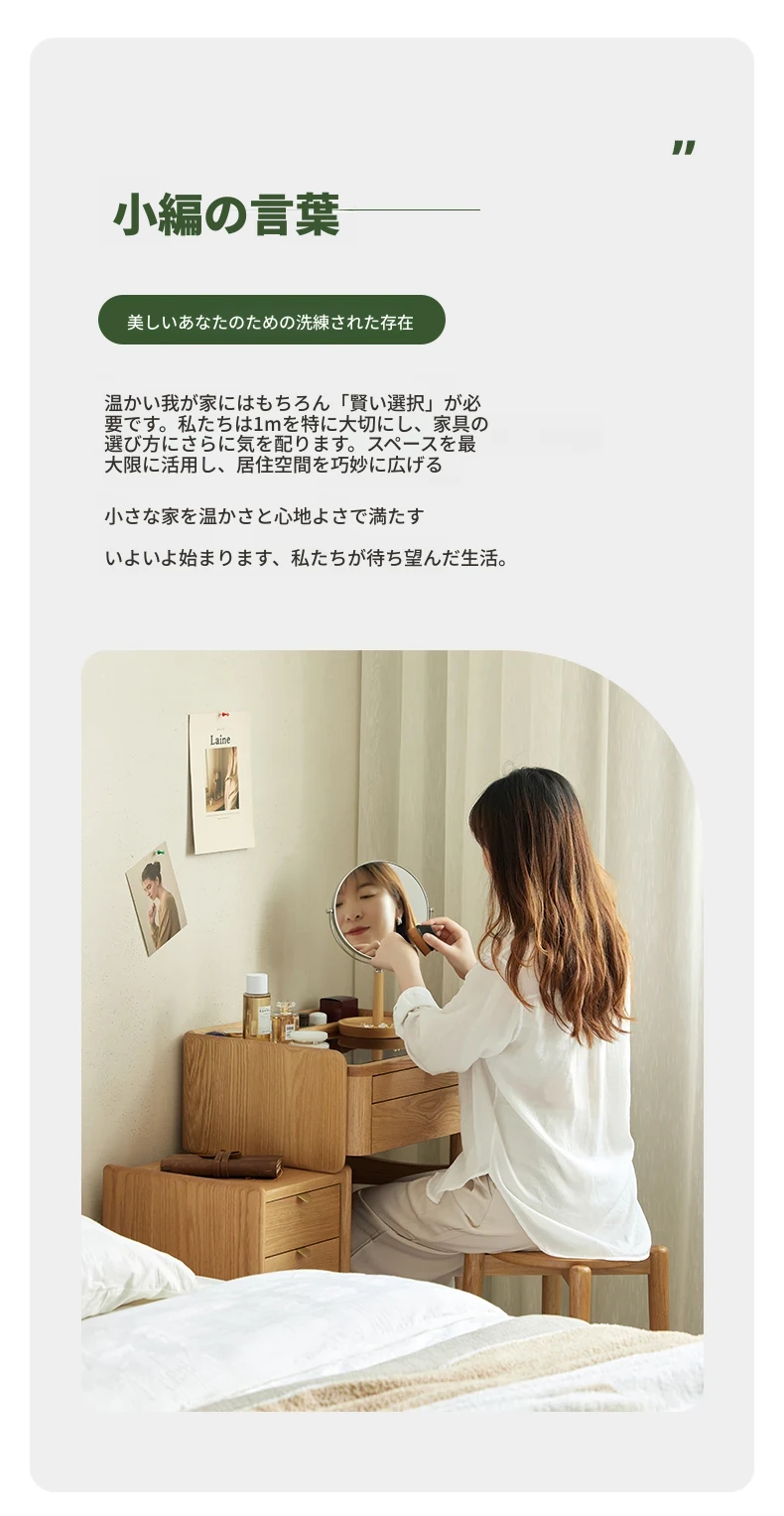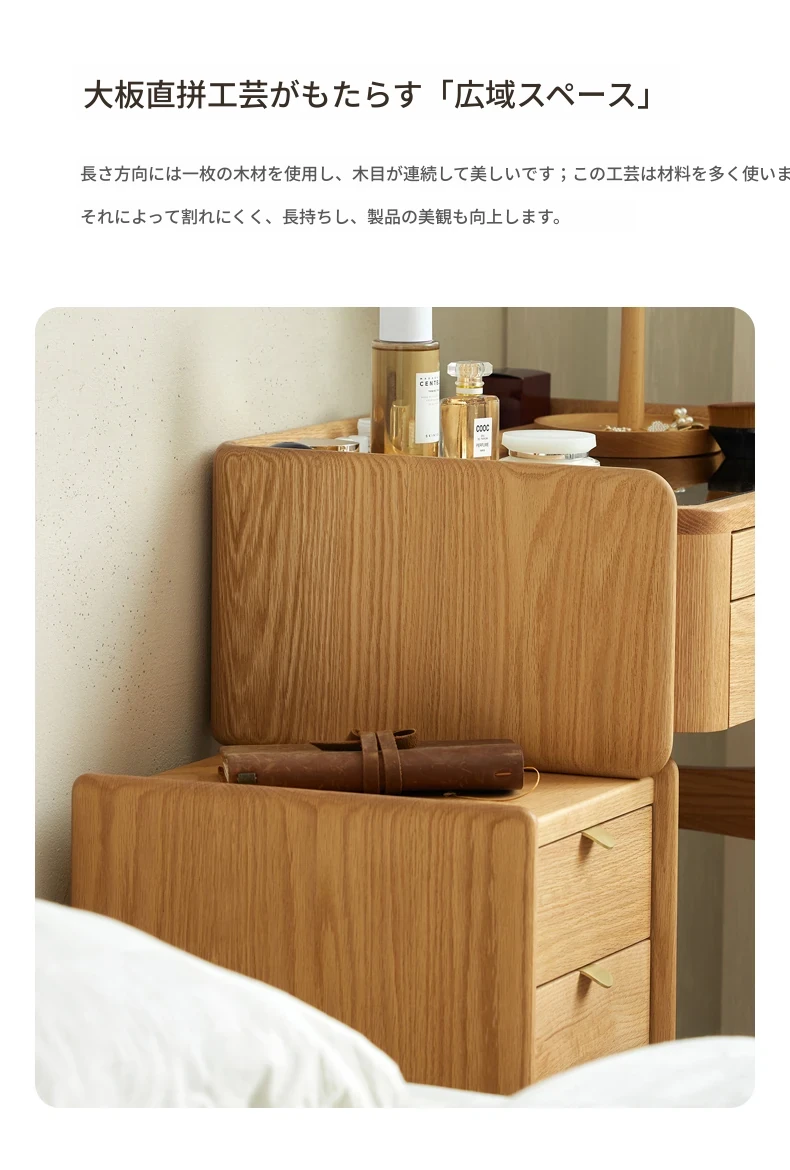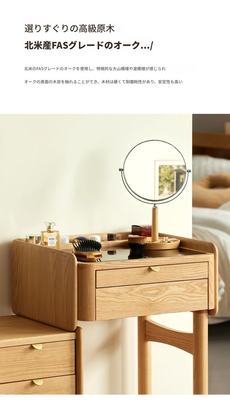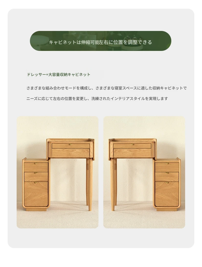 原木風デザインの実木ドレッサー|伸縮機能付きのコンパクト収納キャビネット|オーク材使用|おしゃれで機能的な化粧台一体型|あなたの寝室をもっと素敵に!