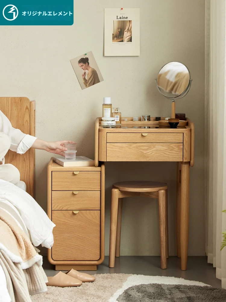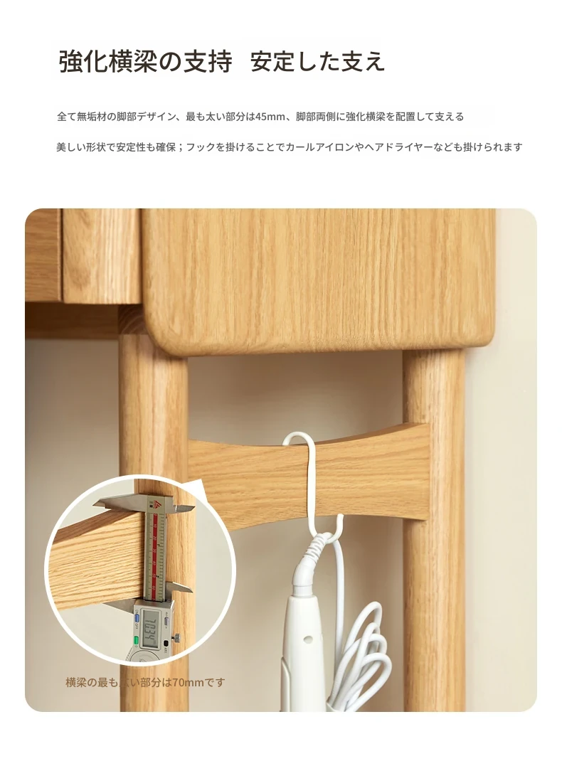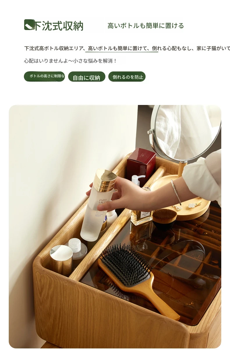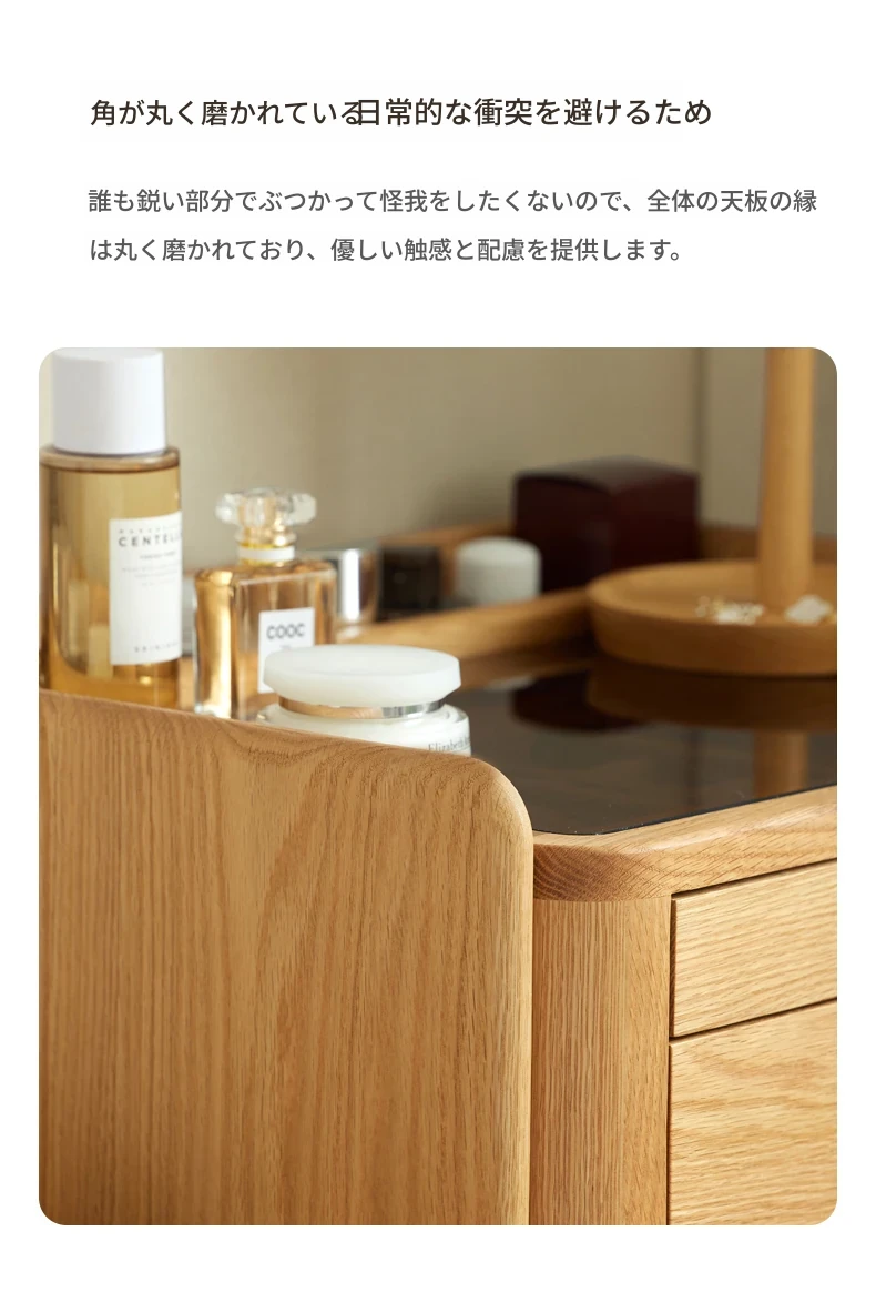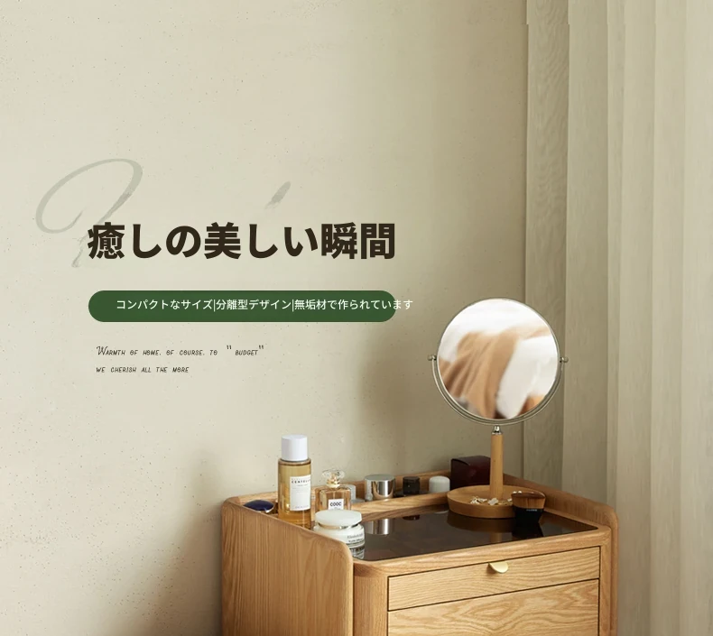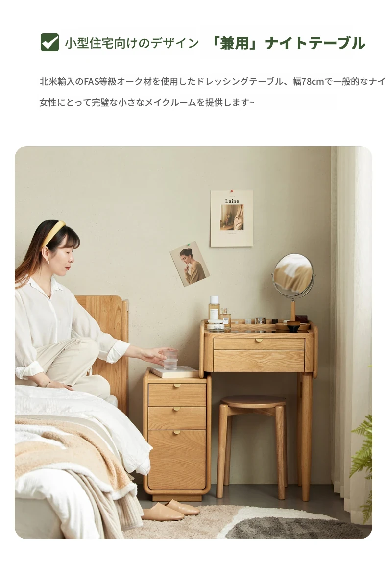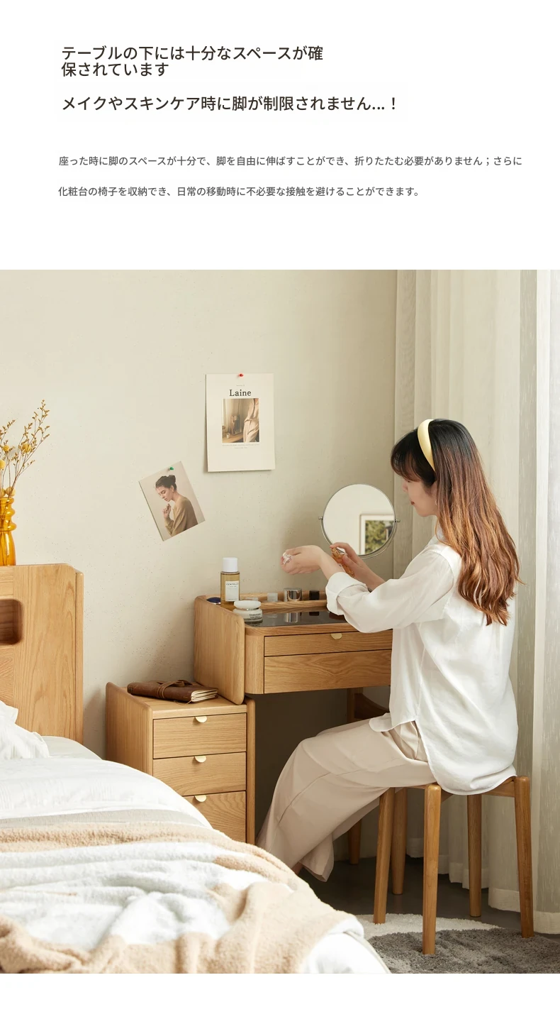 原木風デザインの実木ドレッサー|伸縮機能付きのコンパクト収納キャビネット|オーク材使用|おしゃれで機能的な化粧台一体型|あなたの寝室をもっと素敵に!