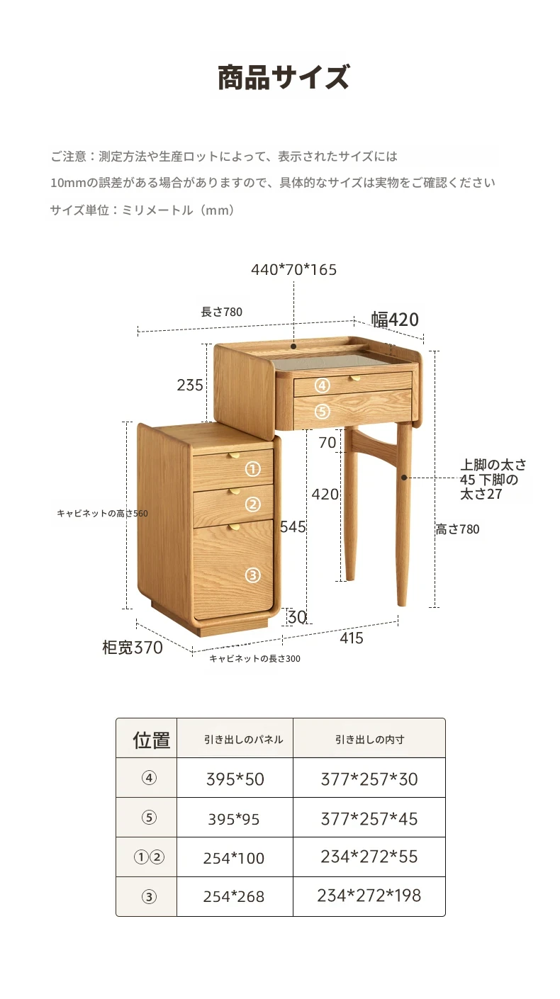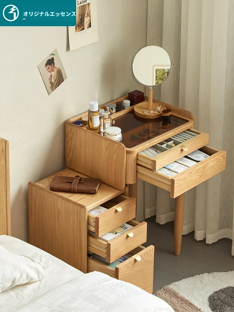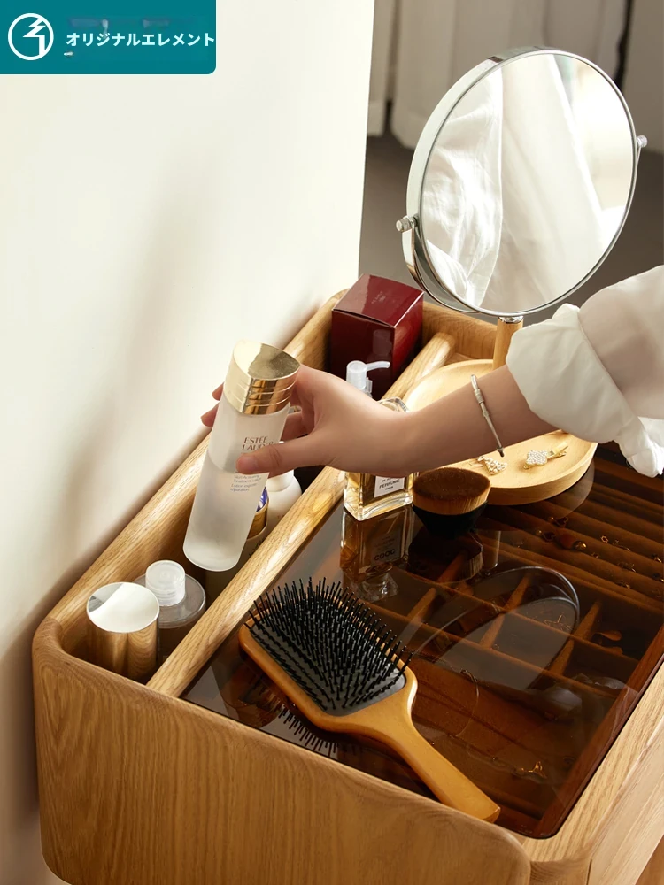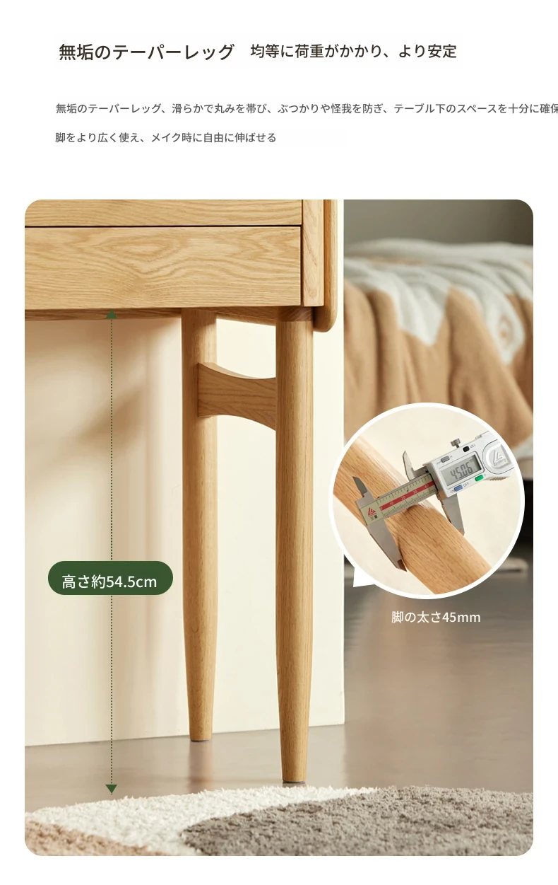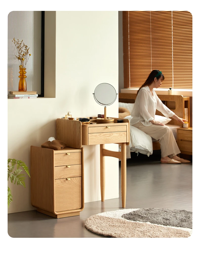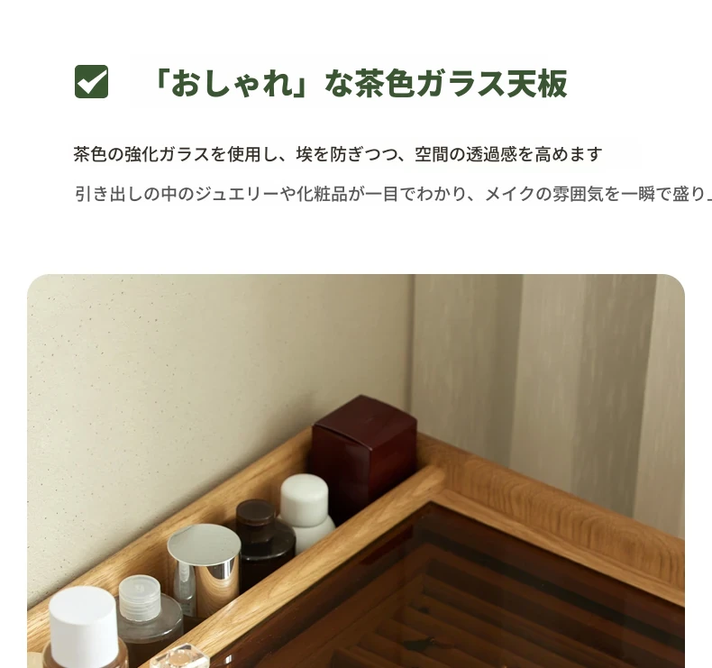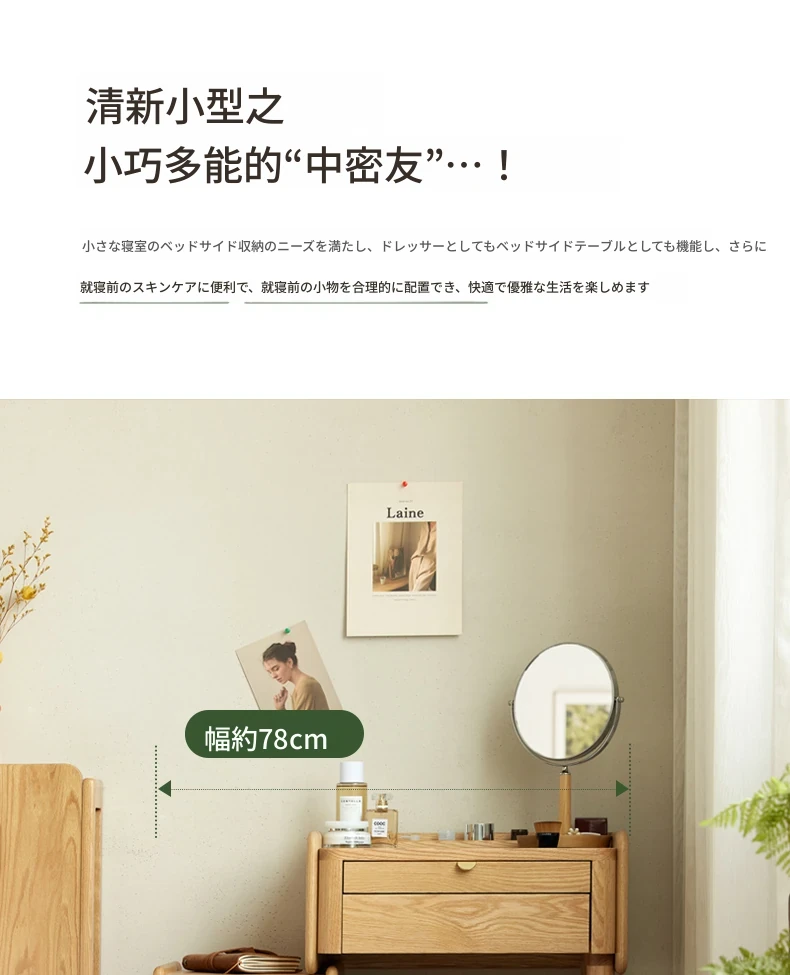 原木風デザインの実木ドレッサー|伸縮機能付きのコンパクト収納キャビネット|オーク材使用|おしゃれで機能的な化粧台一体型|あなたの寝室をもっと素敵に!