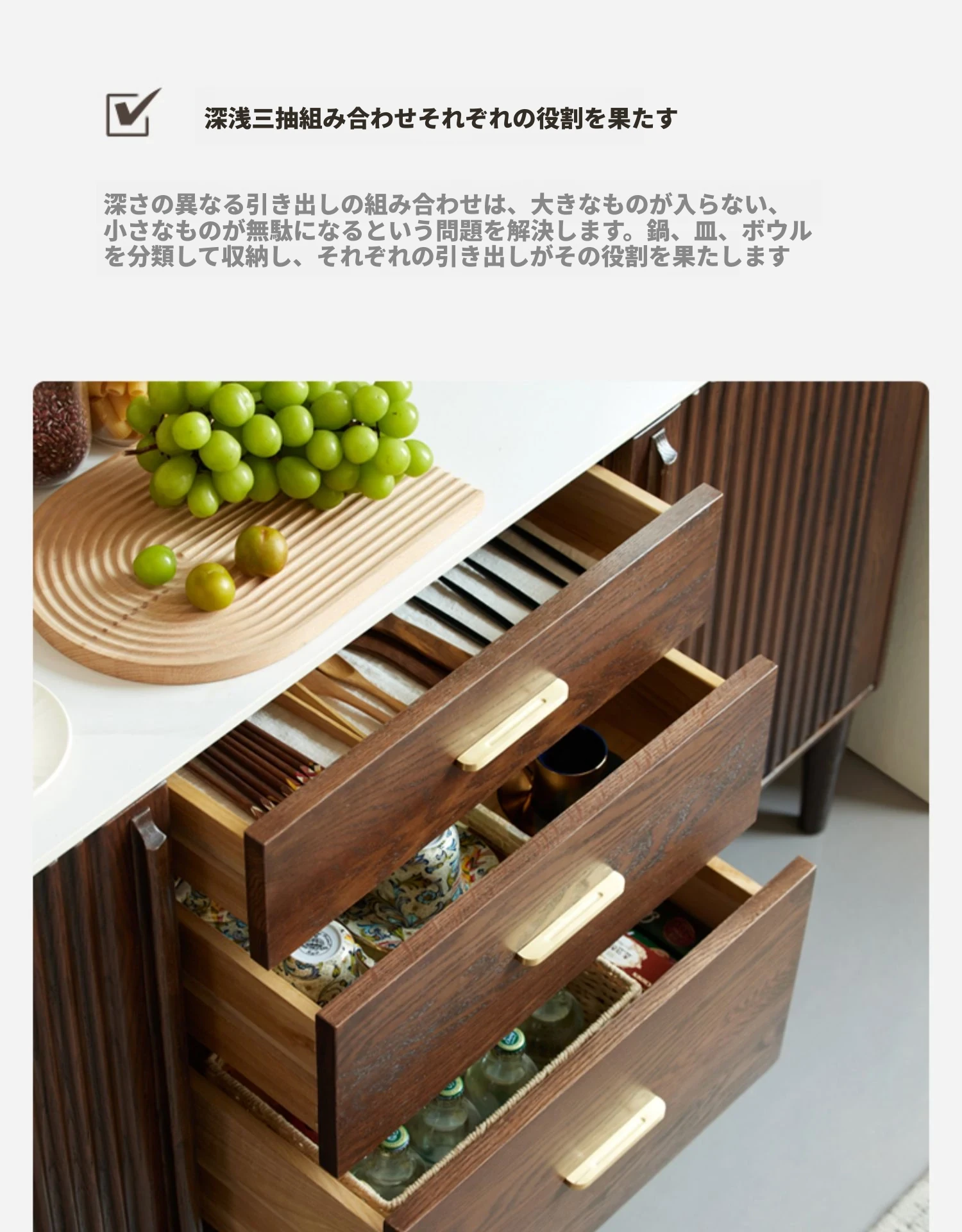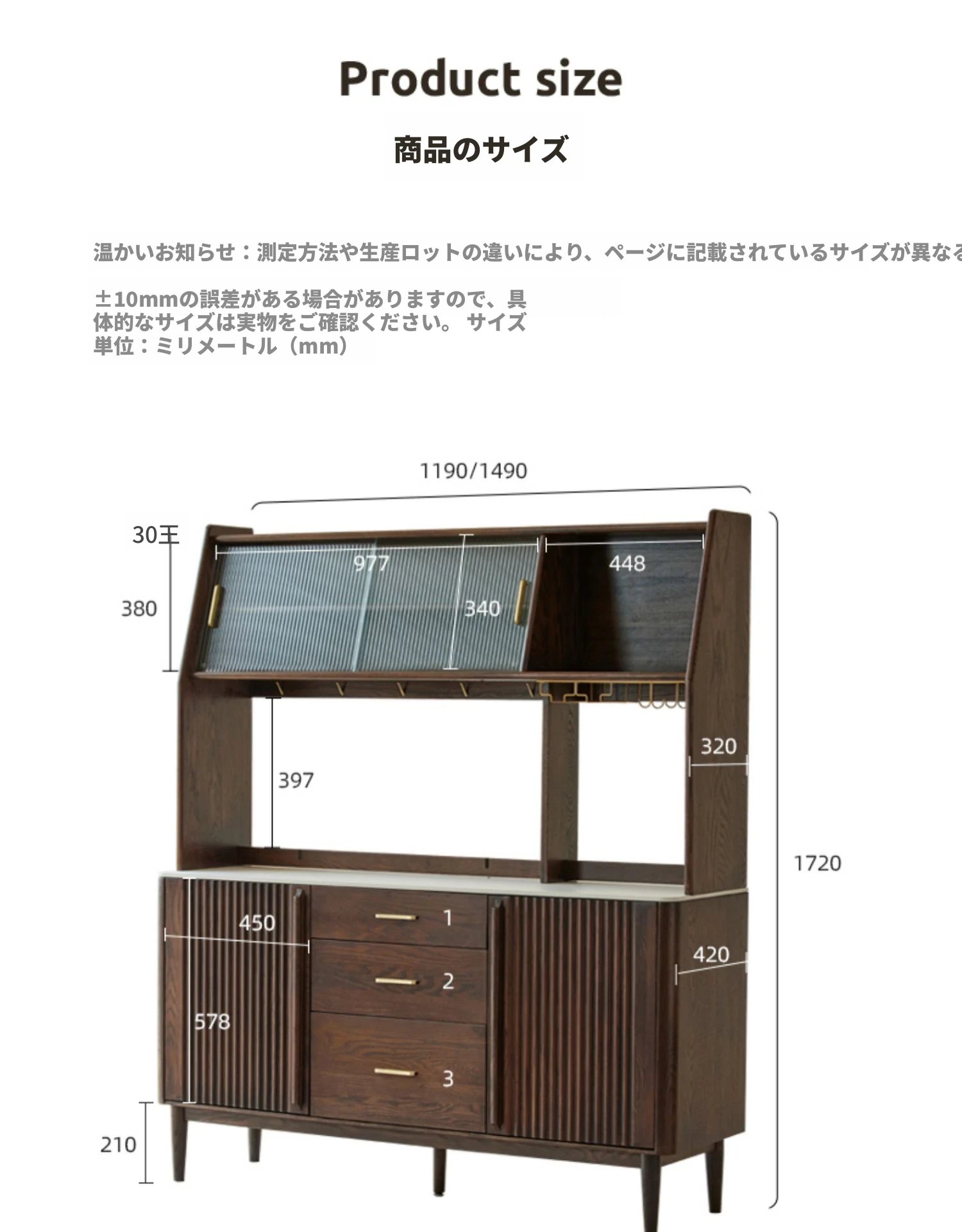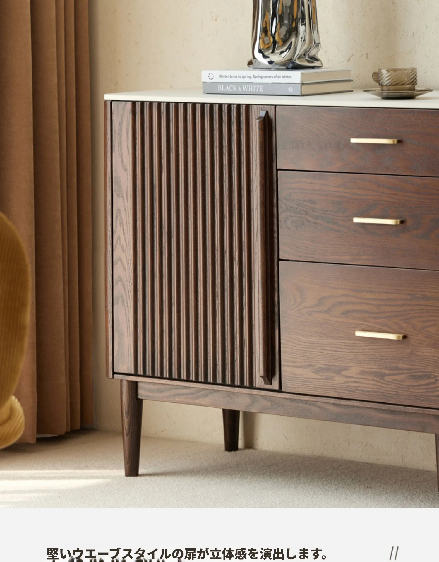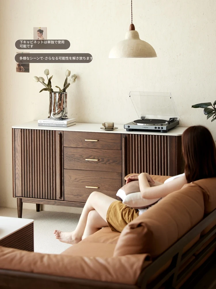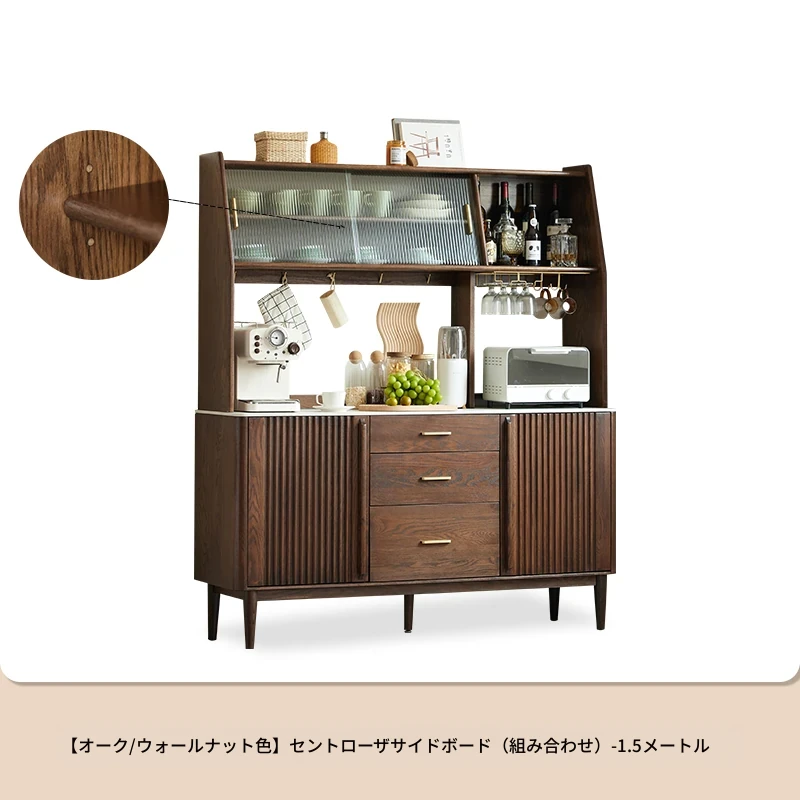 黒ウォールナット色-オーク1.5メートルサイドキャビネット(単体)1500*420*810mm