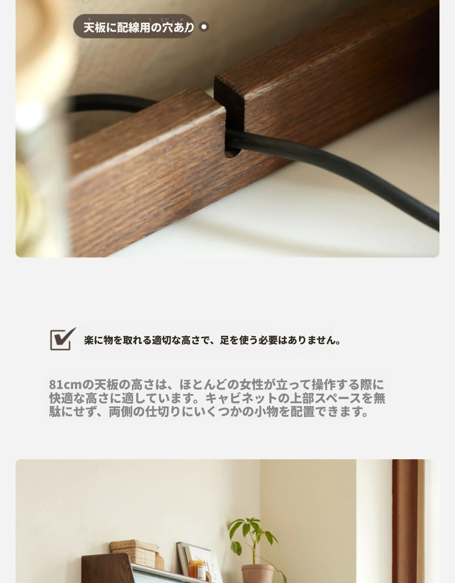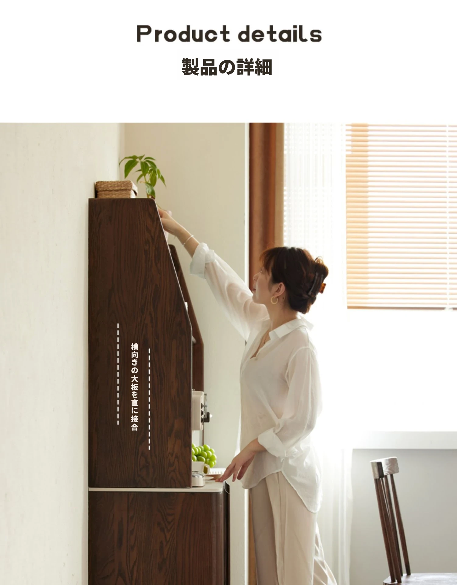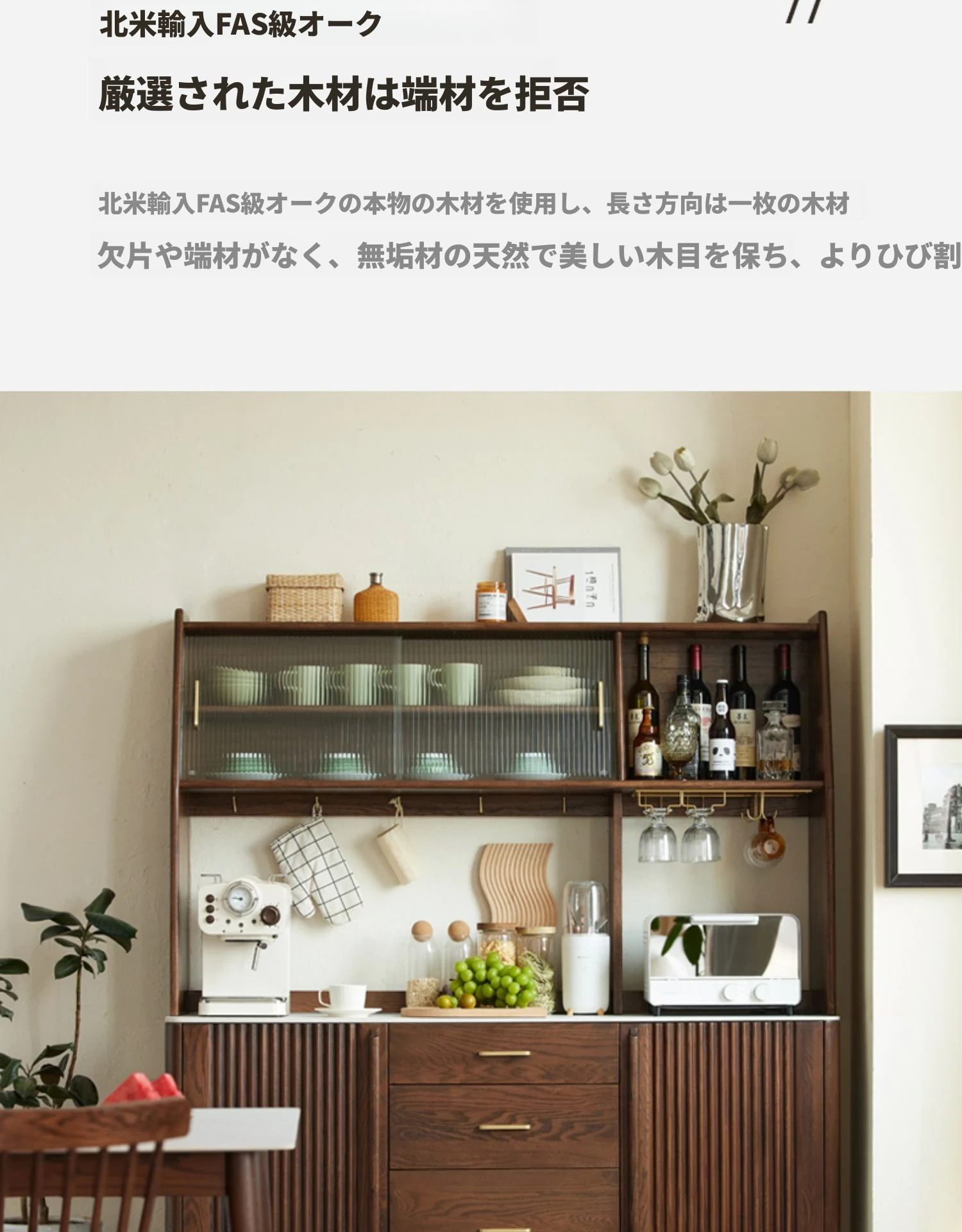 オリジナル無垢材使用!スタイリッシュな壁付け一体型ミニマル高棚キャビネット - 中古感漂うテーブルサイドキャビネット。小スペースに最適なオーク製収納棚で、あなたの生活空間をおしゃれに演出します。