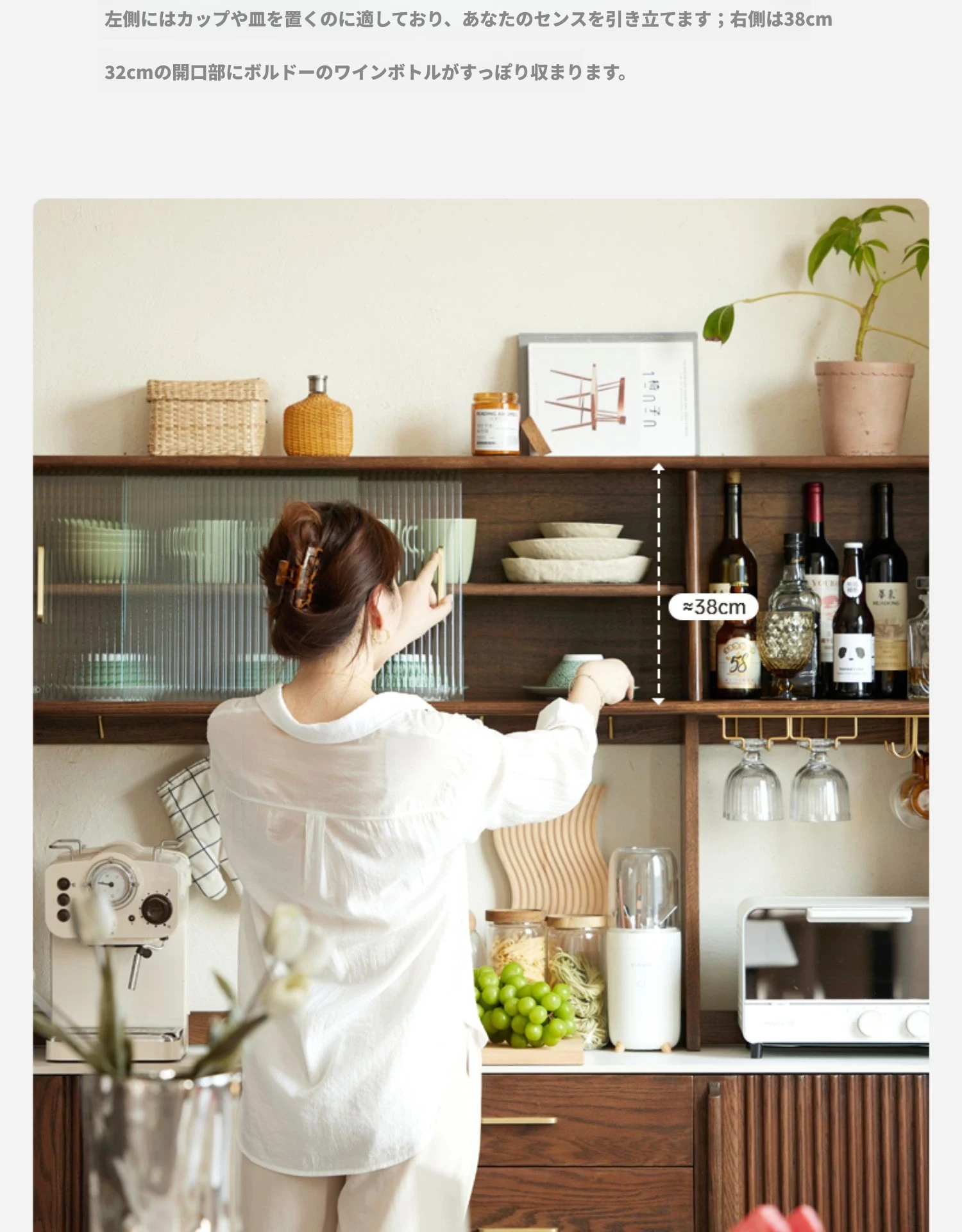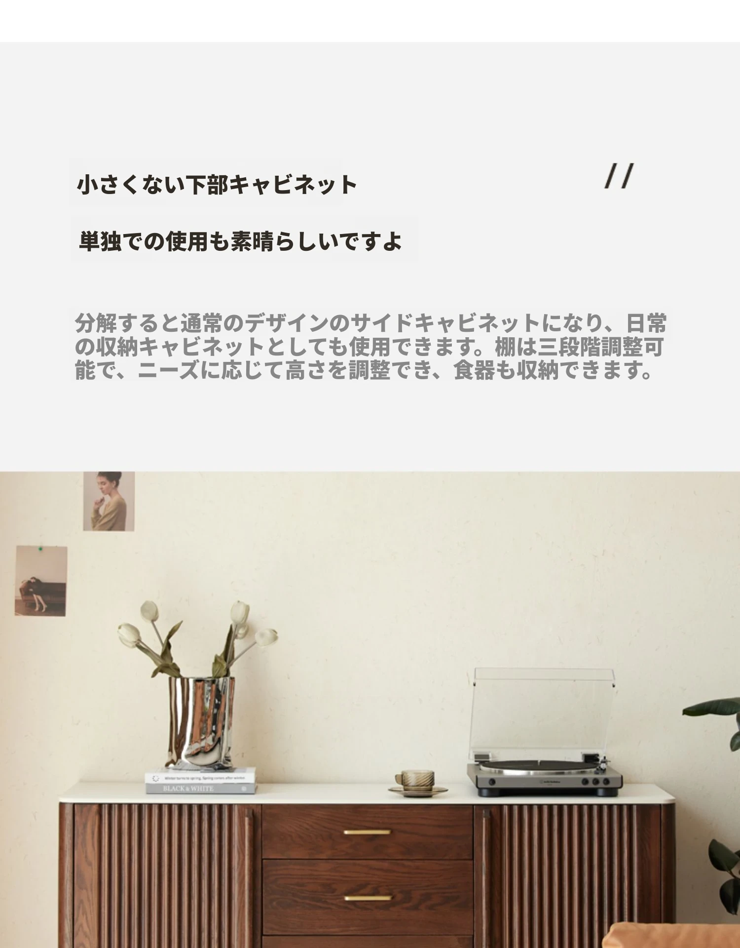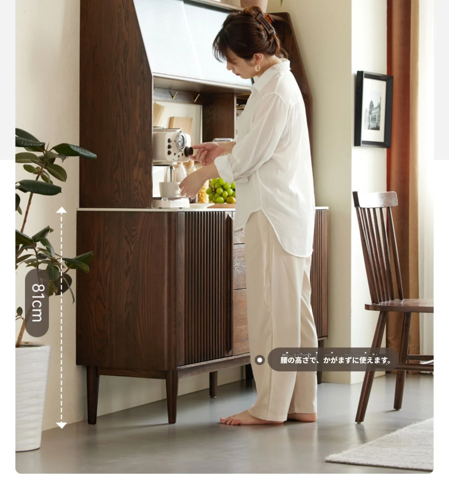 オリジナル無垢材使用!スタイリッシュな壁付け一体型ミニマル高棚キャビネット - 中古感漂うテーブルサイドキャビネット。小スペースに最適なオーク製収納棚で、あなたの生活空間をおしゃれに演出します。