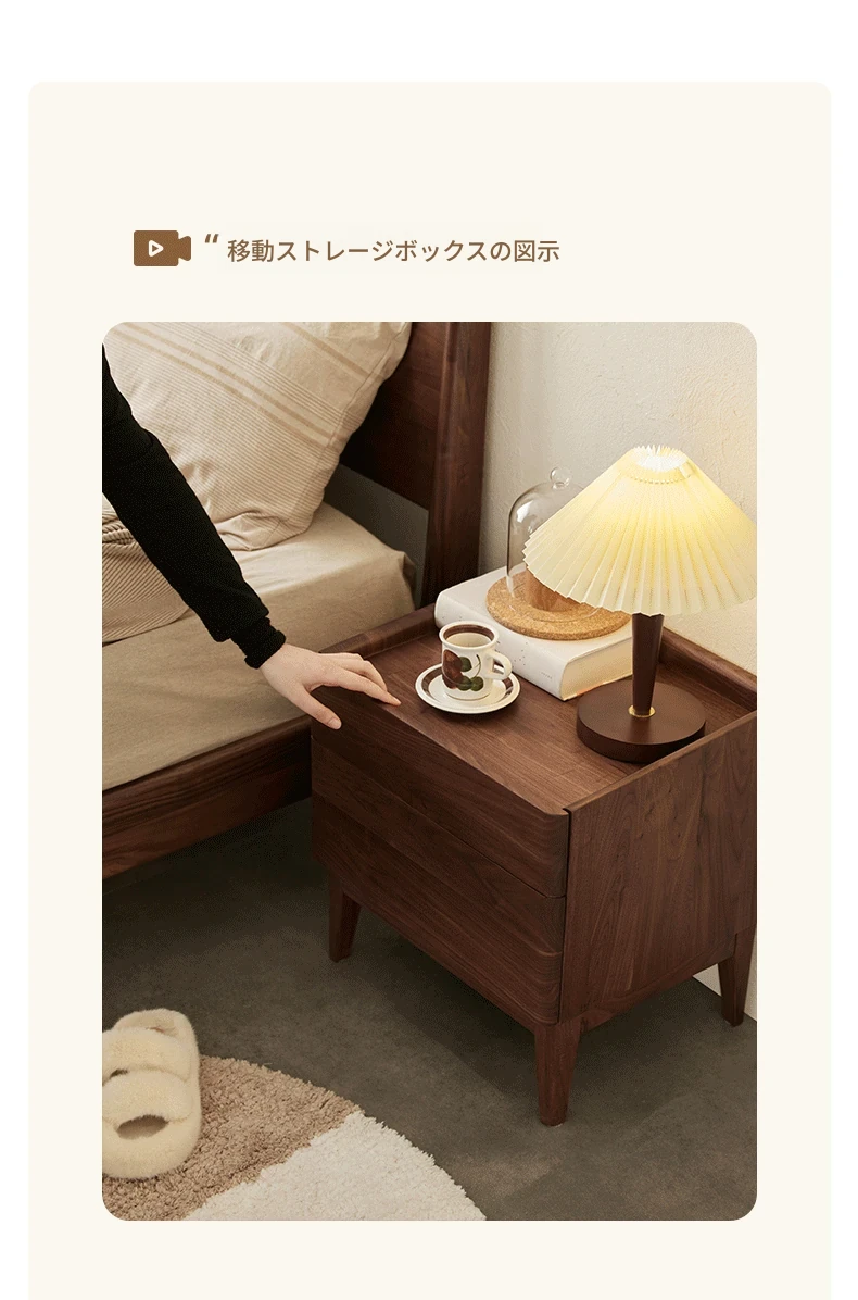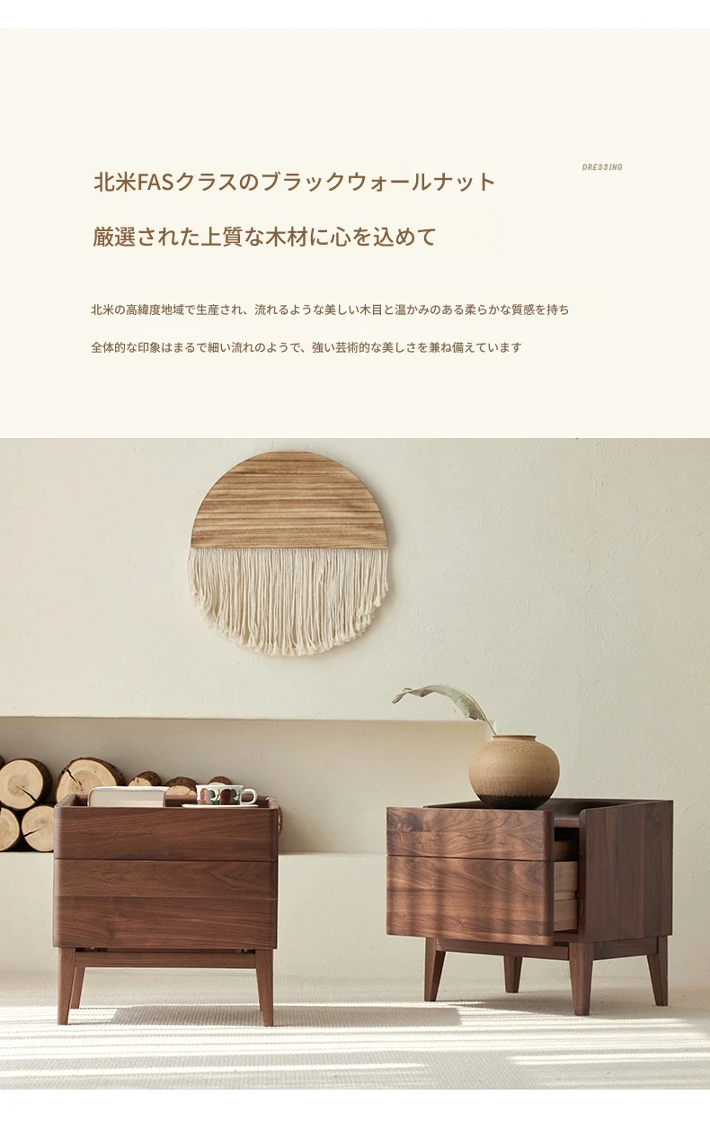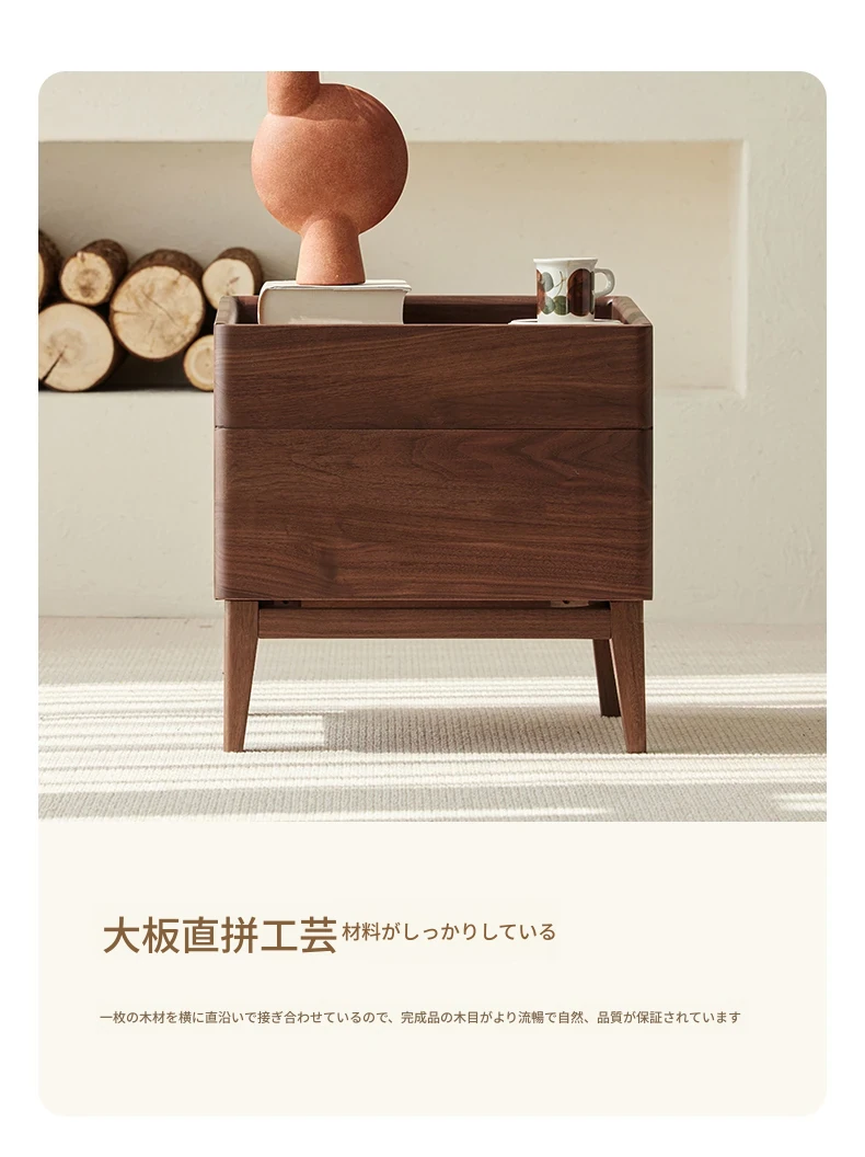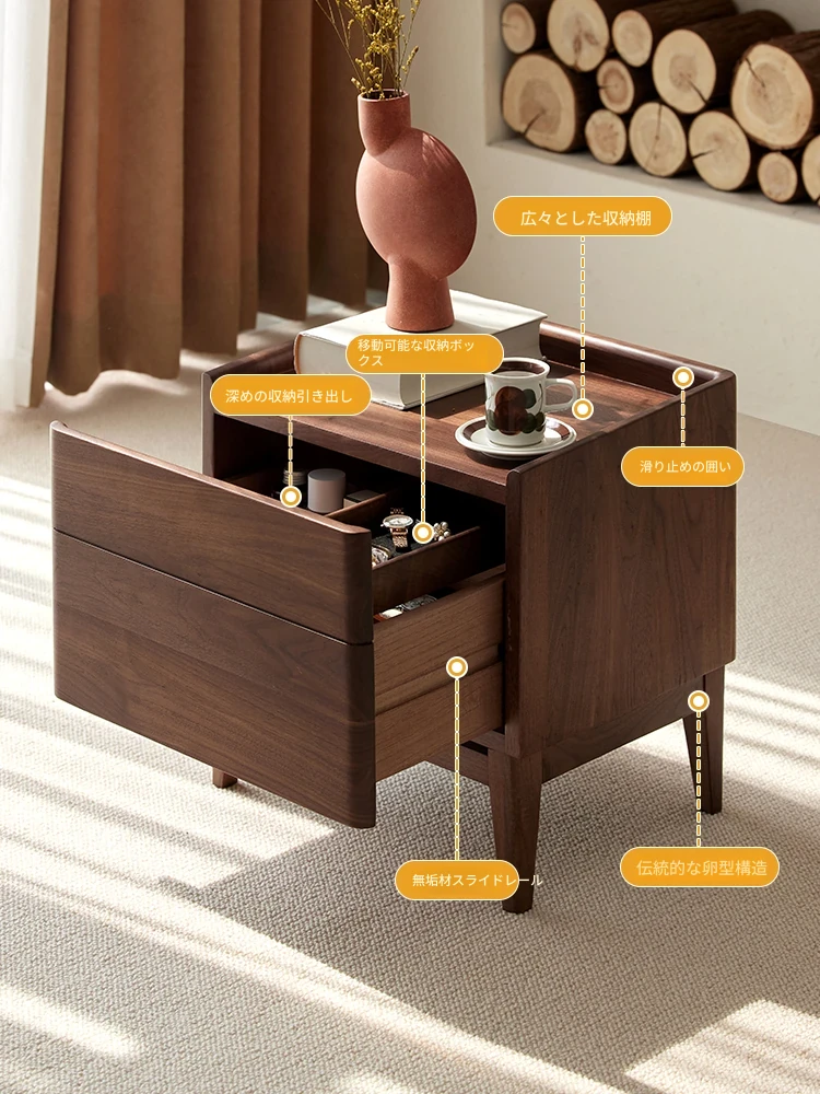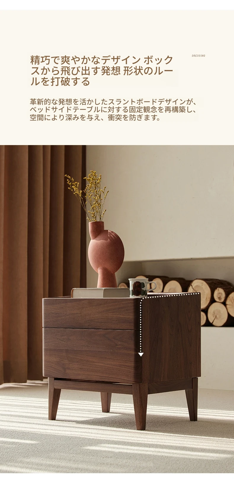 オリジナルエレメント 無垢材の北欧スタイルナイトテーブル - シンプルで洗練されたデザイン、居心地の良い寝室の必需品!北米産のブラックウッドを使用した高品質な収納キャビネット。あなたの生活空間に最適なアクセントを!