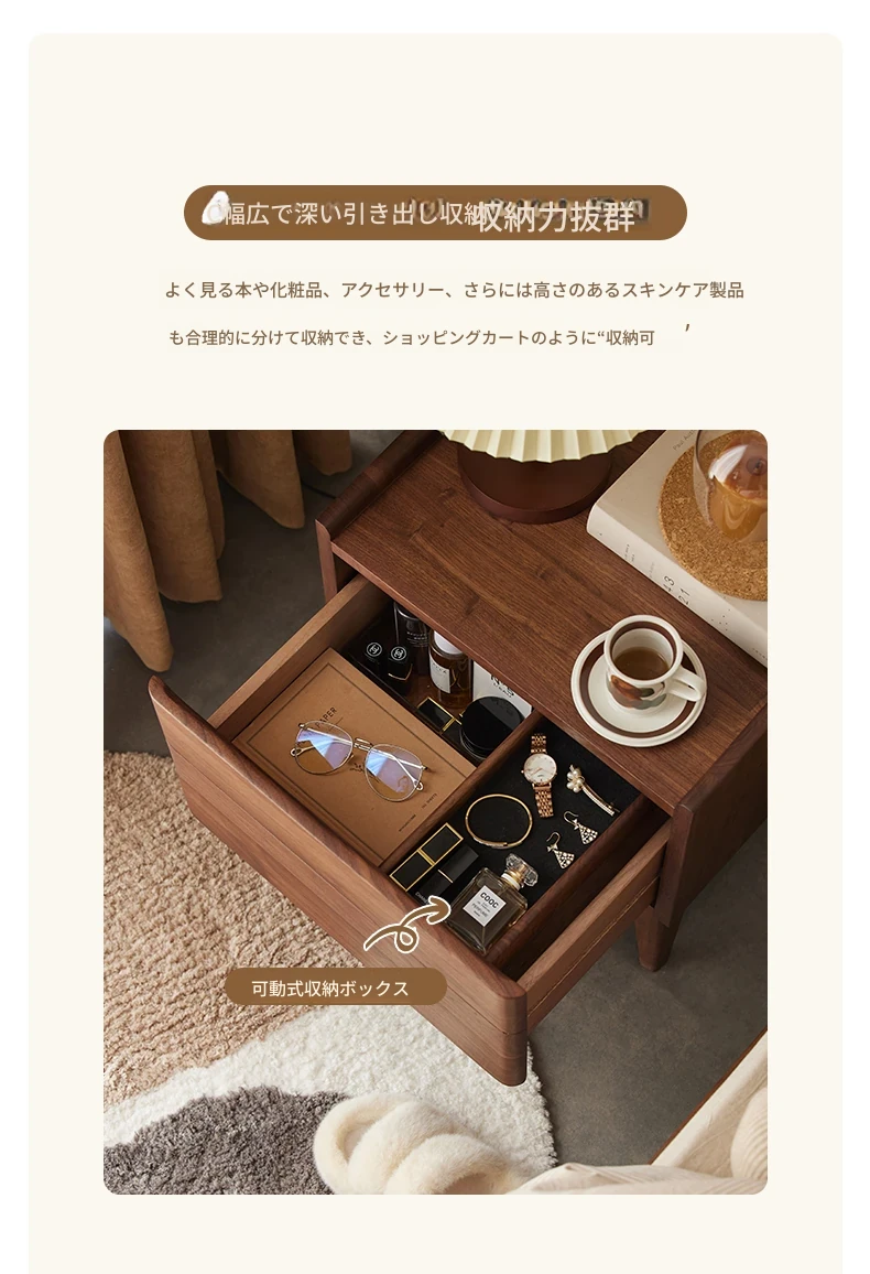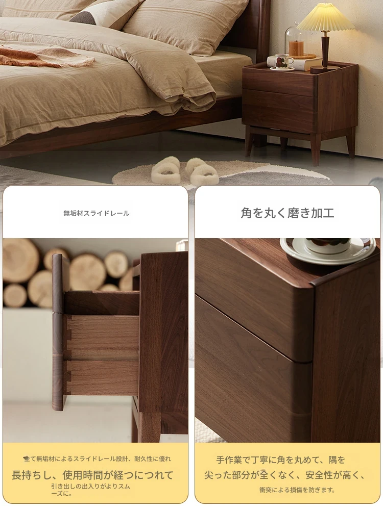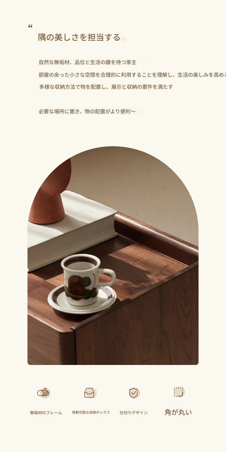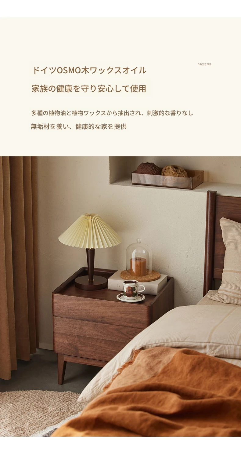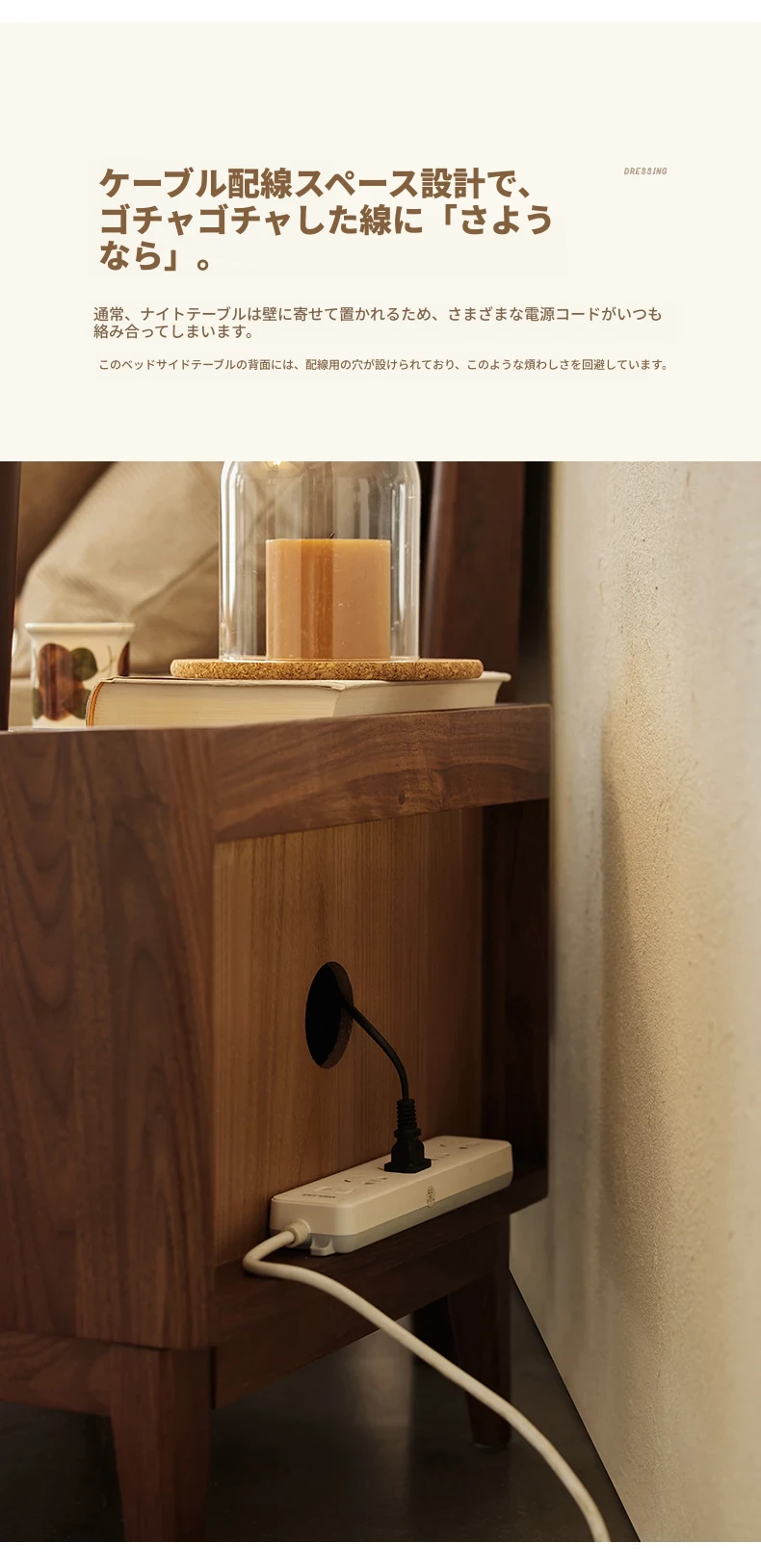 オリジナルエレメント 無垢材の北欧スタイルナイトテーブル - シンプルで洗練されたデザイン、居心地の良い寝室の必需品!北米産のブラックウッドを使用した高品質な収納キャビネット。あなたの生活空間に最適なアクセントを!