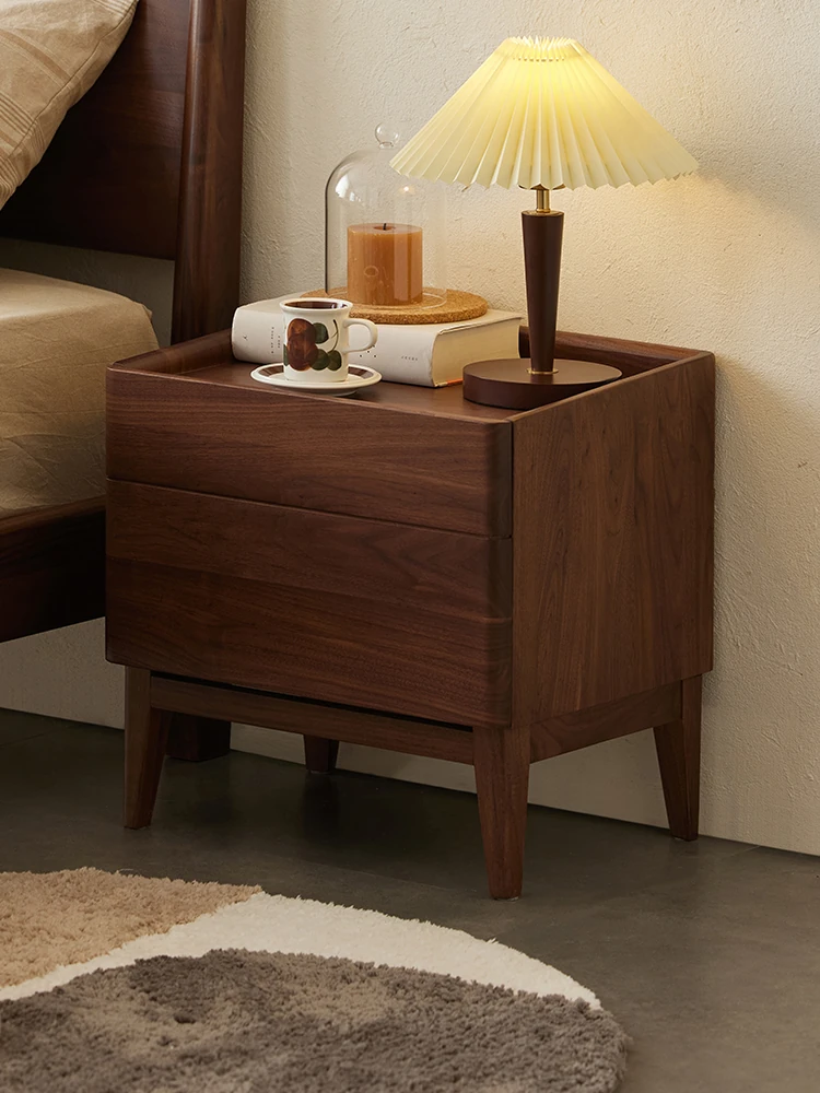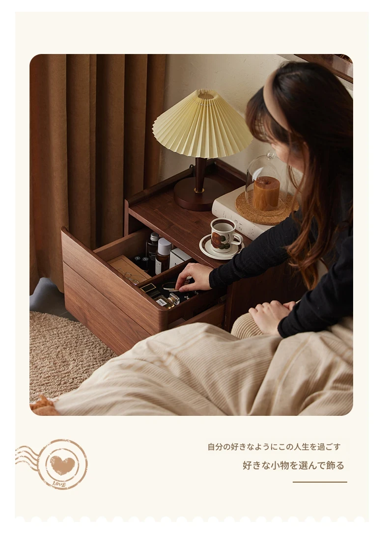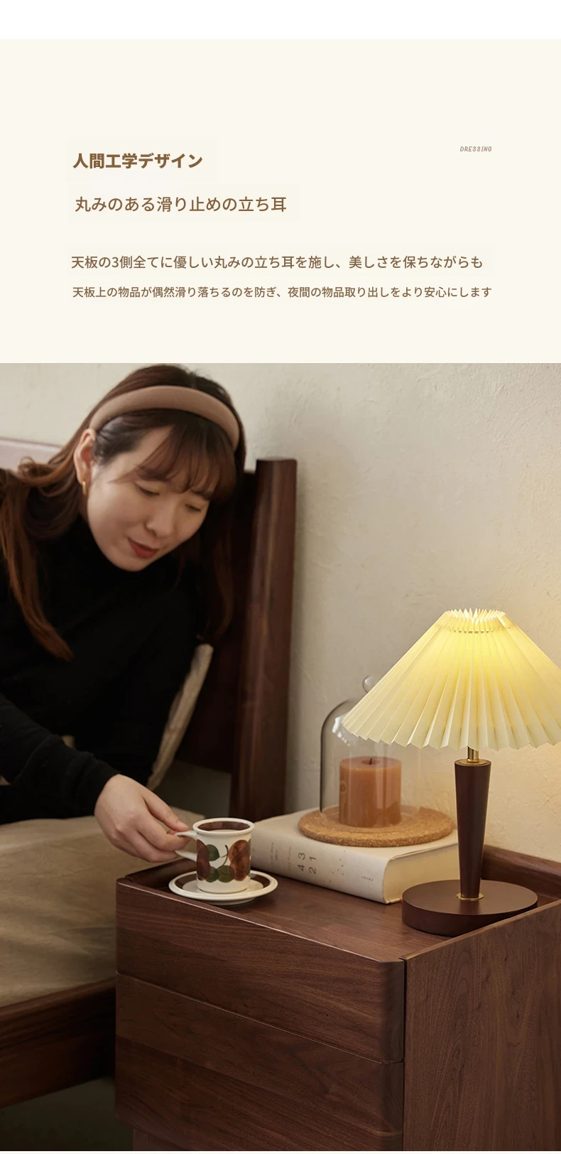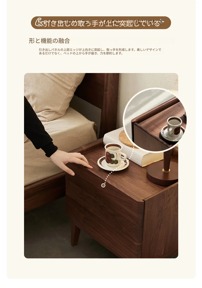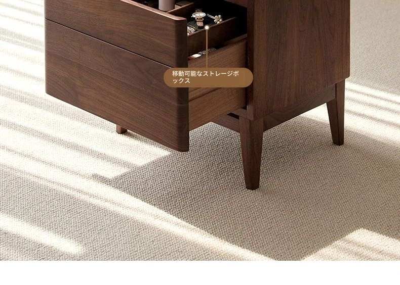 オリジナルエレメント 無垢材の北欧スタイルナイトテーブル - シンプルで洗練されたデザイン、居心地の良い寝室の必需品!北米産のブラックウッドを使用した高品質な収納キャビネット。あなたの生活空間に最適なアクセントを!
