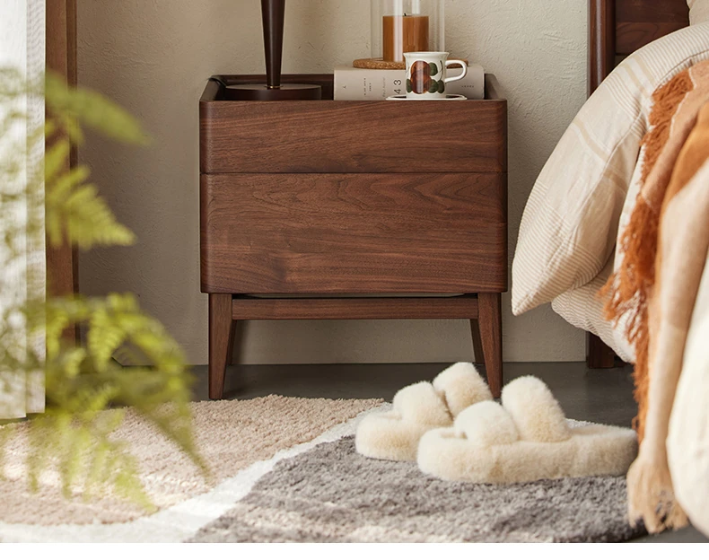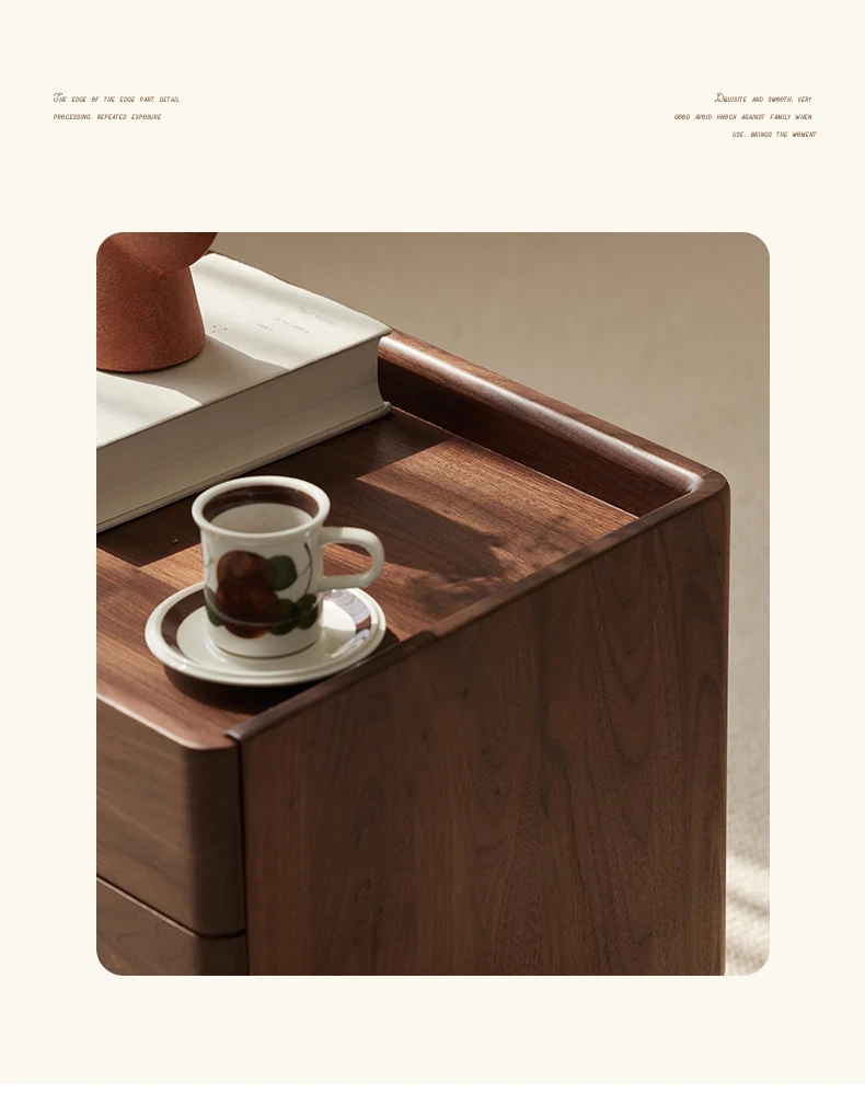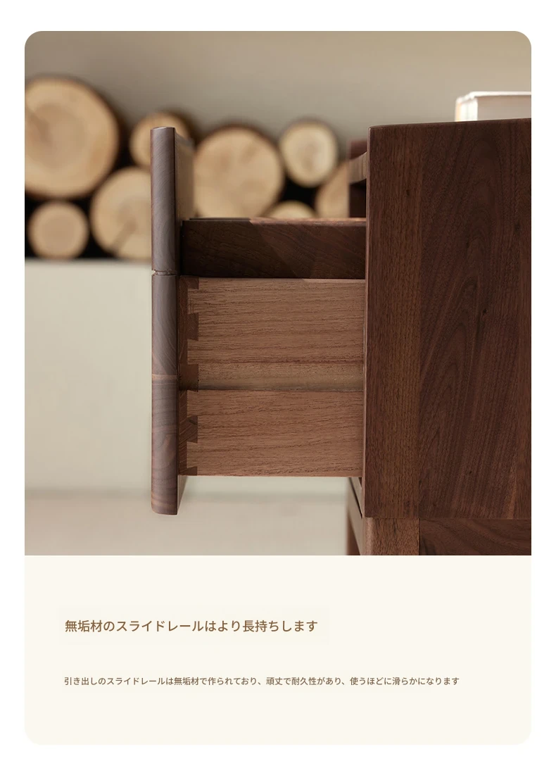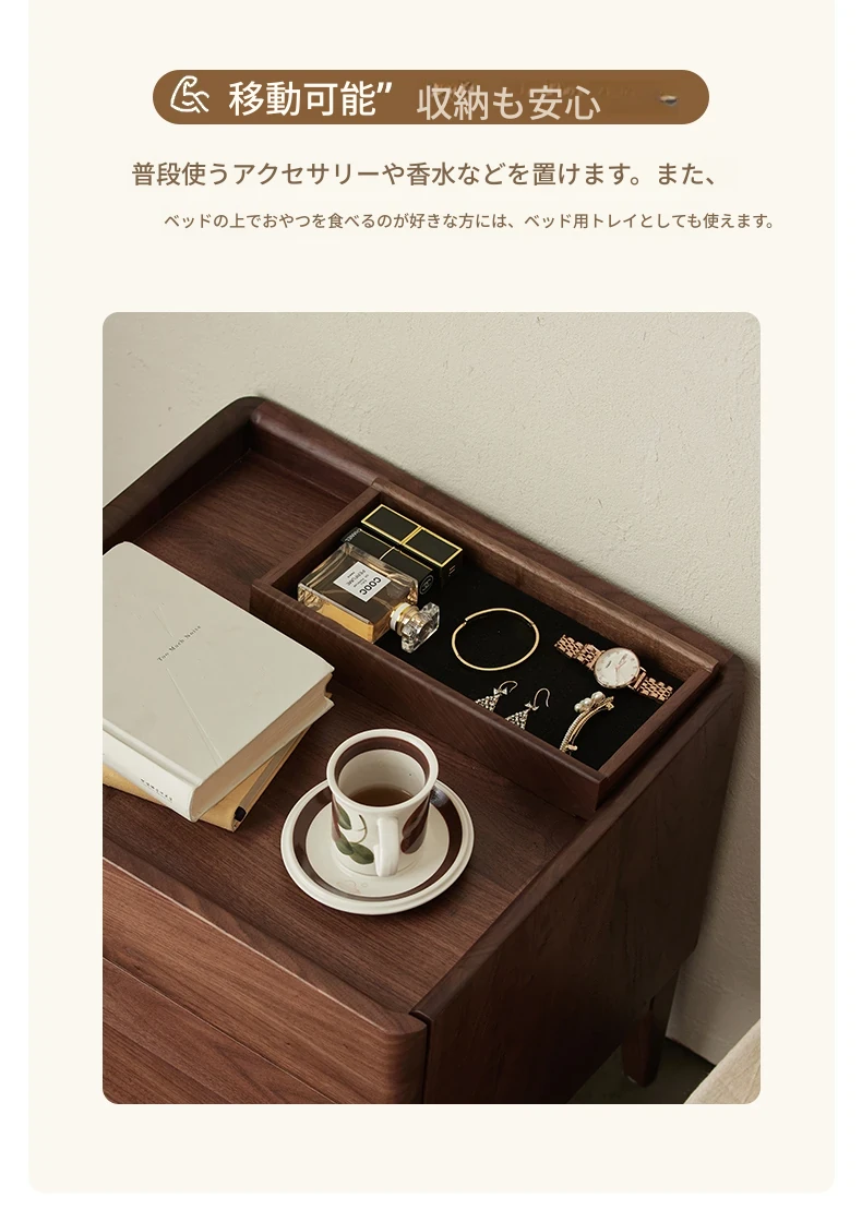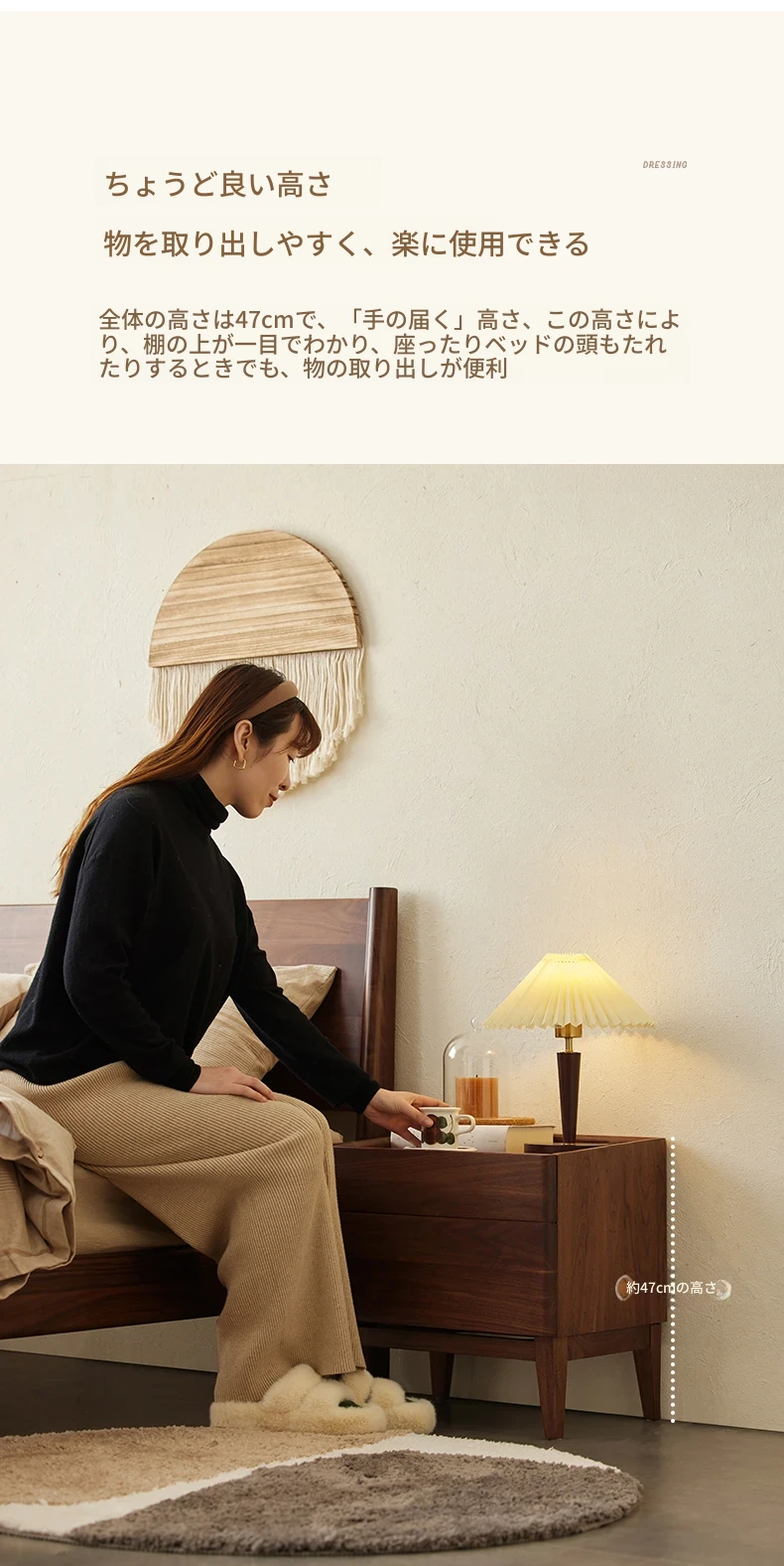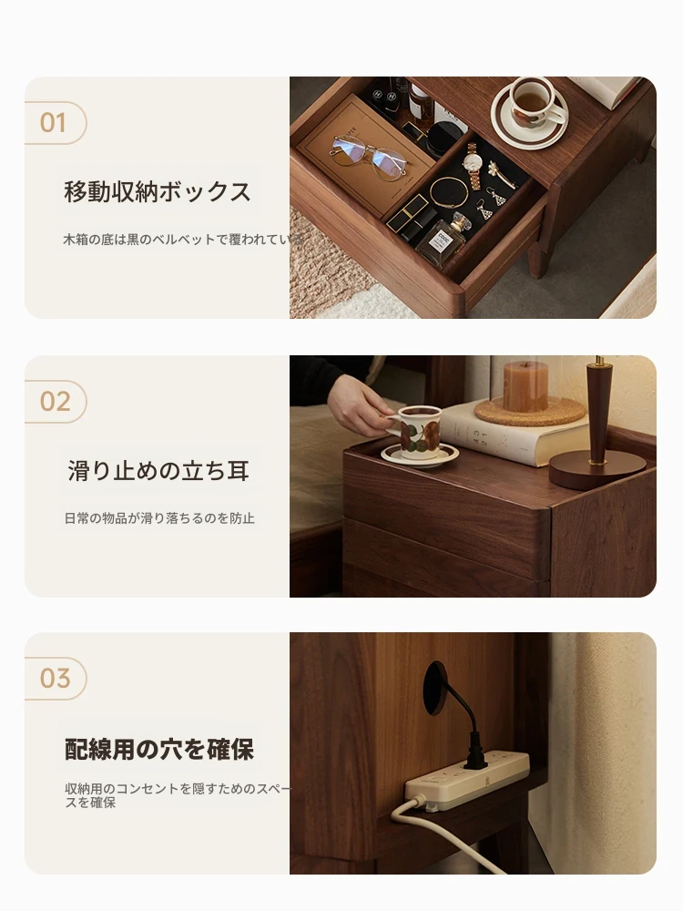 オリジナルエレメント 無垢材の北欧スタイルナイトテーブル - シンプルで洗練されたデザイン、居心地の良い寝室の必需品!北米産のブラックウッドを使用した高品質な収納キャビネット。あなたの生活空間に最適なアクセントを!