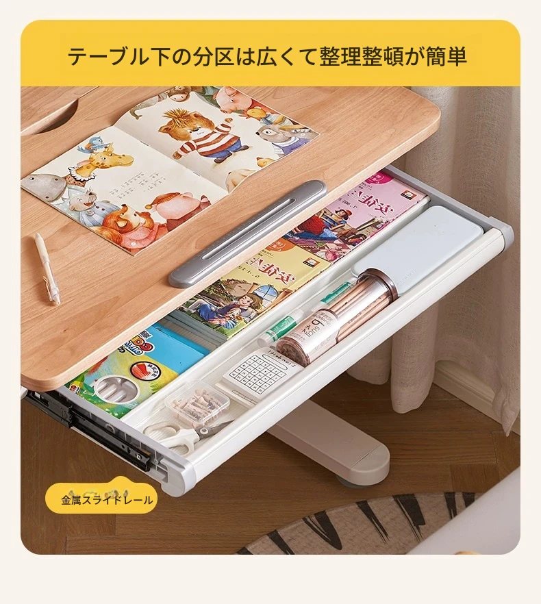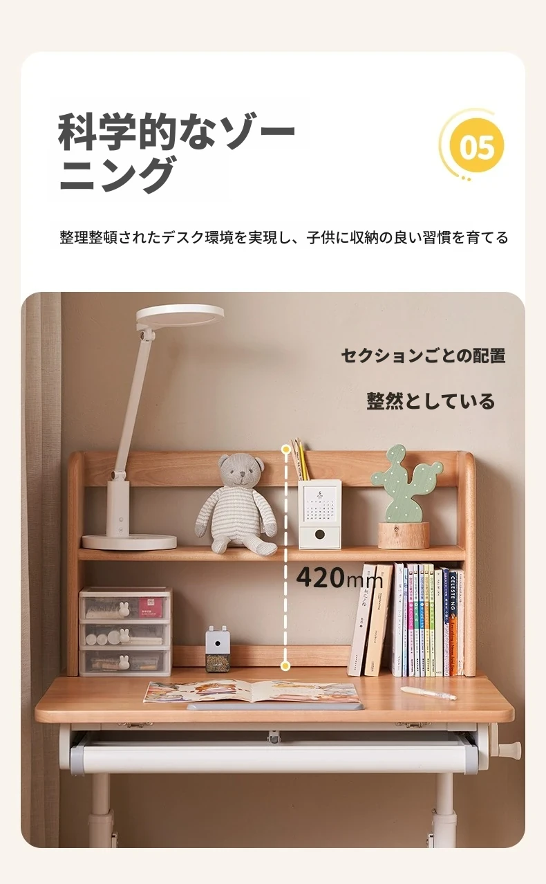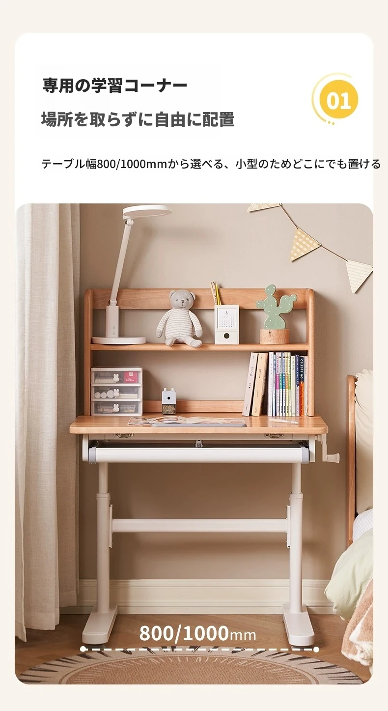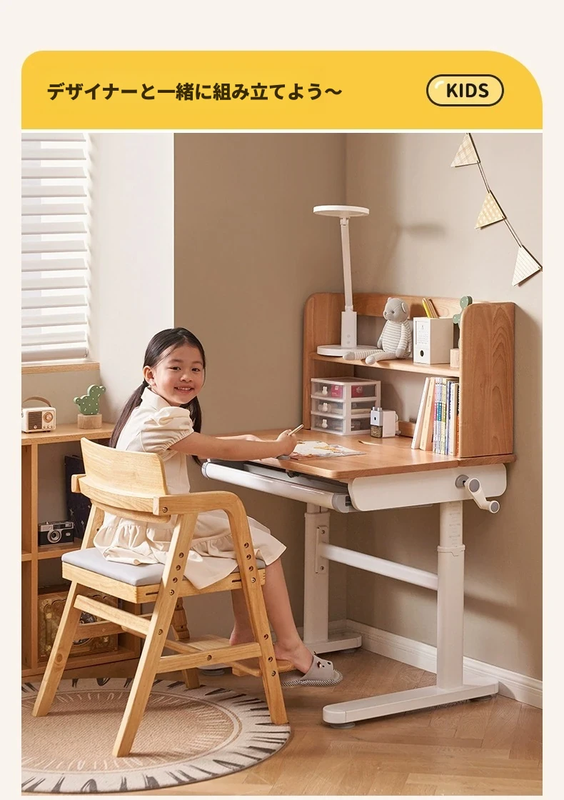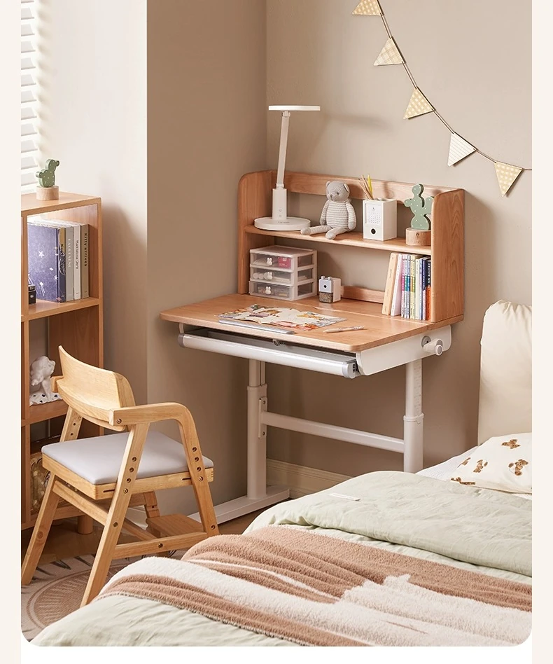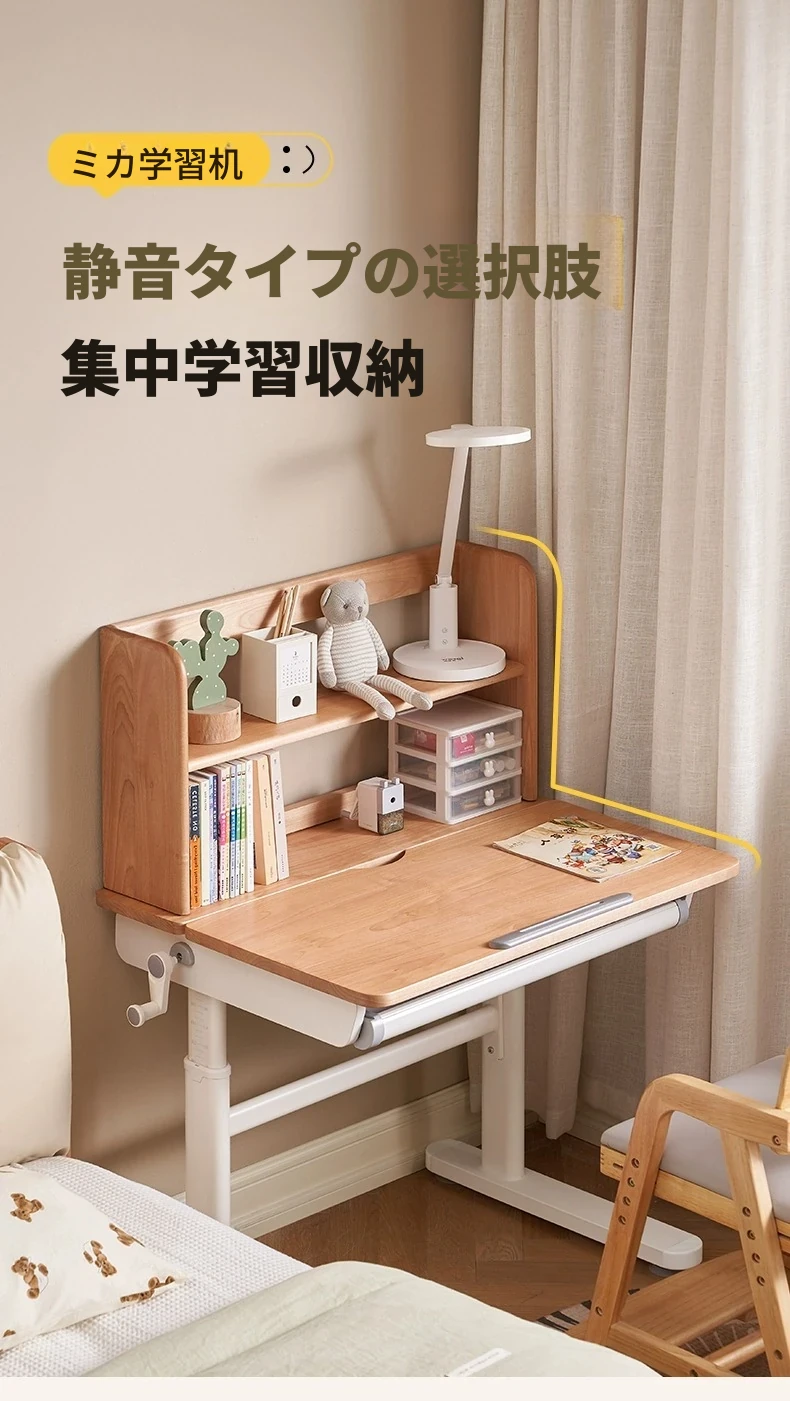 原始原素子供用学習机能デスク - モダンでシンプル、スペースを有効活用!小型のベッドサイドデスクに最適な収納付きのデザイン。お子様の学びをサポートするスタイリッシュなデスク。