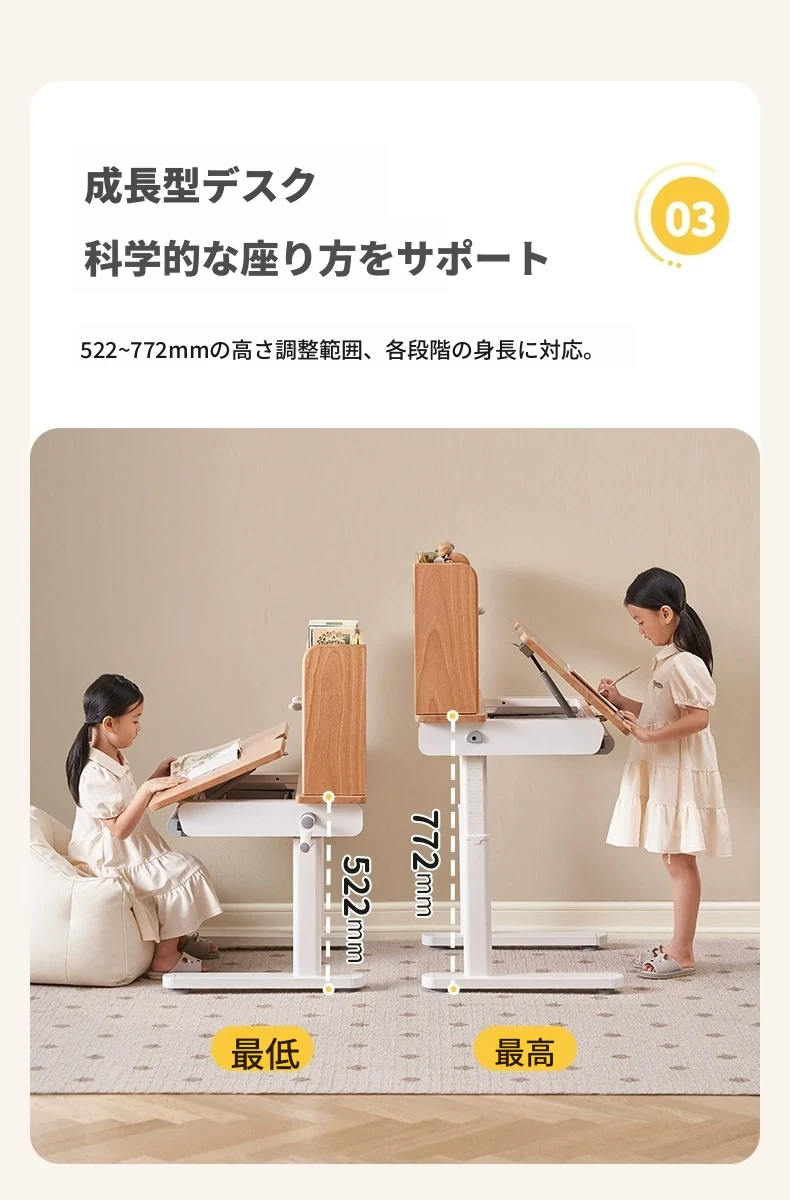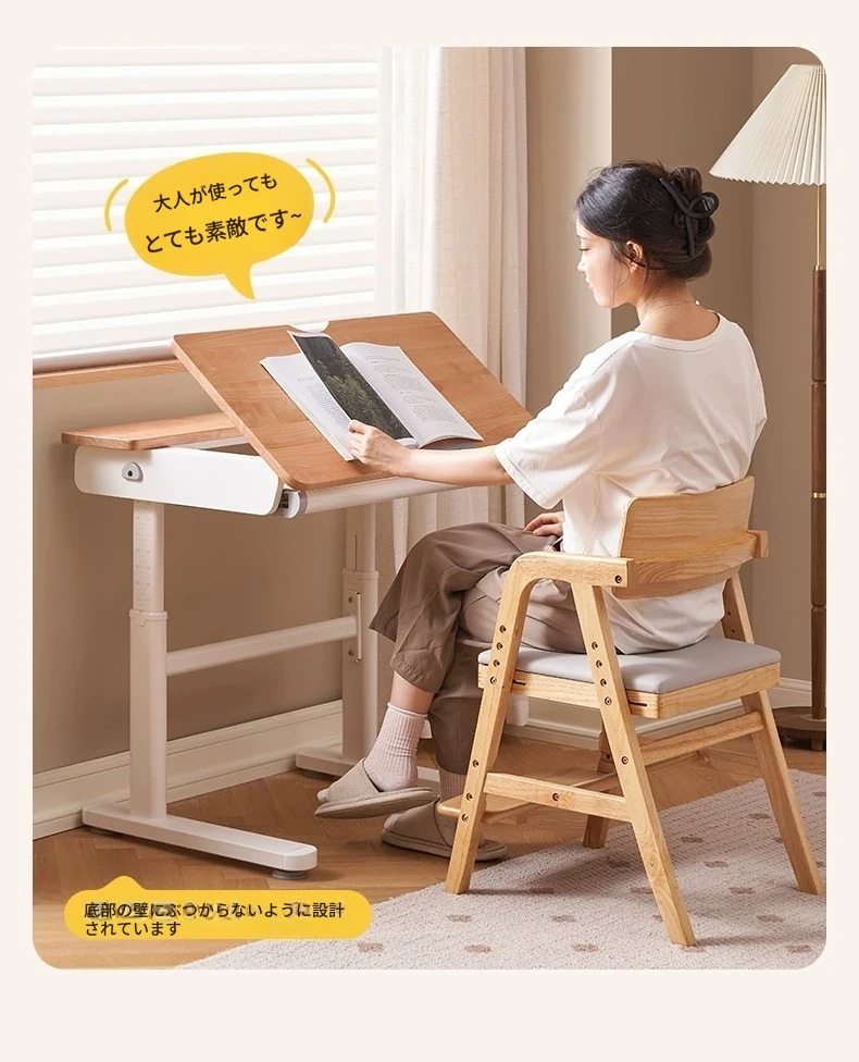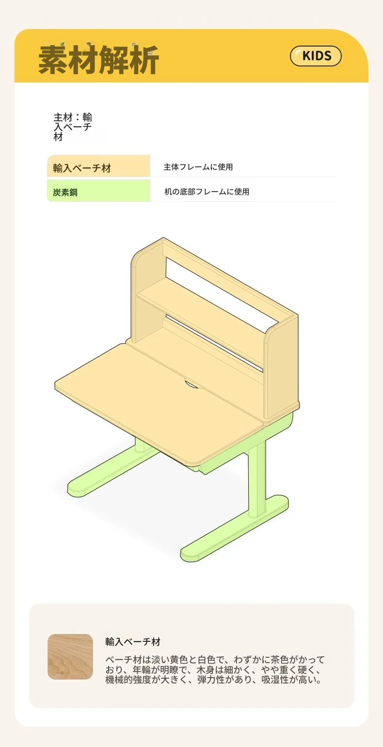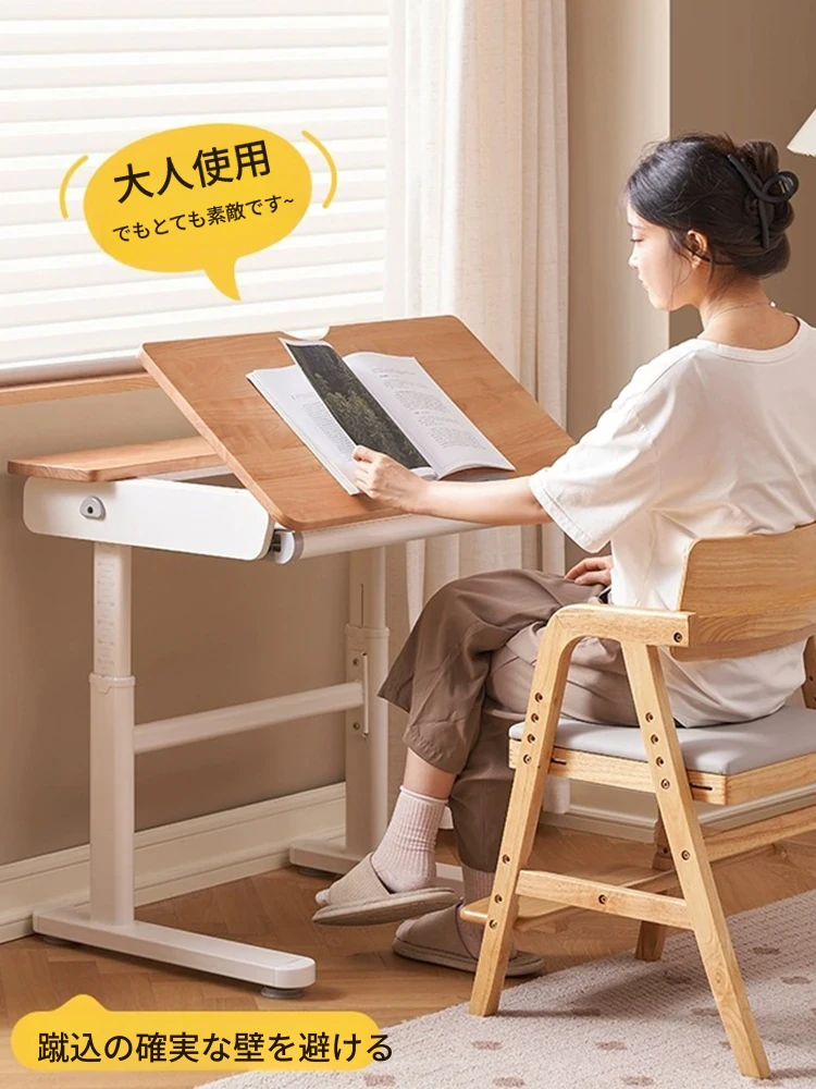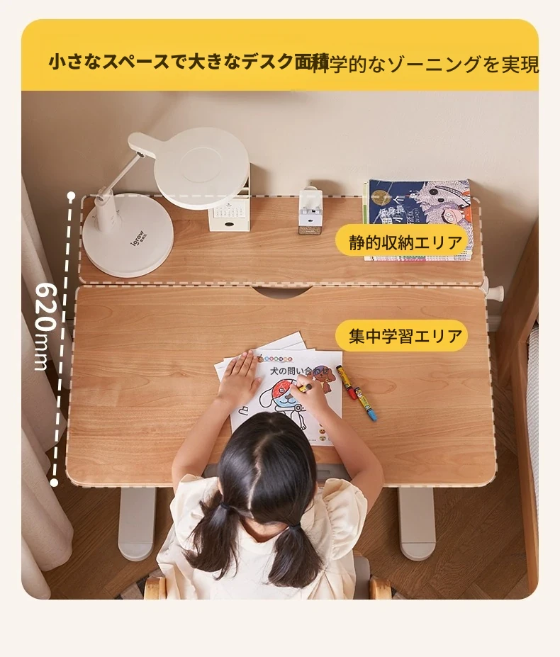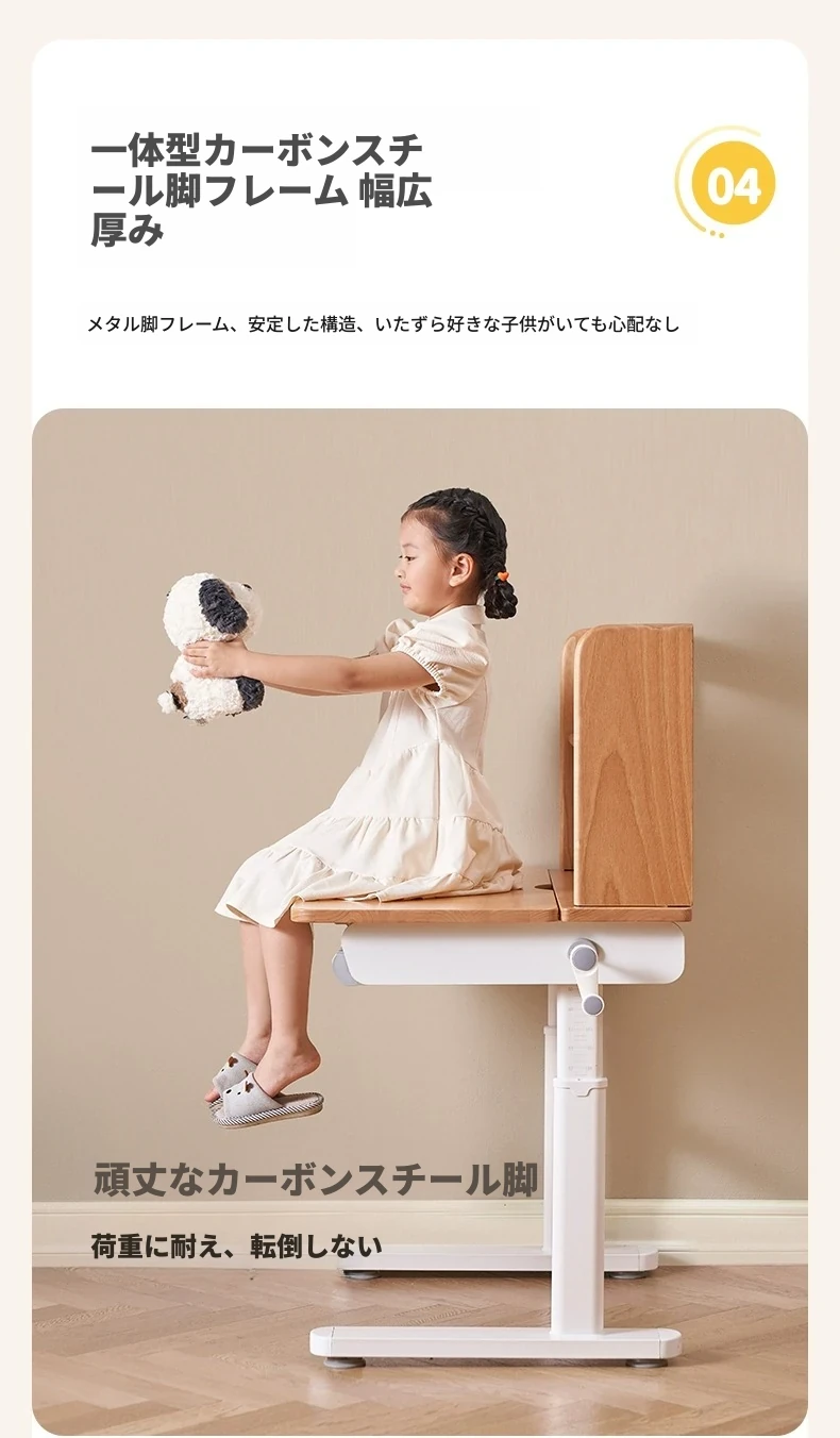 原始原素子供用学習机能デスク - モダンでシンプル、スペースを有効活用!小型のベッドサイドデスクに最適な収納付きのデザイン。お子様の学びをサポートするスタイリッシュなデスク。