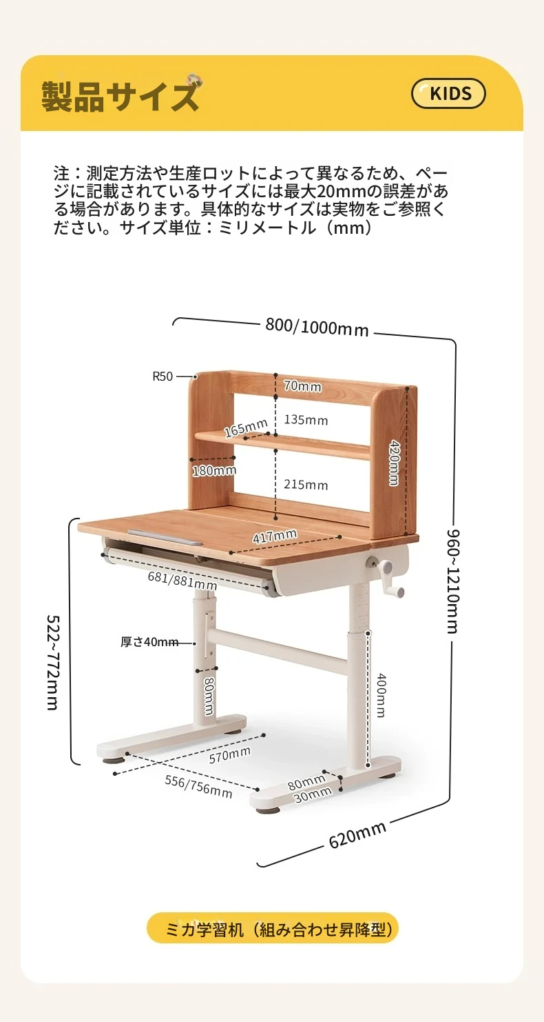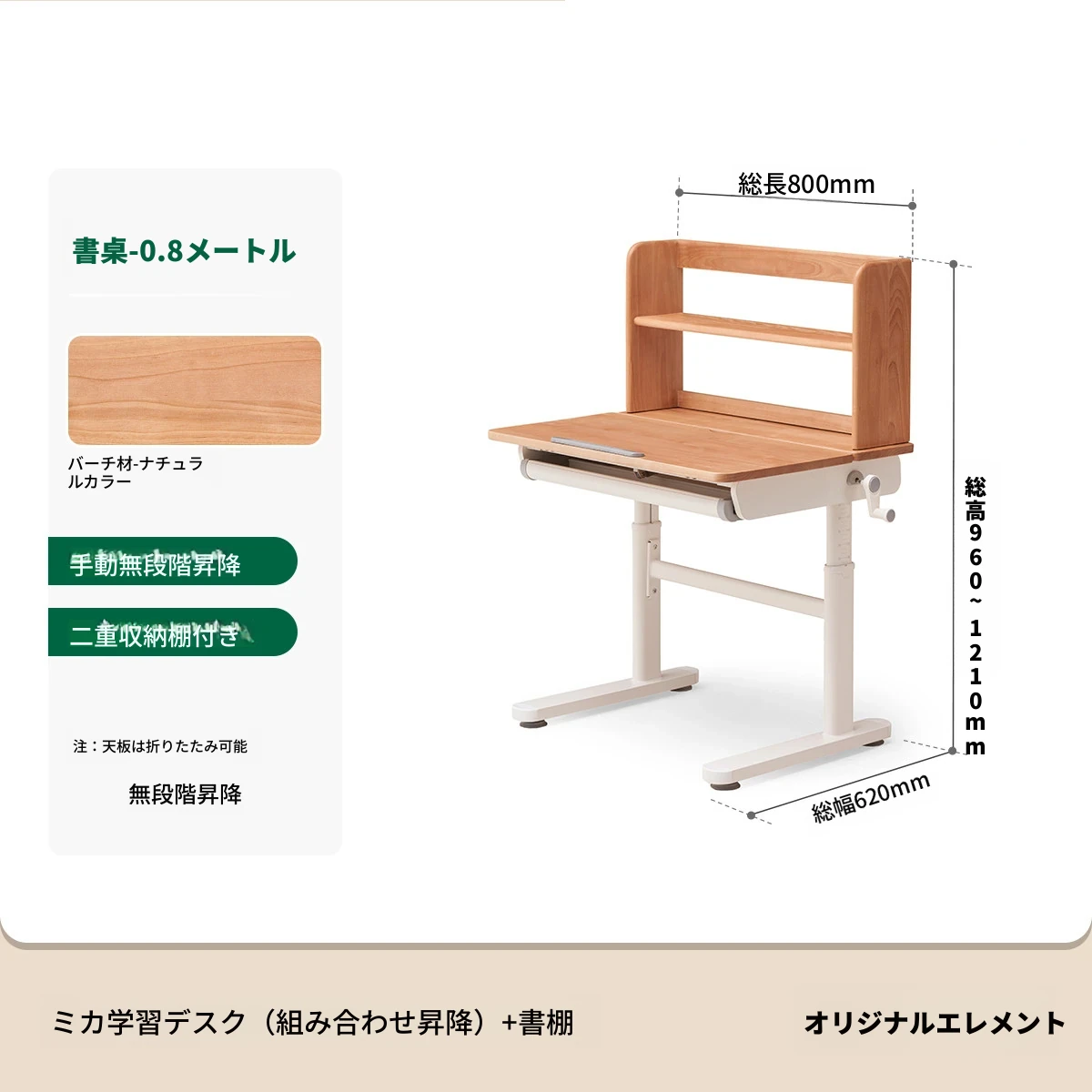 【バーチ-ナチュラルカラー】ミカ学習デスク(コンビネーション昇降)-0.8